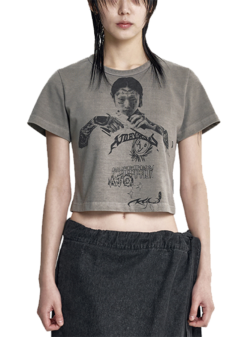 Pseudo Knight Cropped T-Shirt [DUSTY BEIGE]
