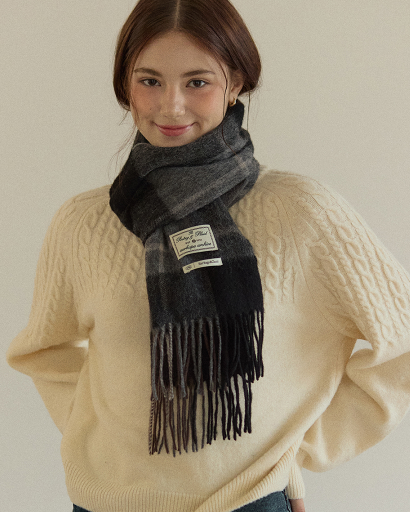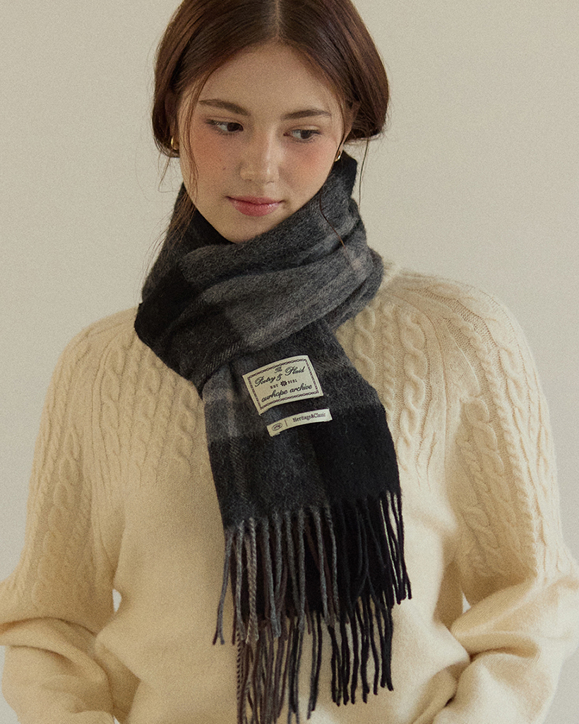 Ordinary Check Wool Muffler - Black Grey Check