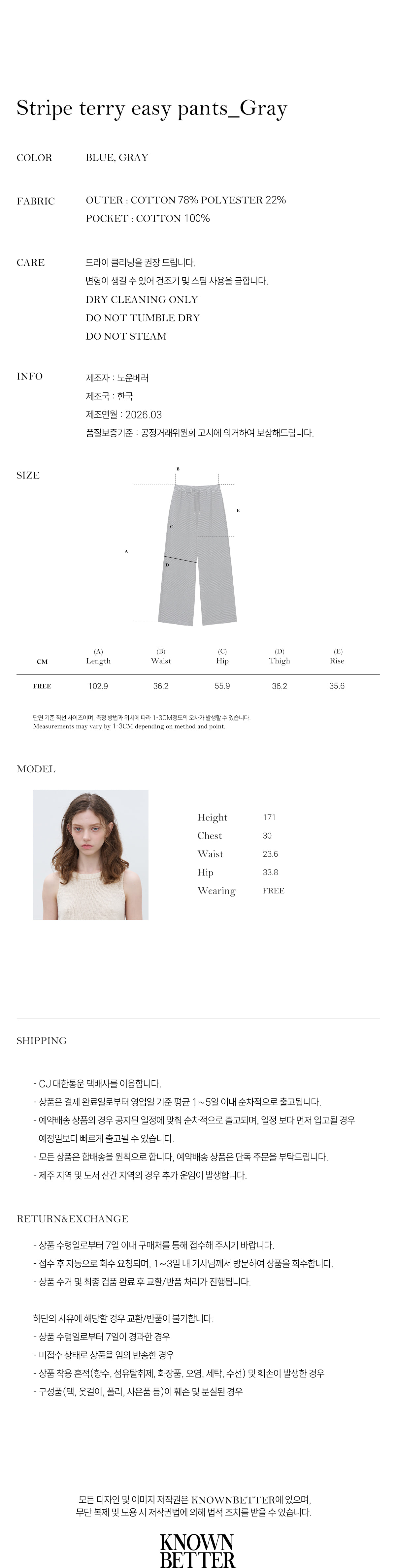 Stripe terry easy pants [KNSS07PT04]_Gray