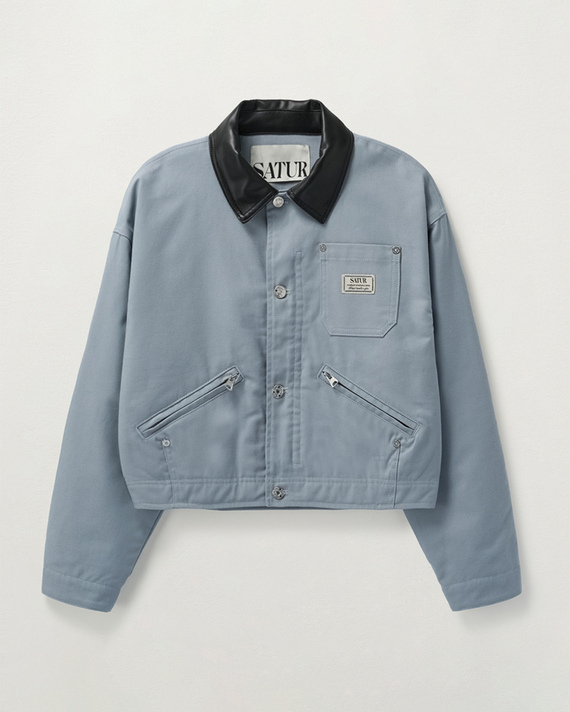 (W) Crop Cotton Work Jacket - Sky Blue