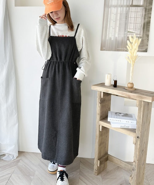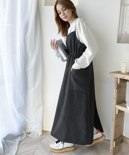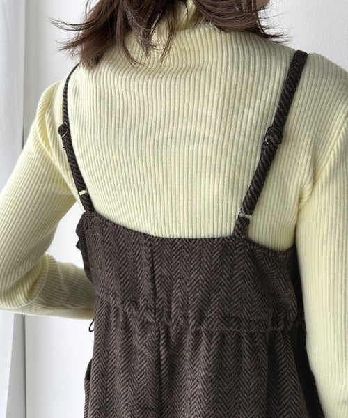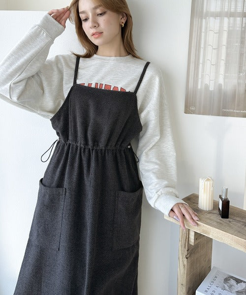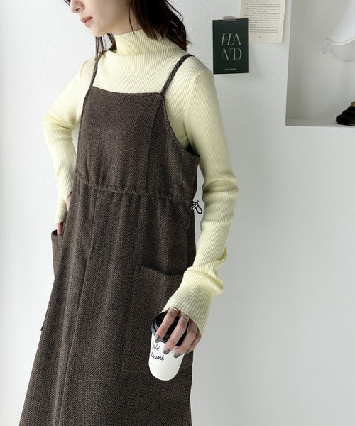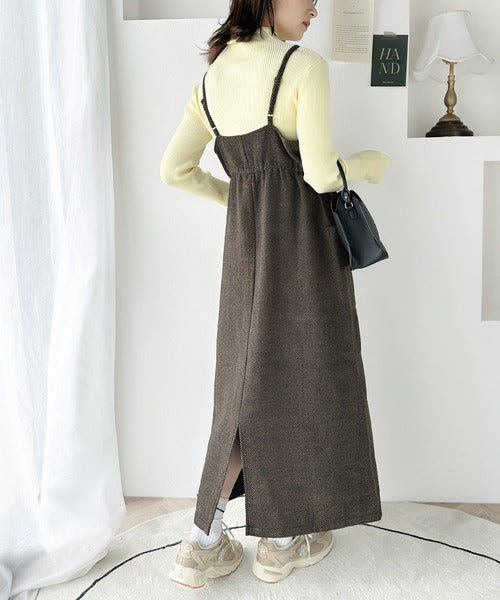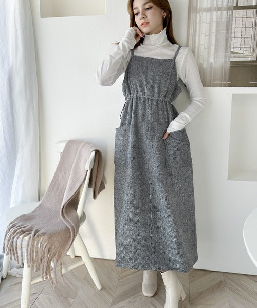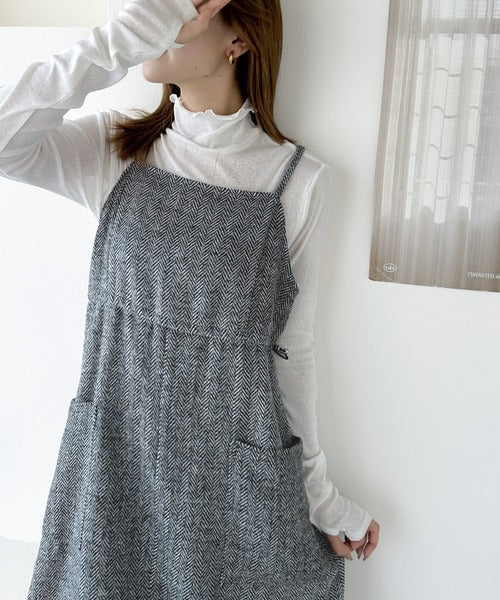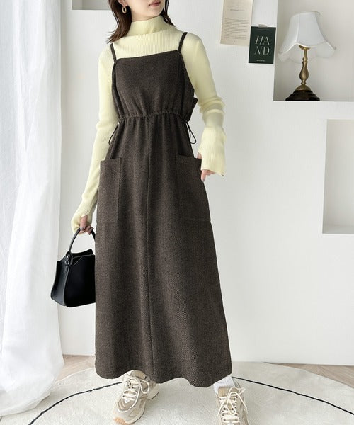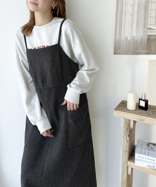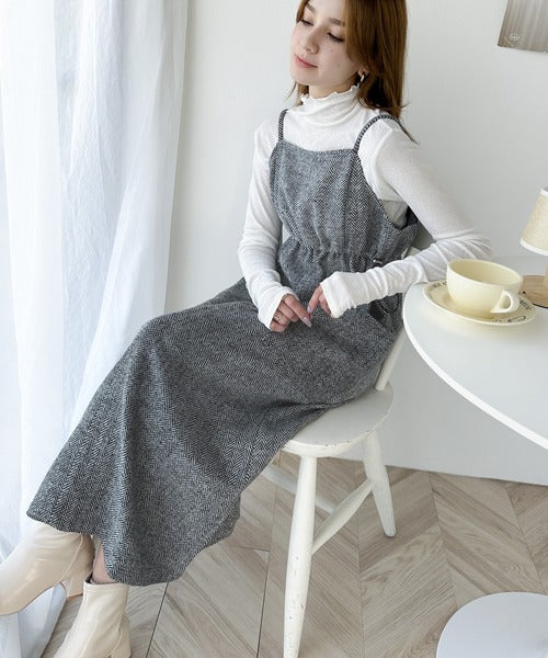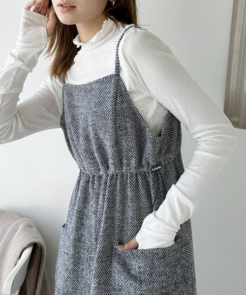 一枚でこなれ感のあるスタイル。ヘリンボーンキャミワンピース ce1010243