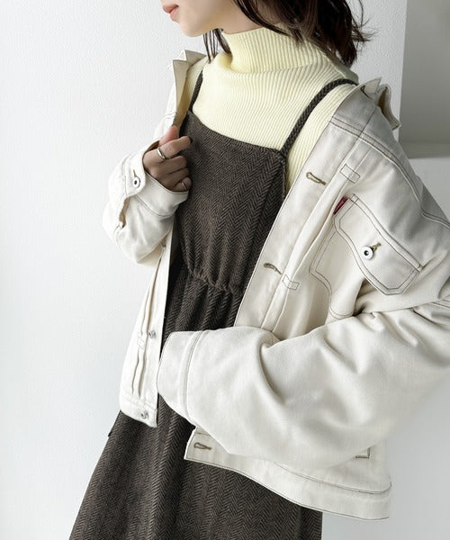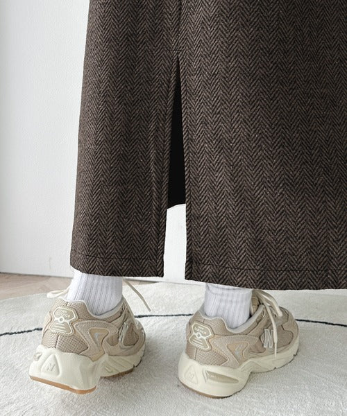 ヘリンボーン柄が入っているので無地のアウターとも相性抜群◎