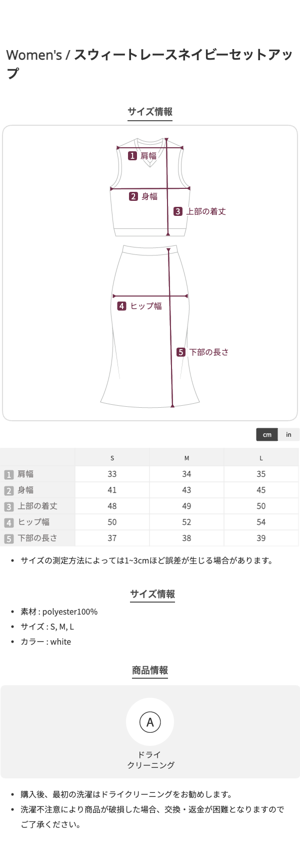 スウィートレースネイビーセットアップ