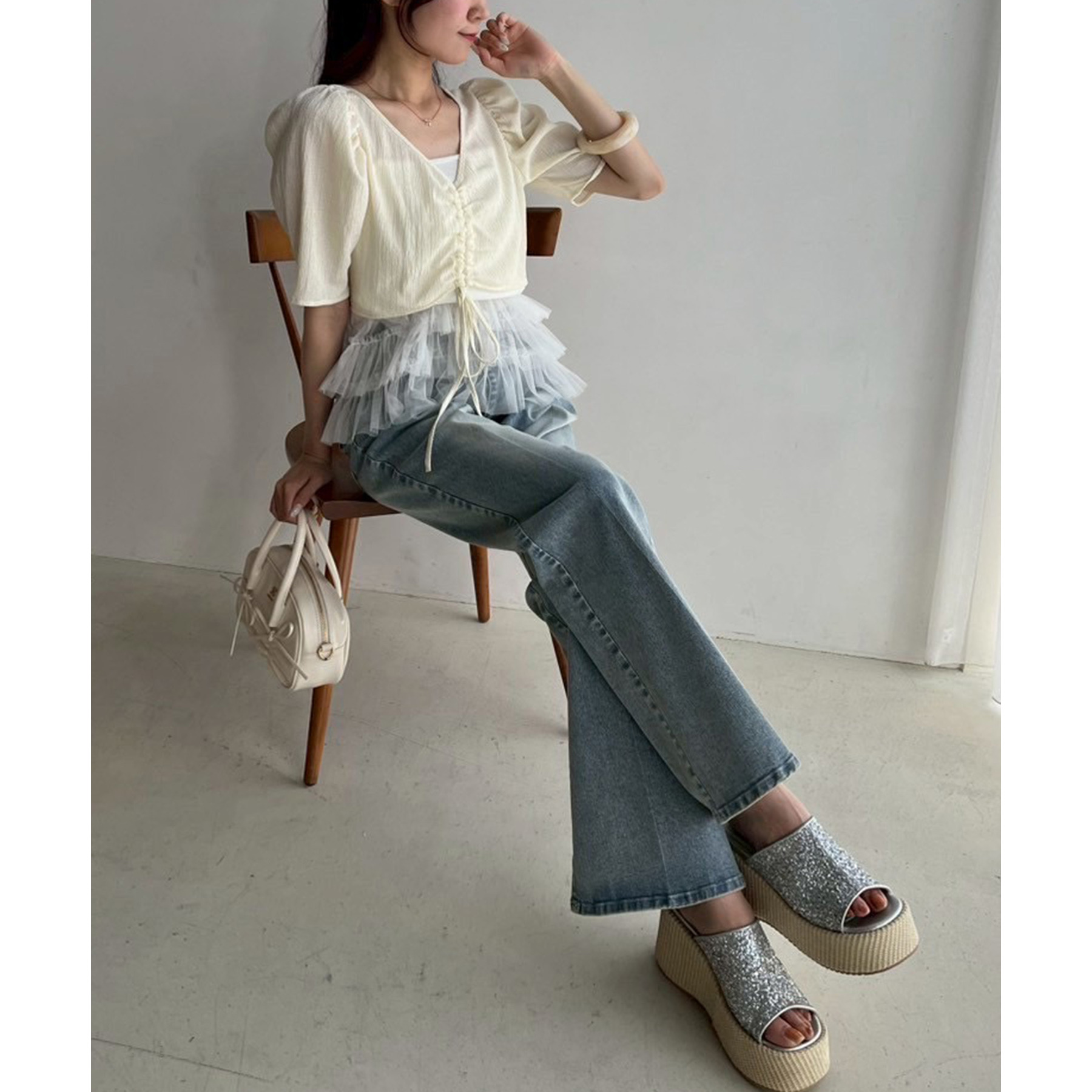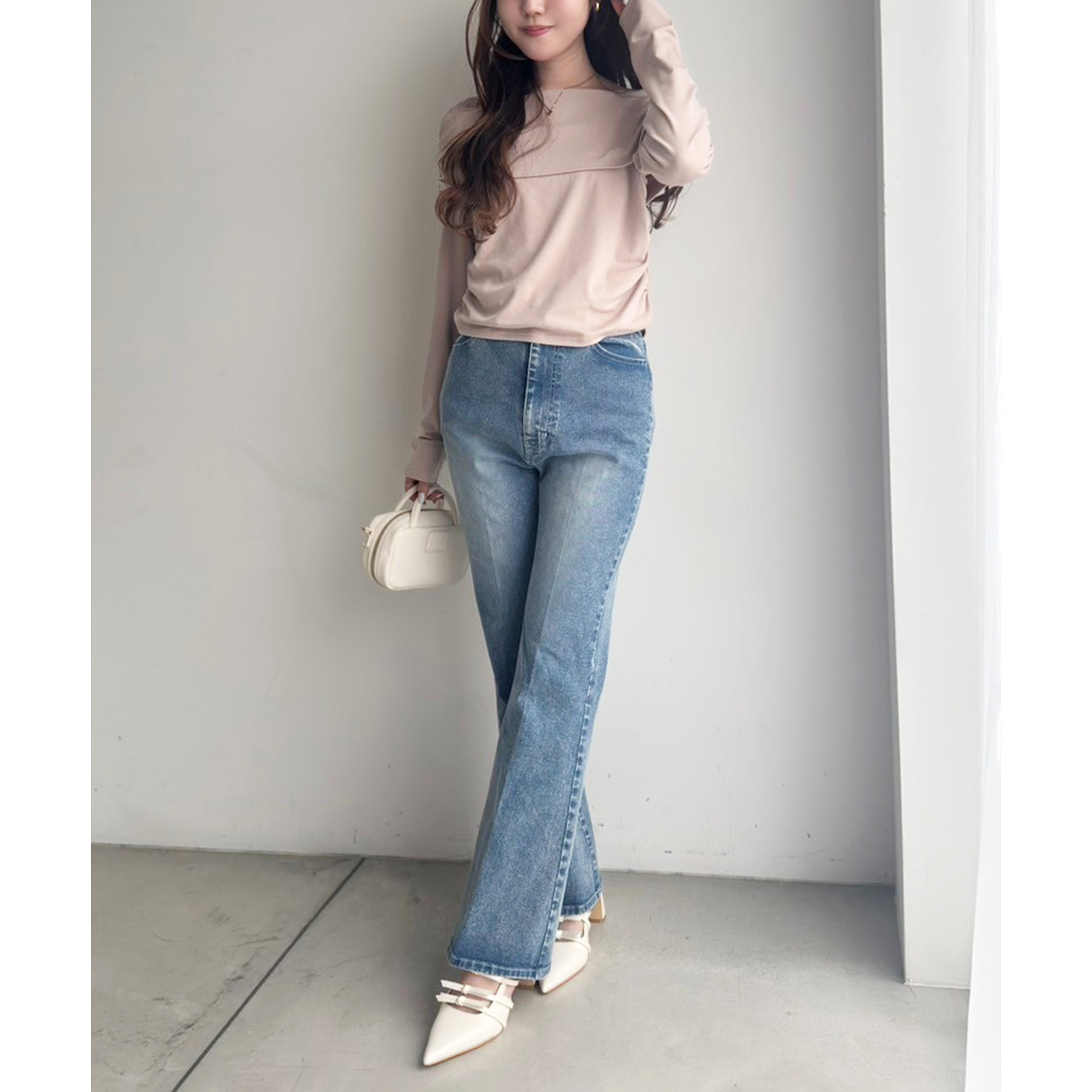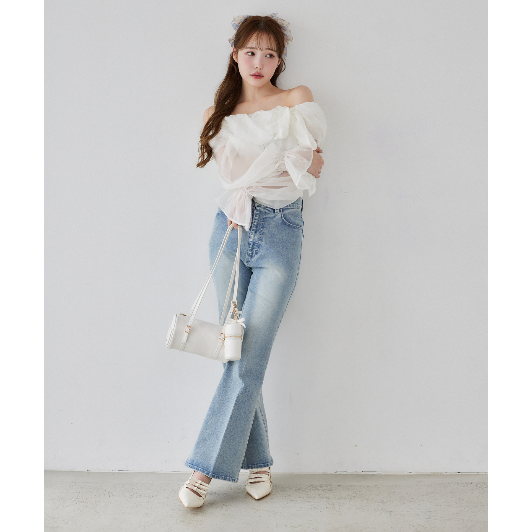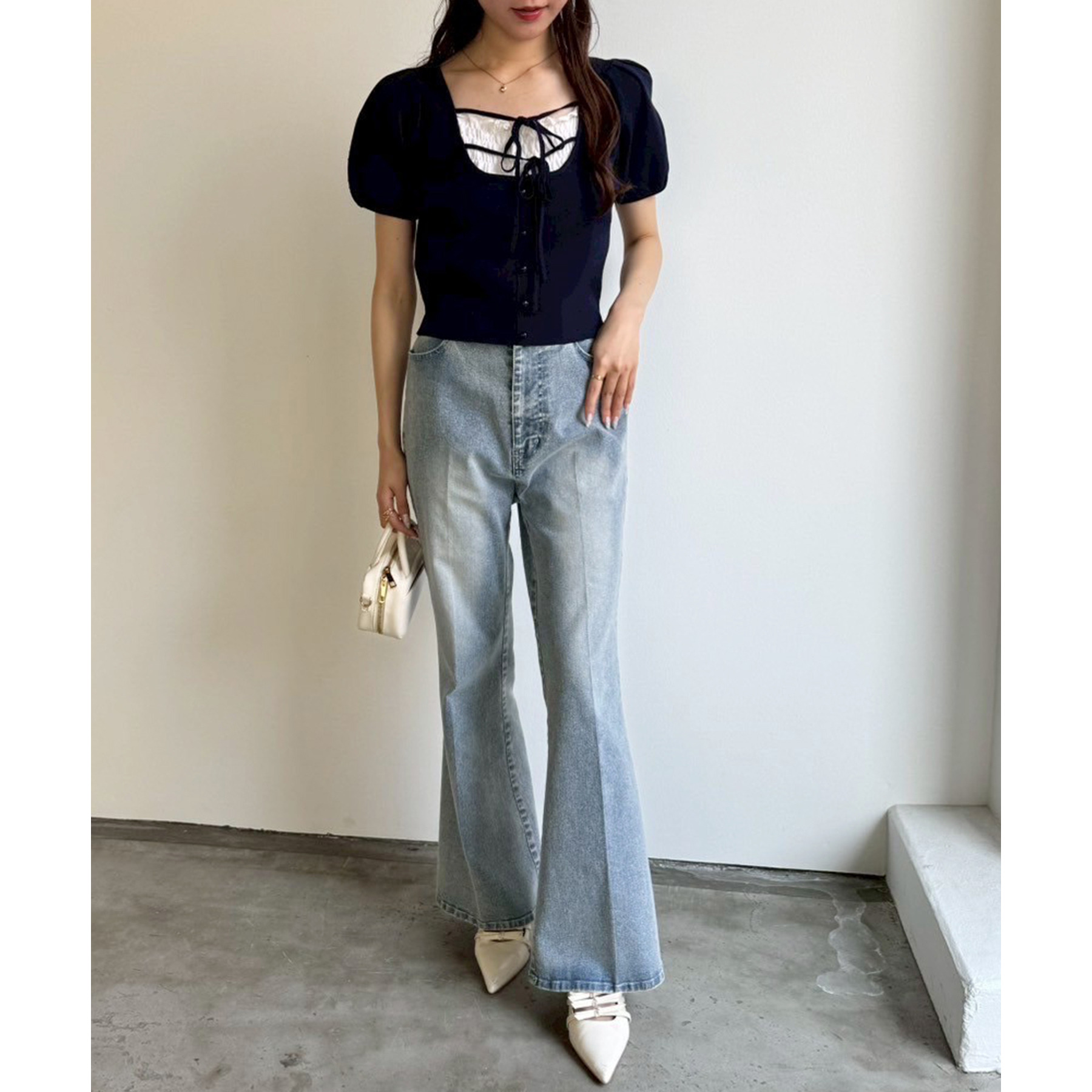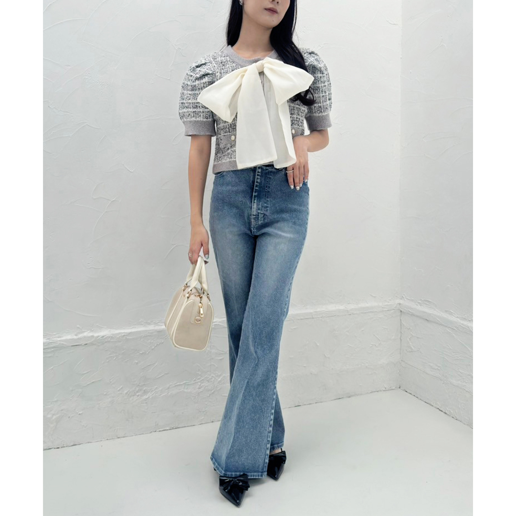 甘さの中にカジュアルなデニムを入れることによってフレンチカジュアルなコーデになります。
