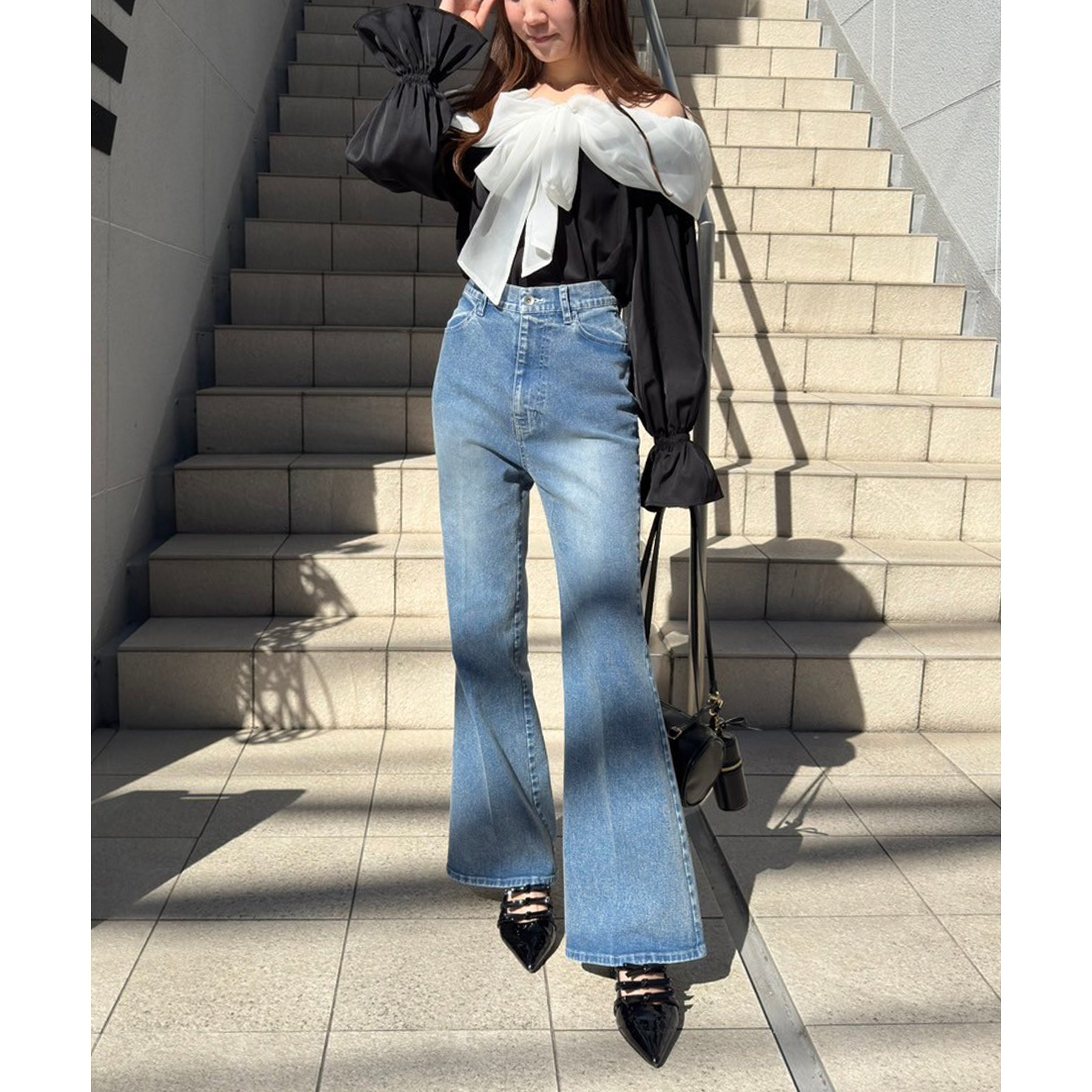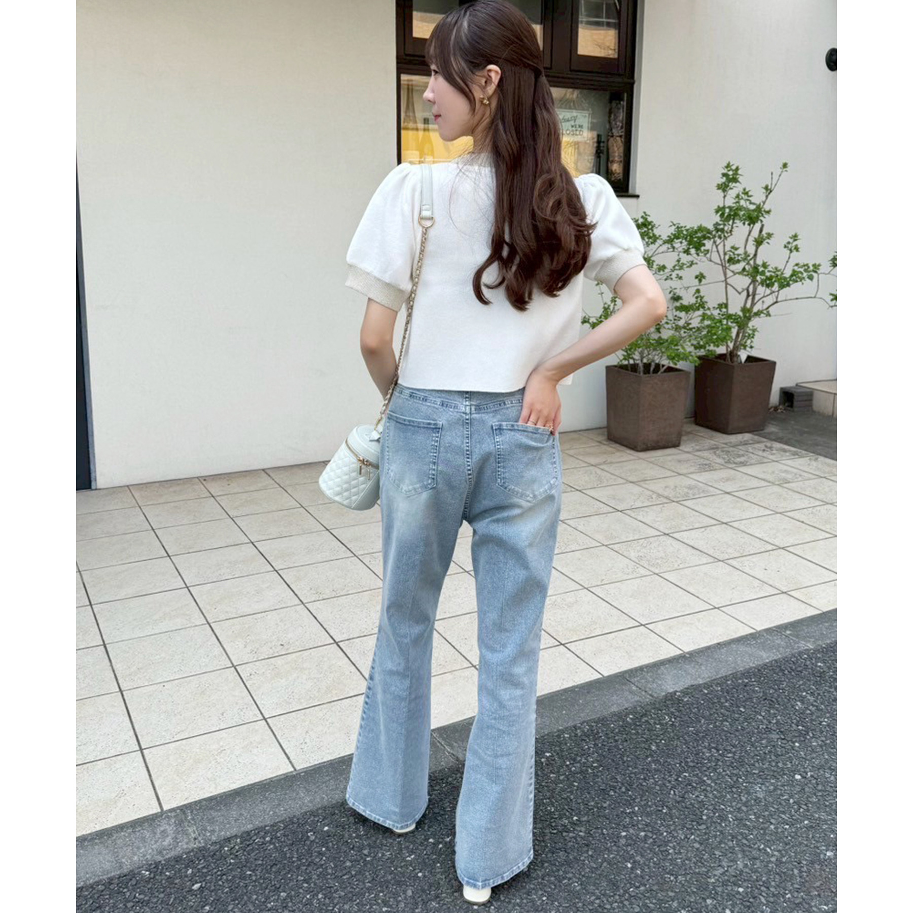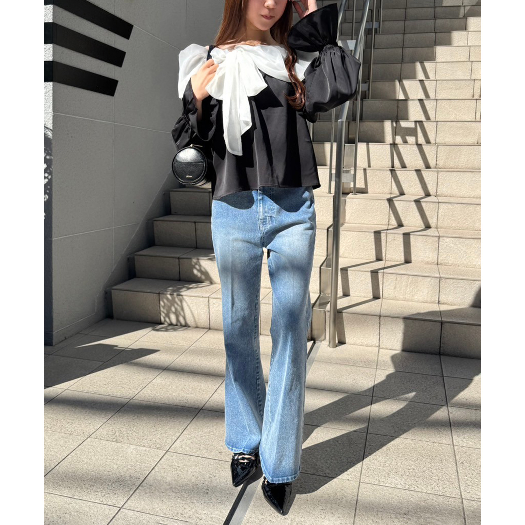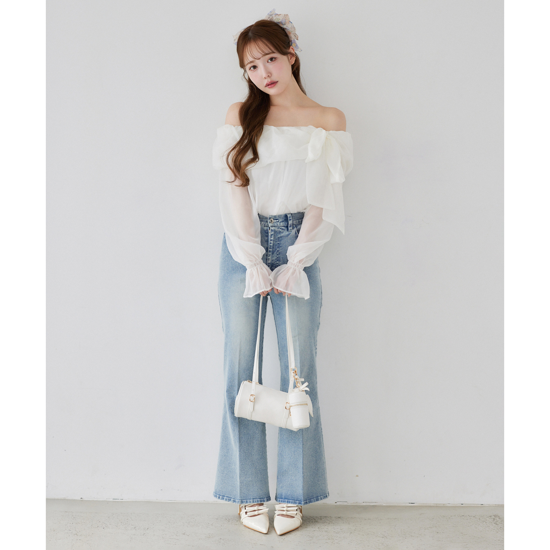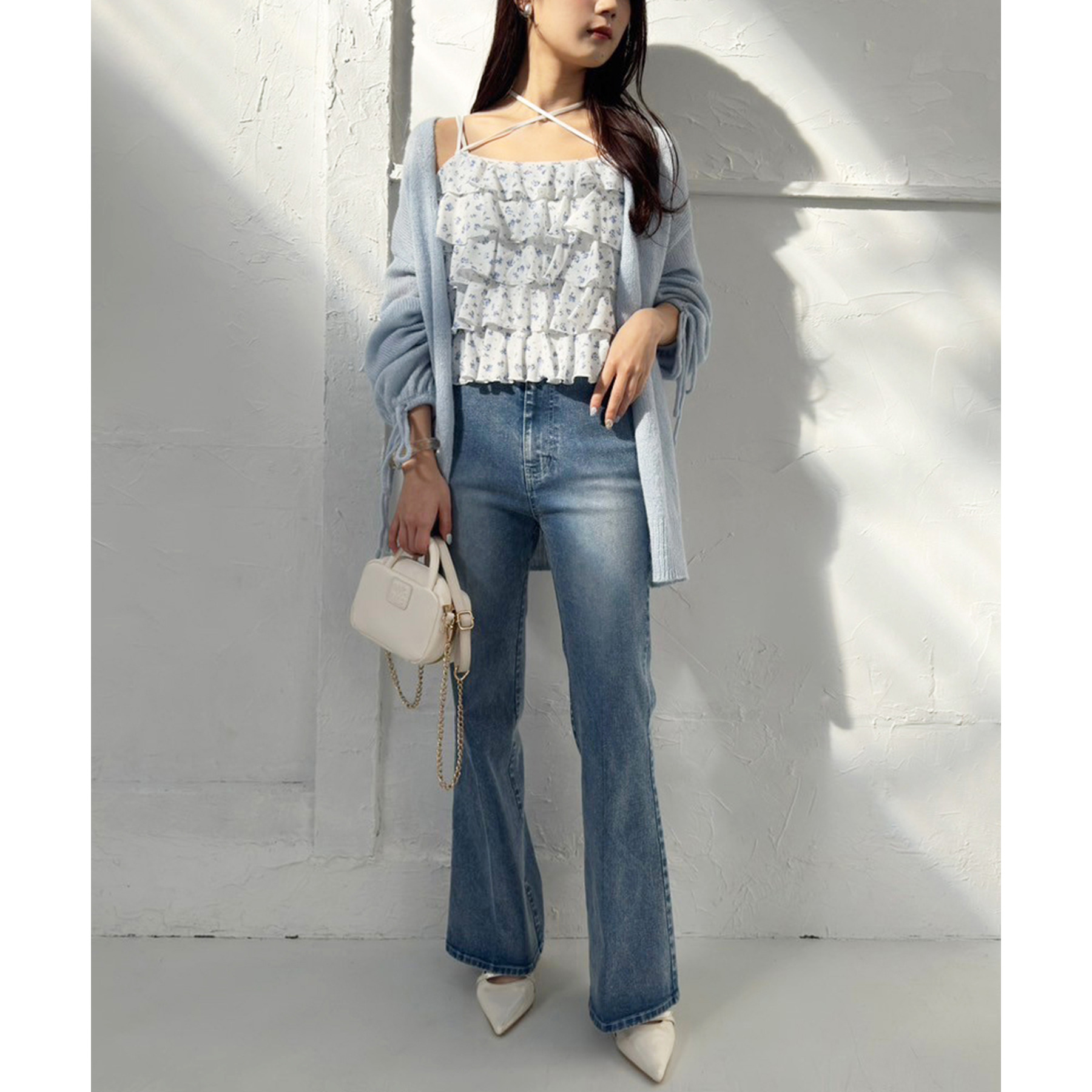 甘さの中にカジュアルなデニムを入れることによってフレンチカジュアルなコーデになります。