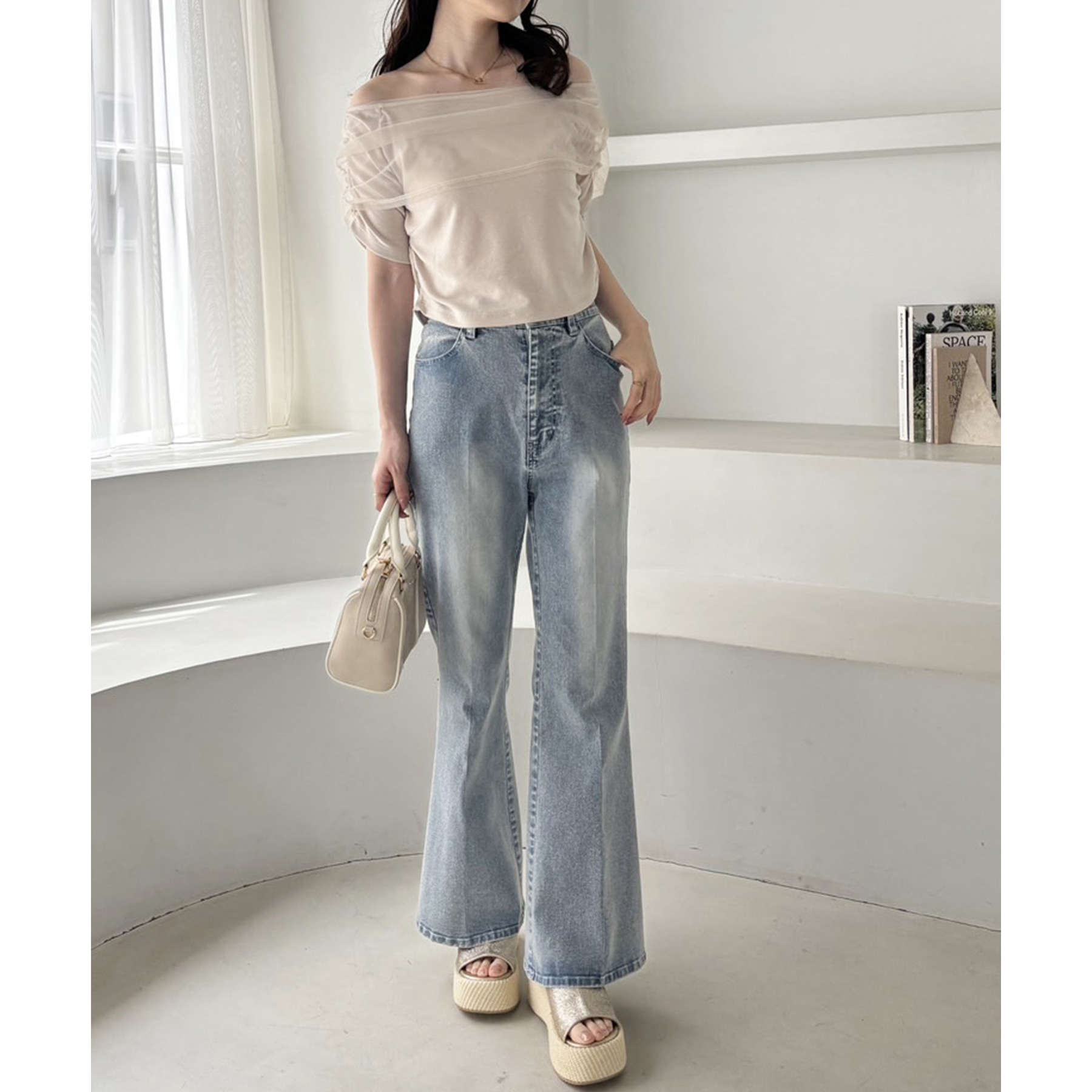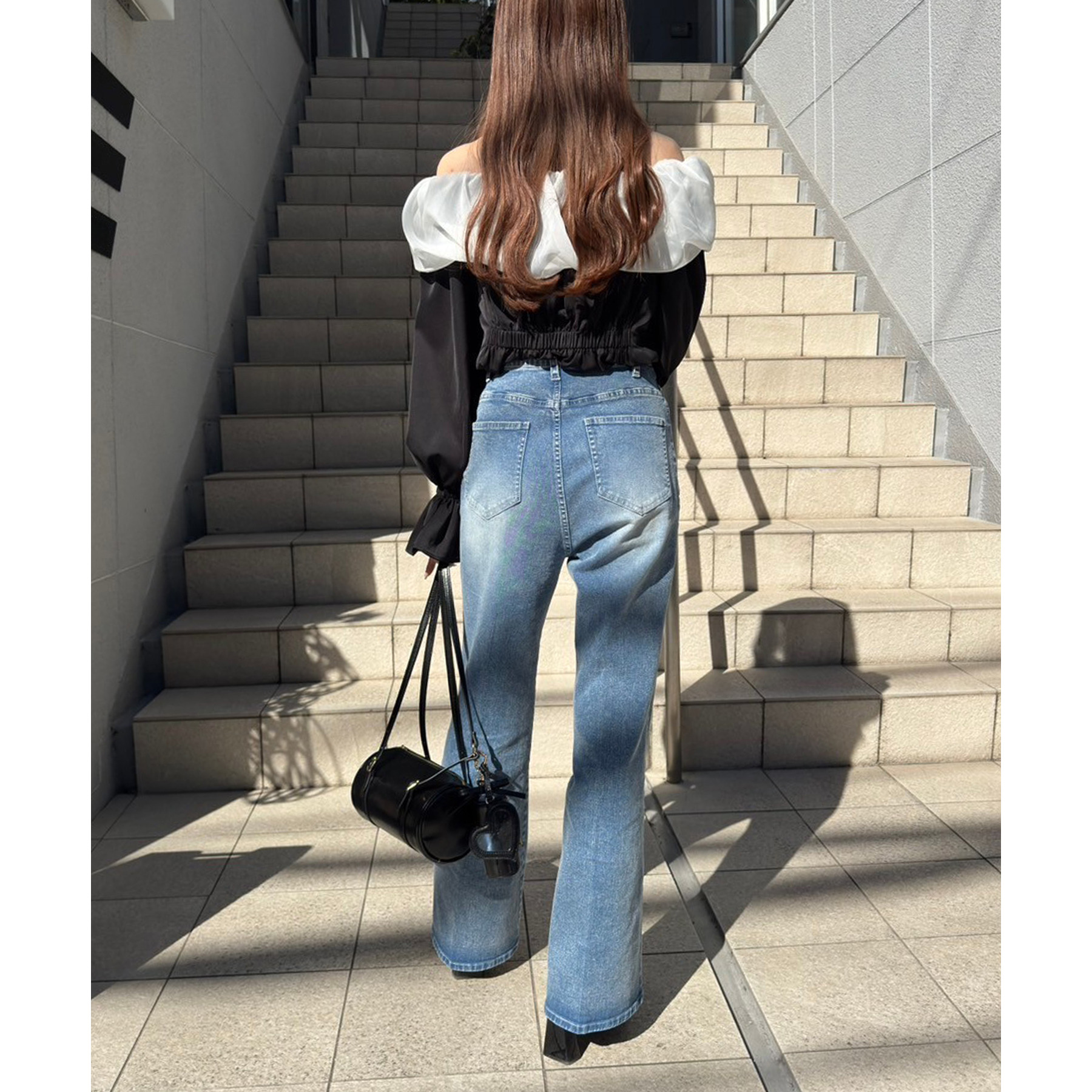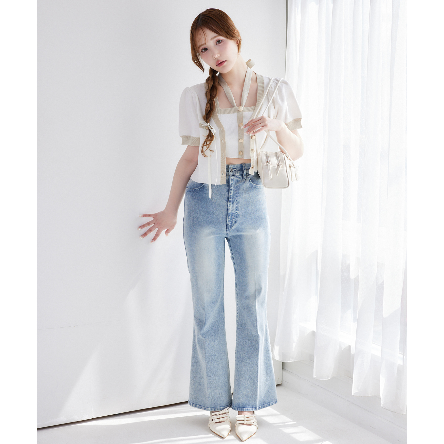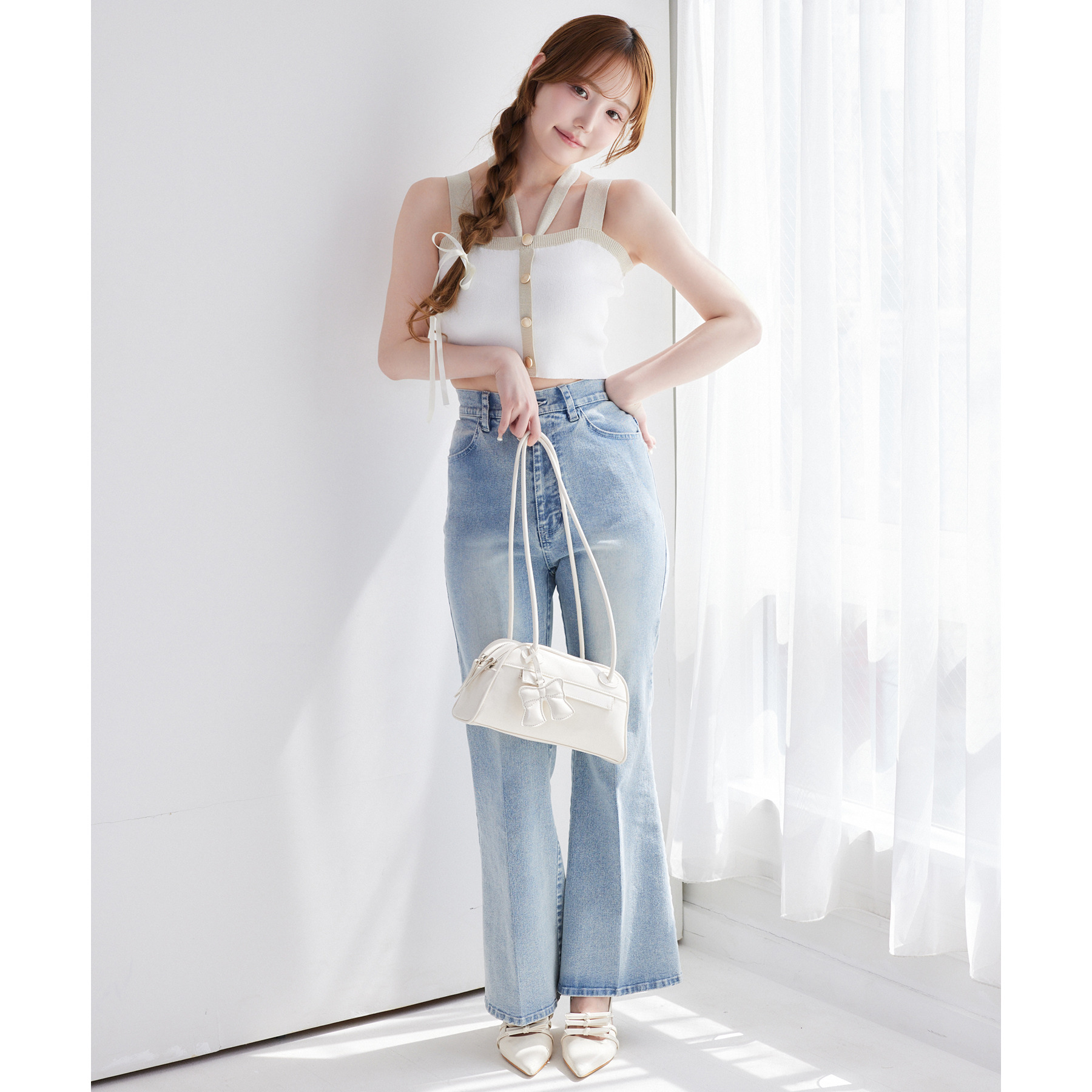 甘さの中にカジュアルなデニムを入れることによってフレンチカジュアルなコーデになります。