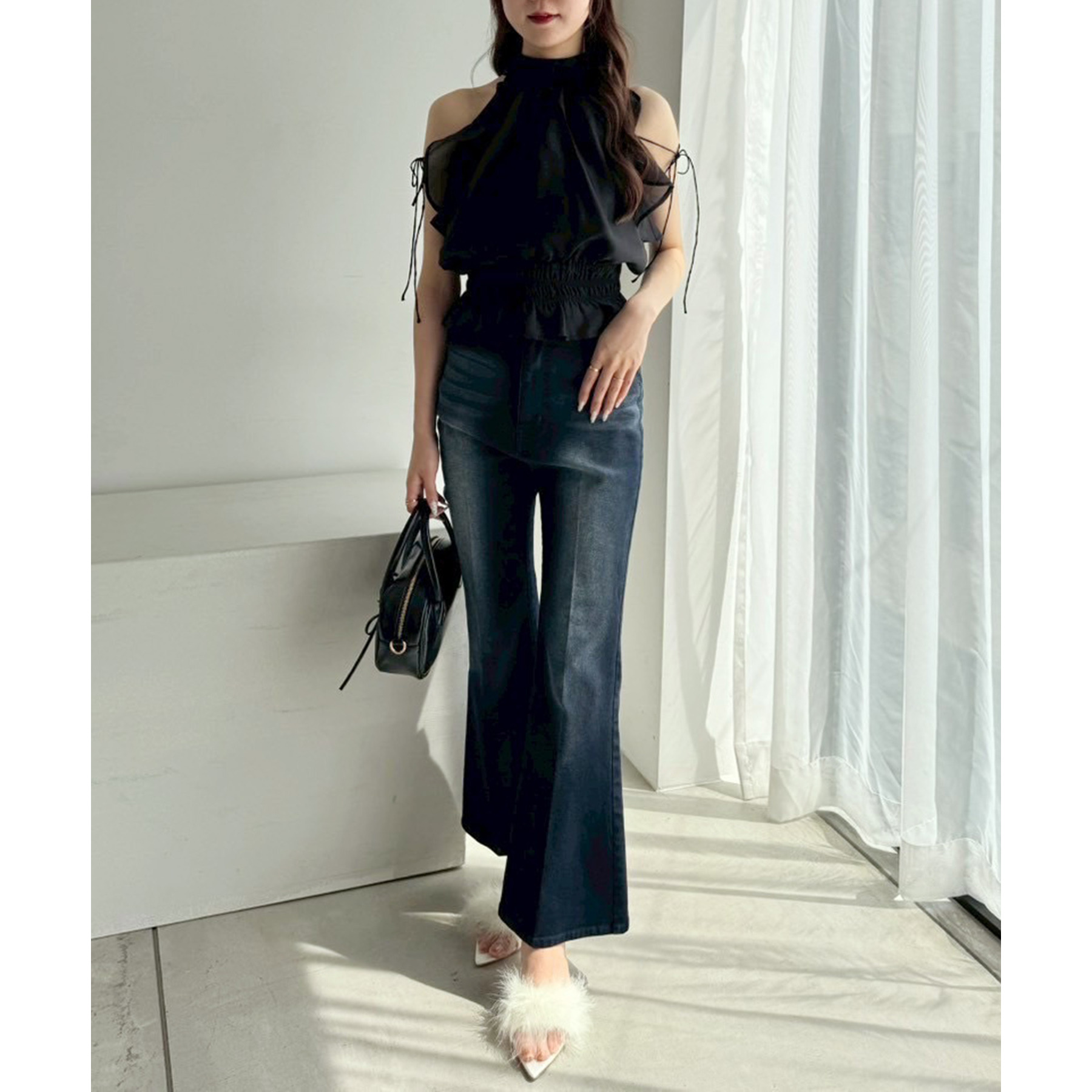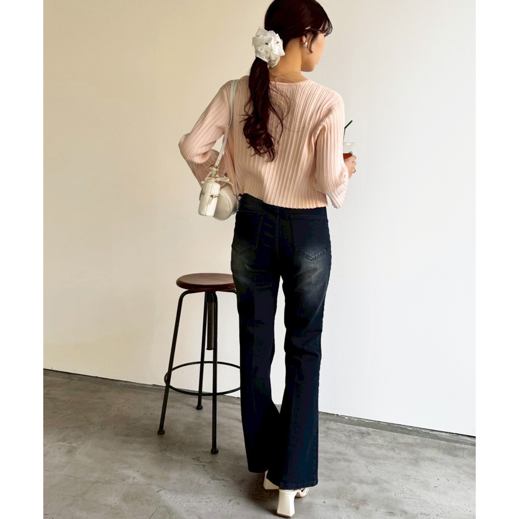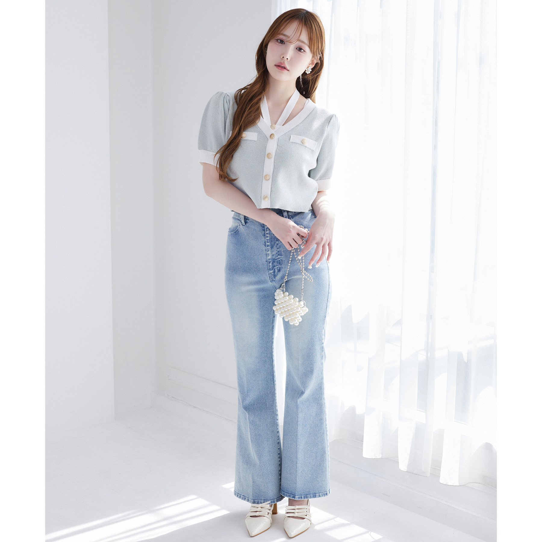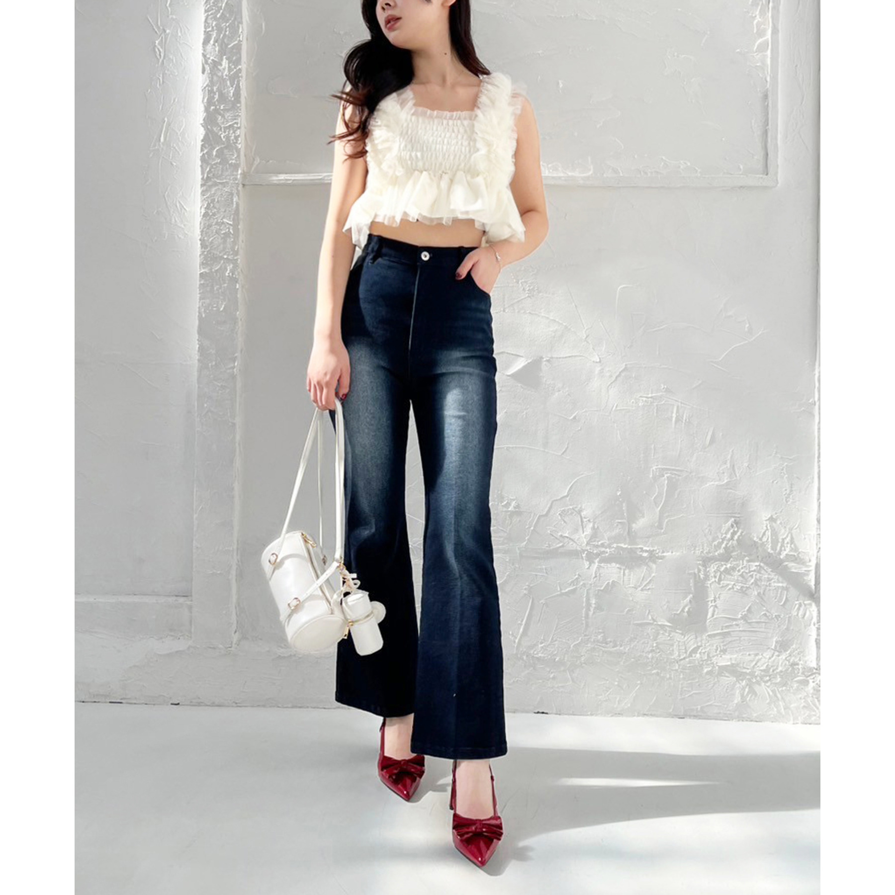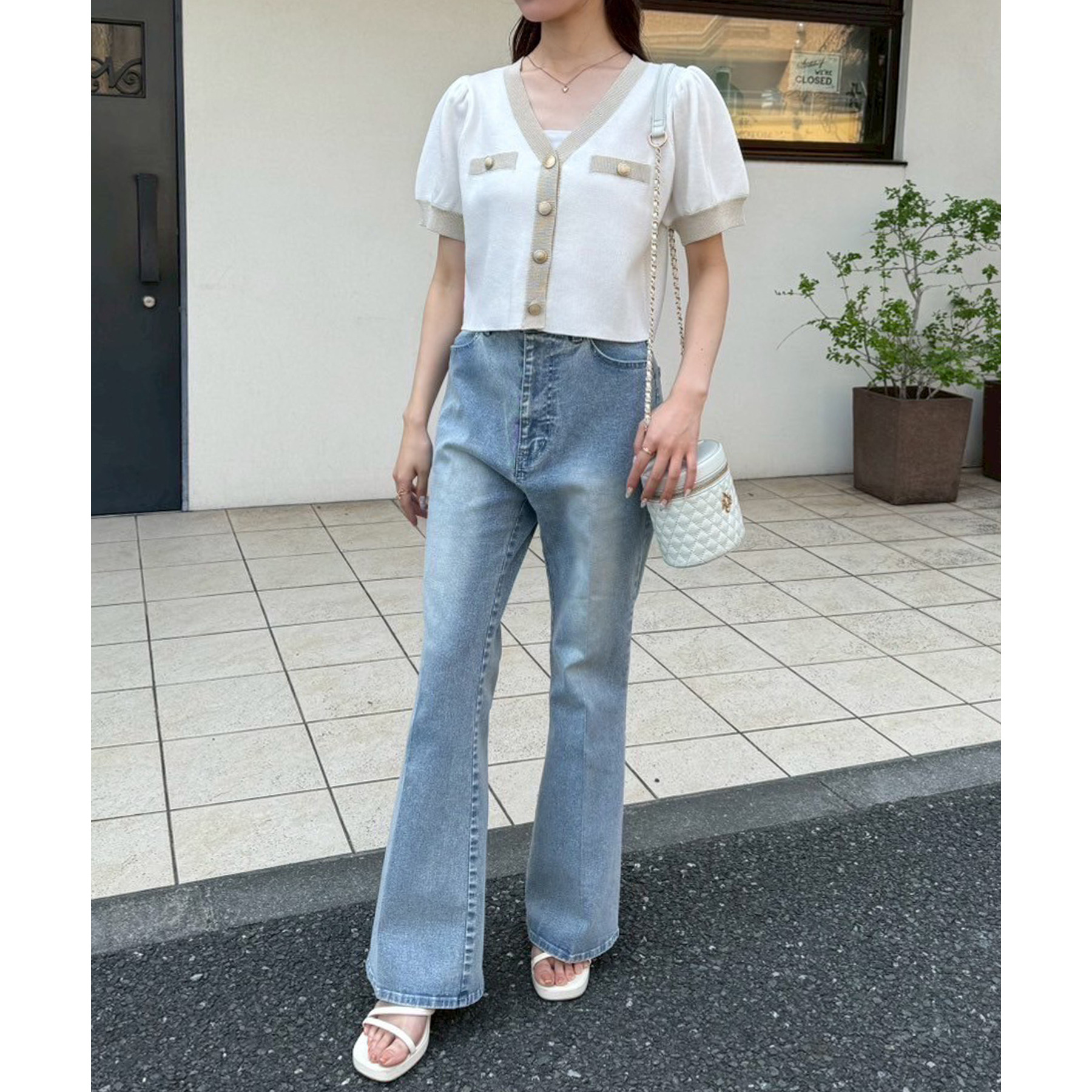 甘さの中にカジュアルなデニムを入れることによってフレンチカジュアルなコーデになります。