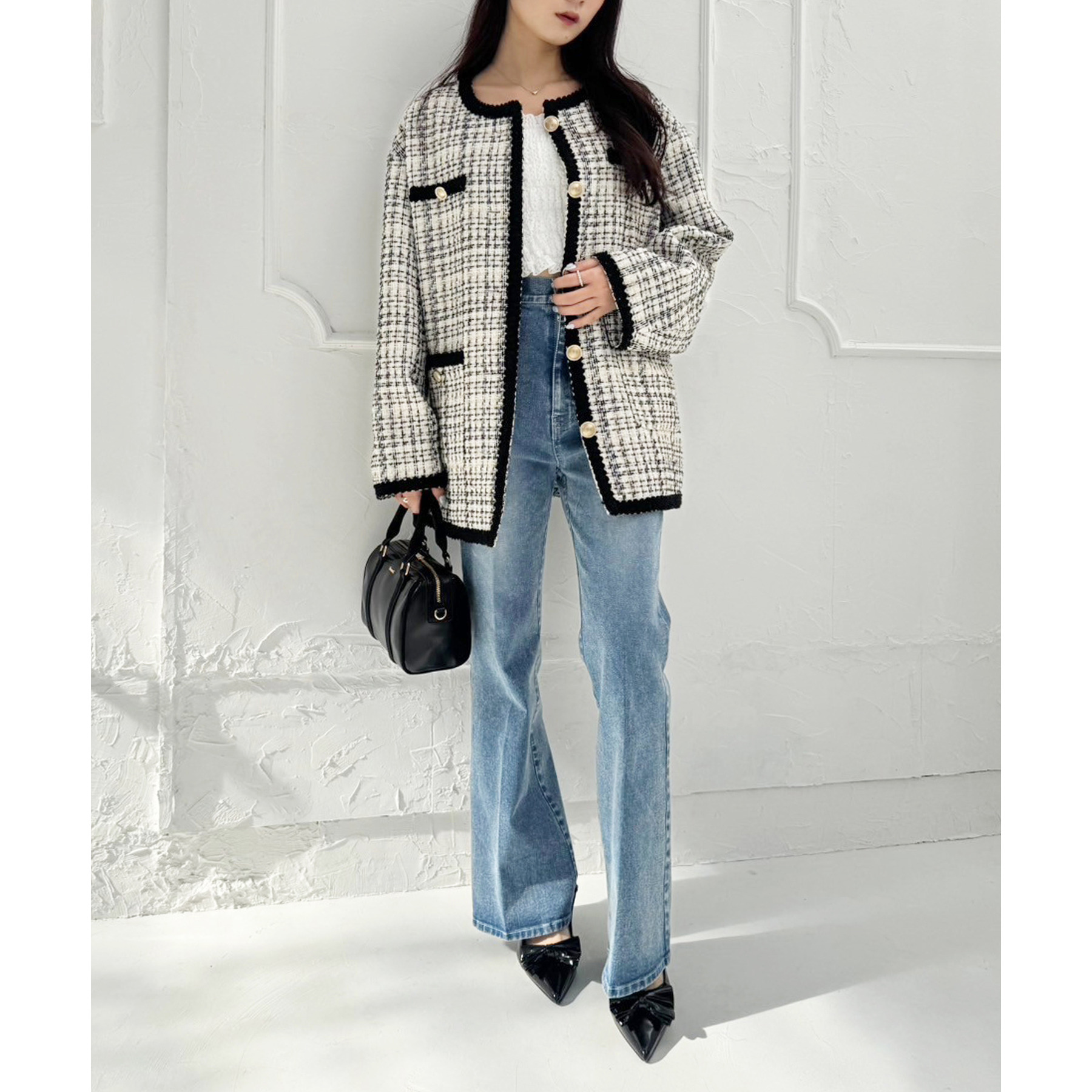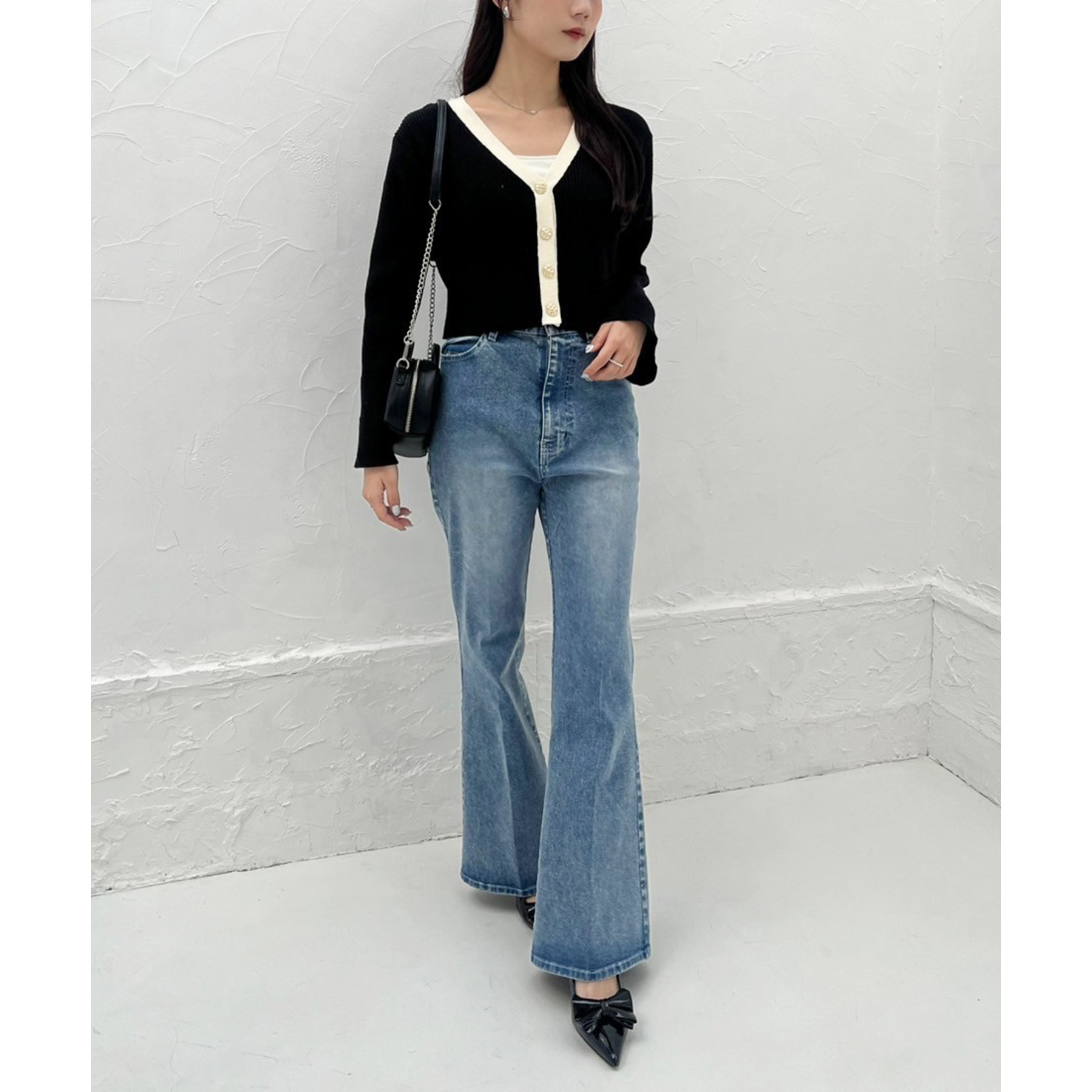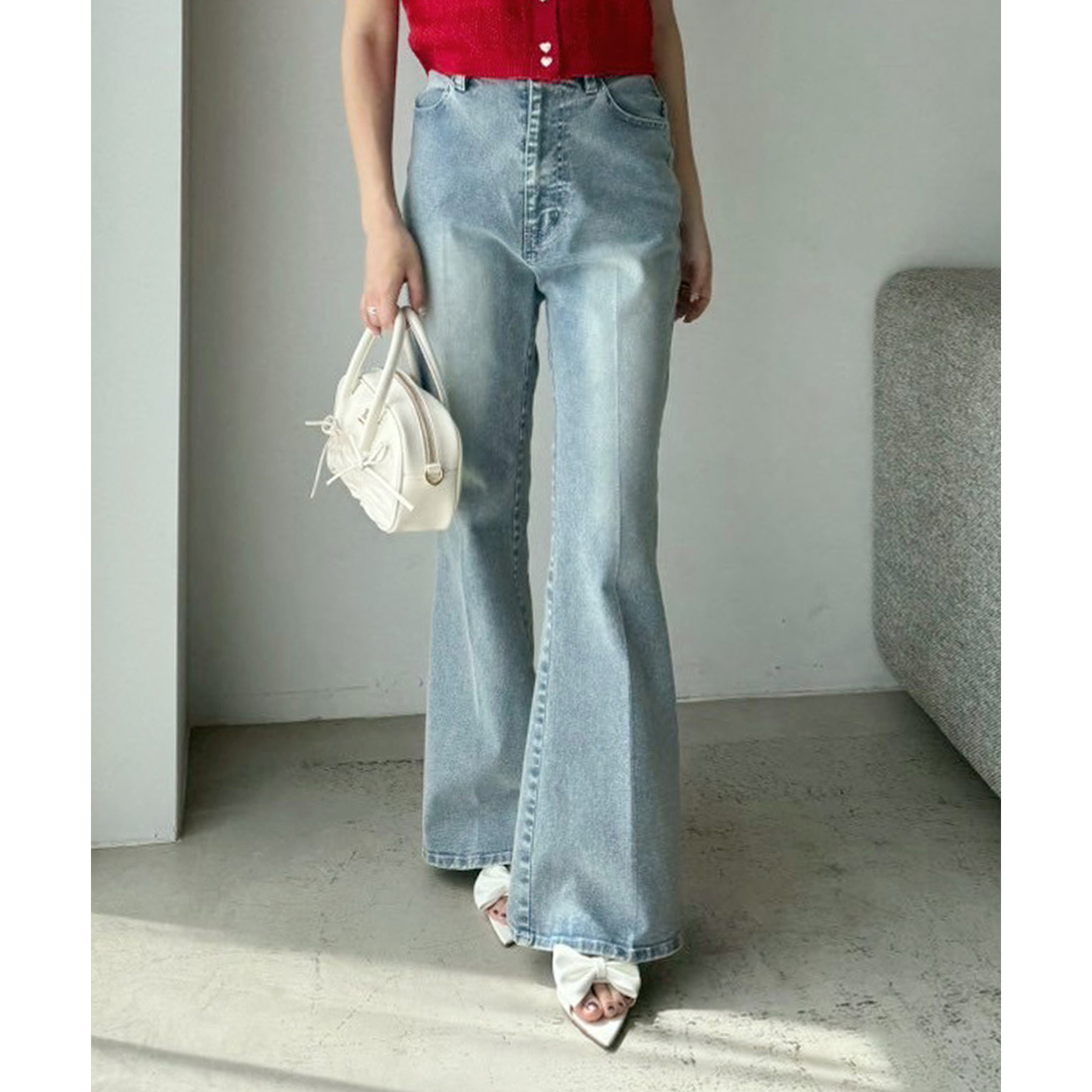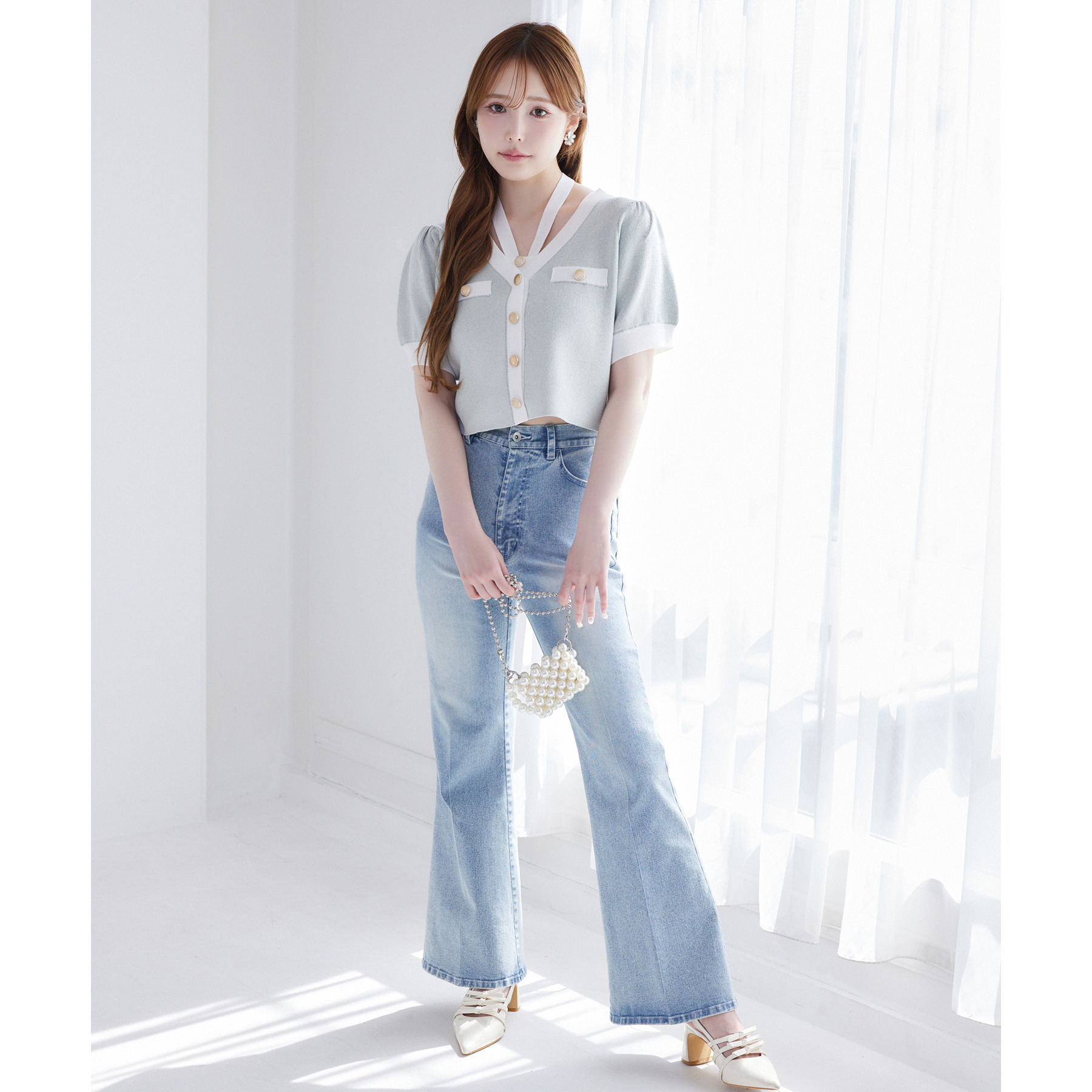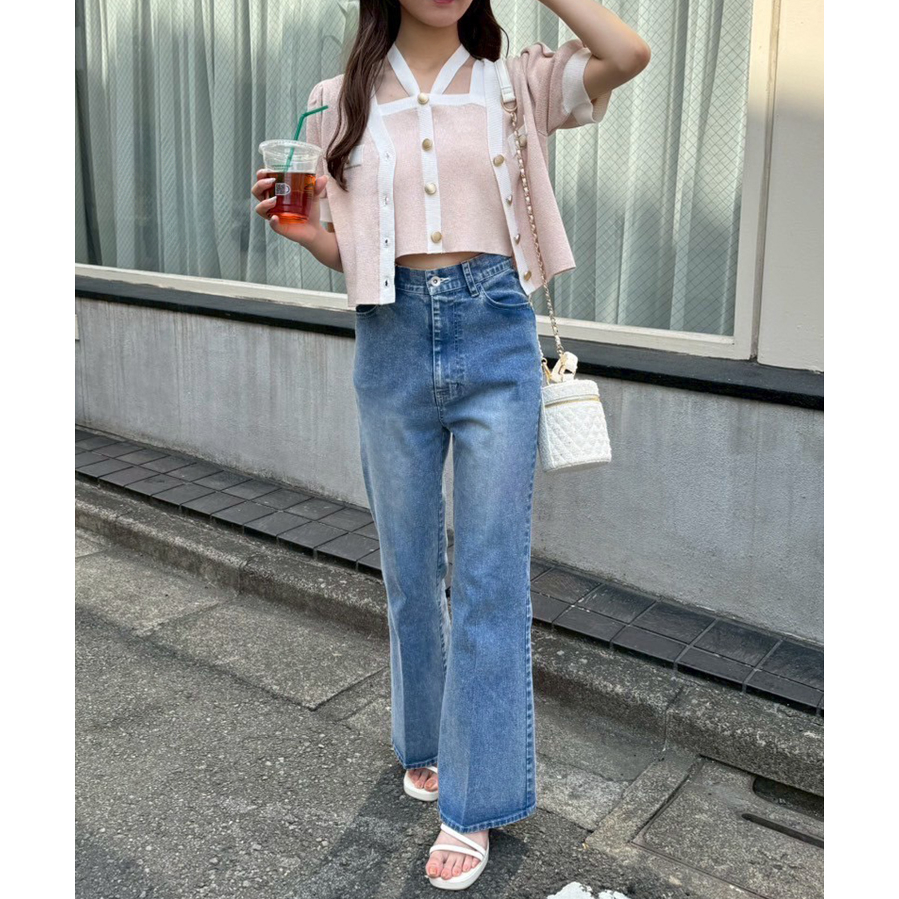 甘さの中にカジュアルなデニムを入れることによってフレンチカジュアルなコーデになります。