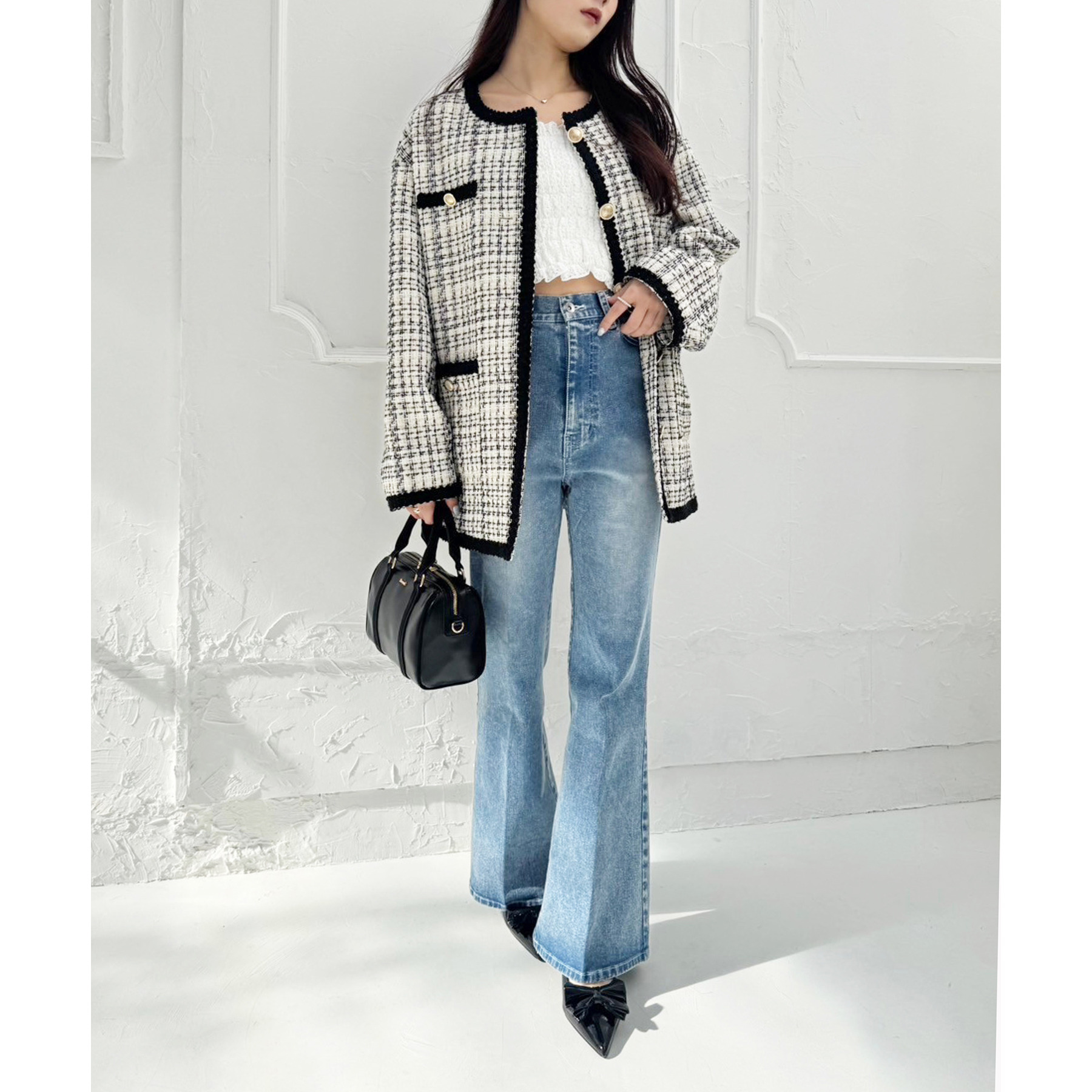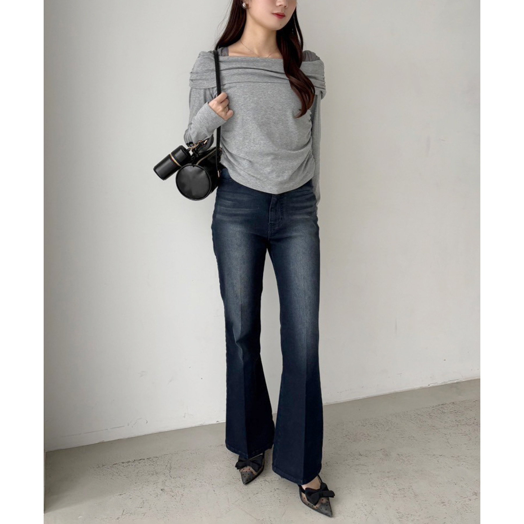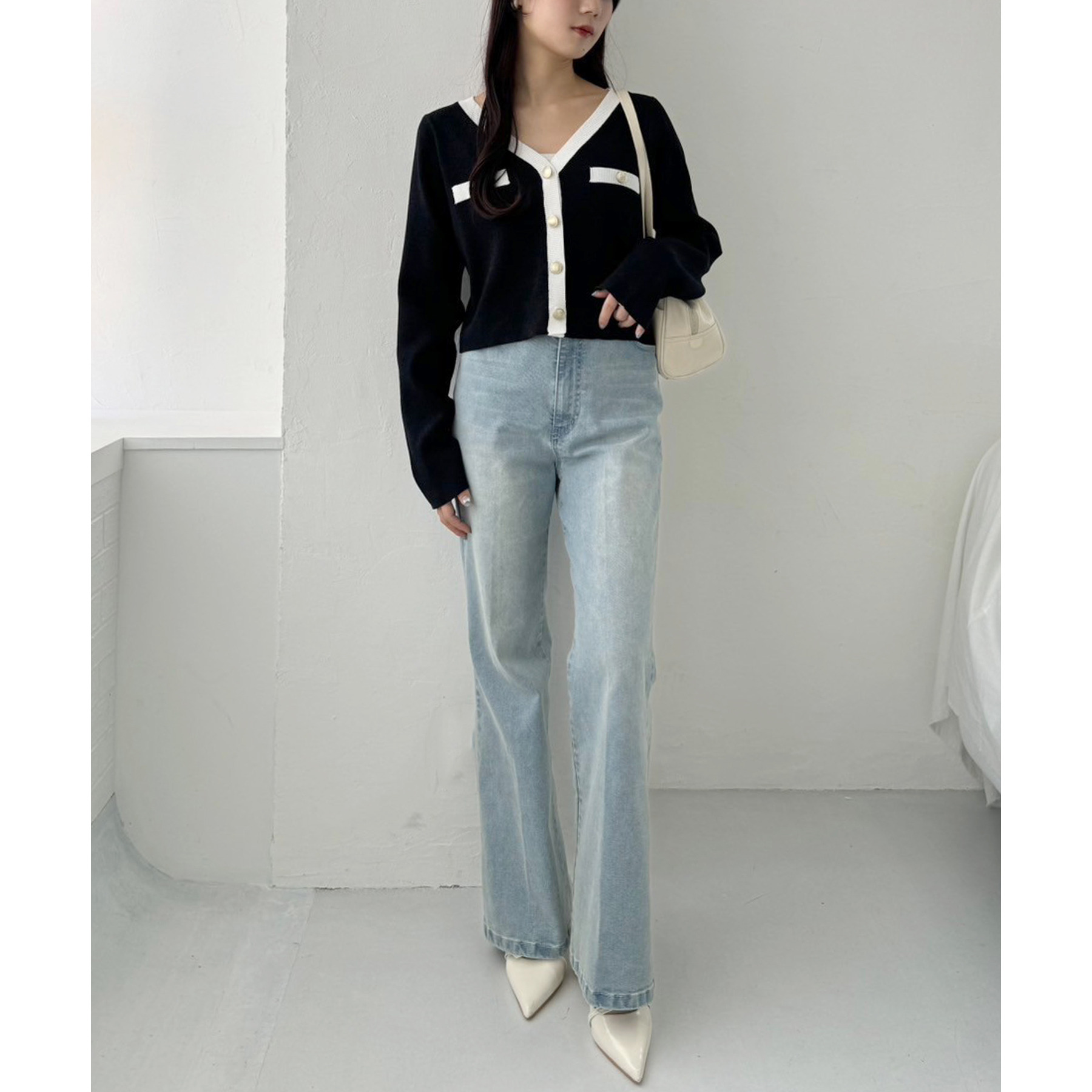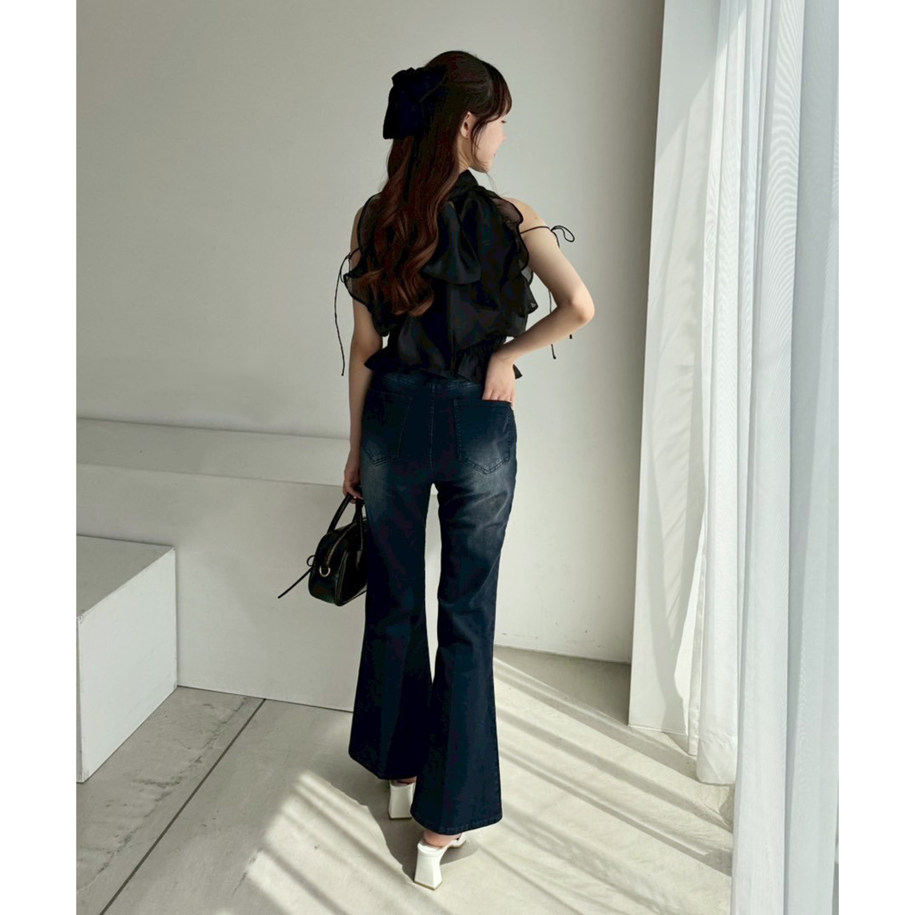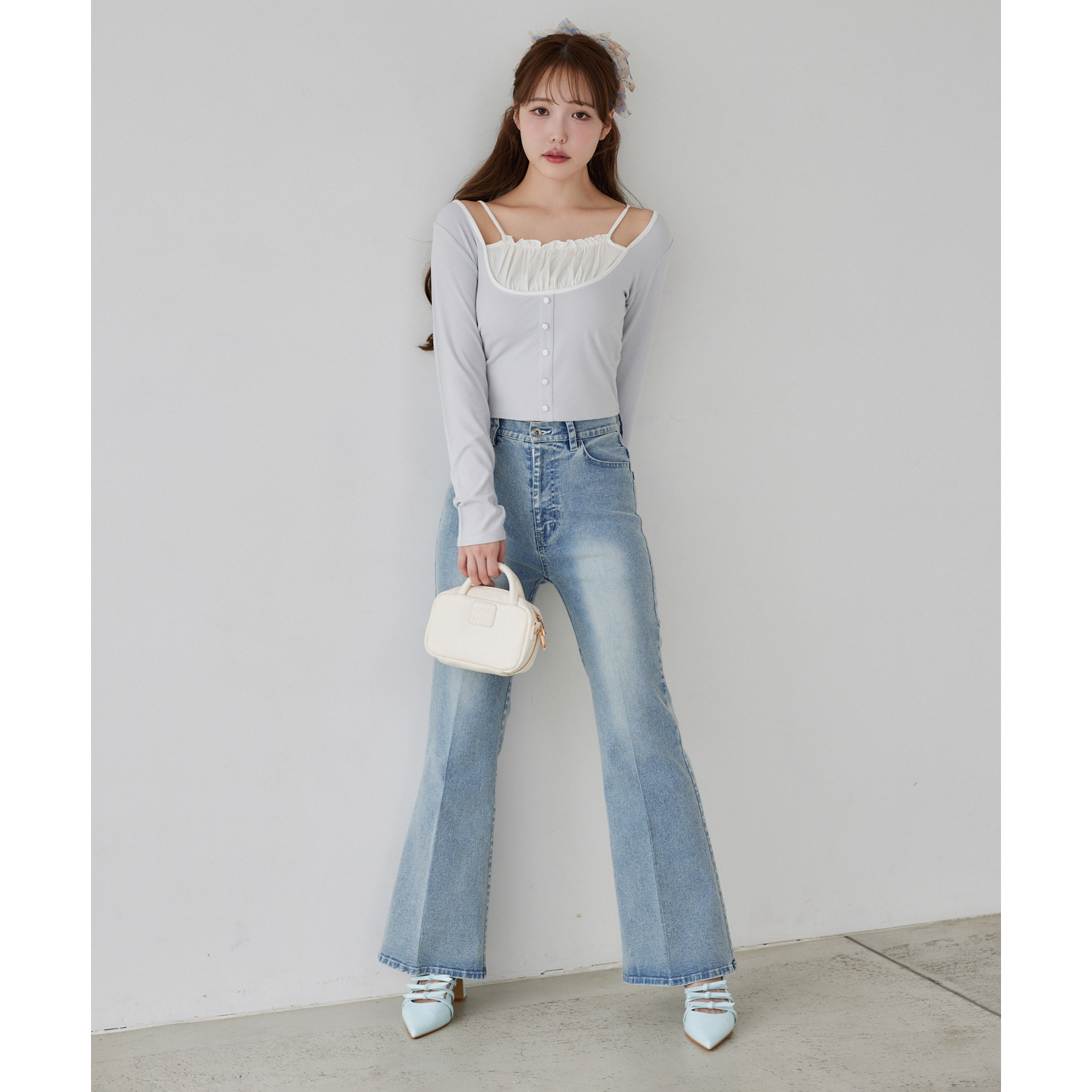 甘さの中にカジュアルなデニムを入れることによってフレンチカジュアルなコーデになります。