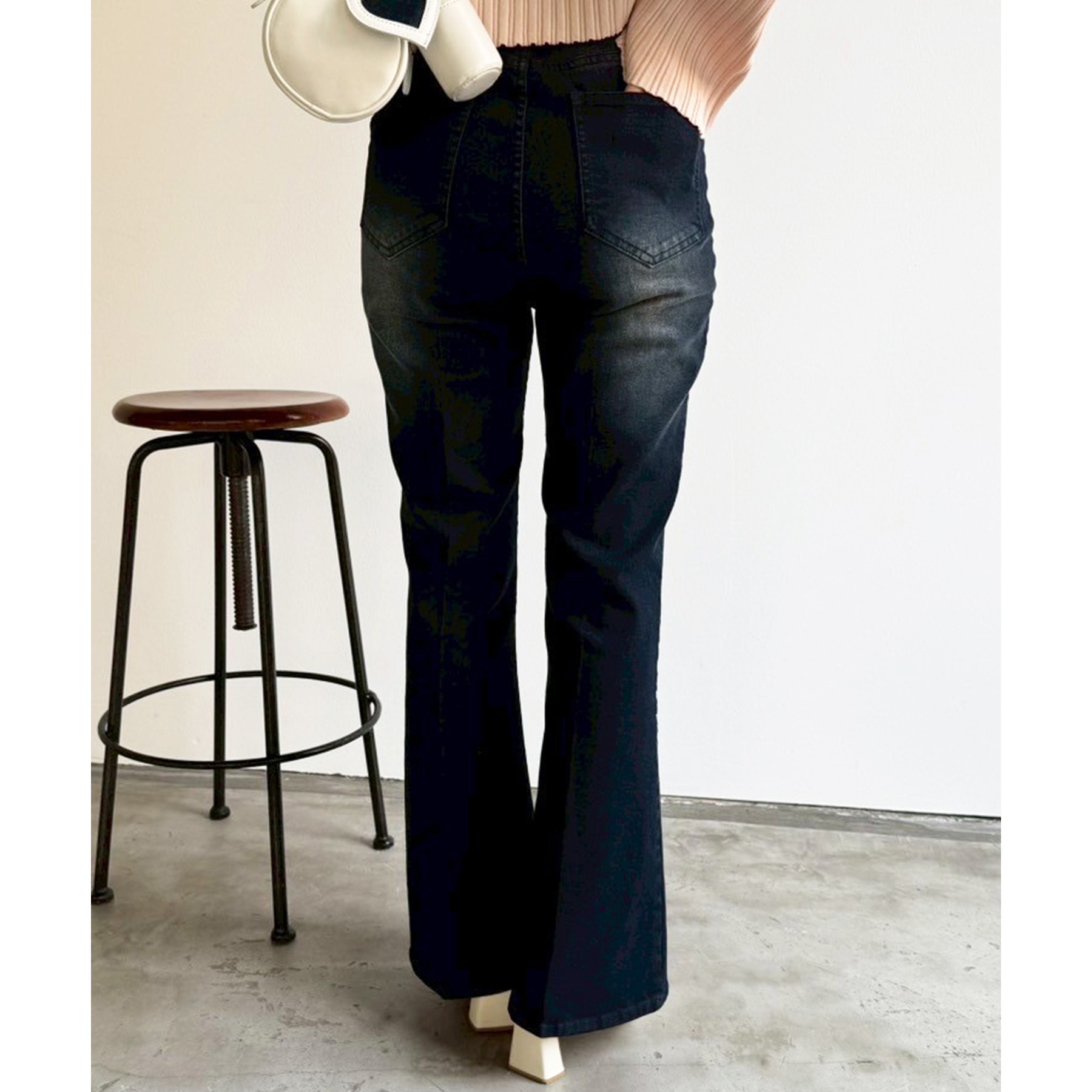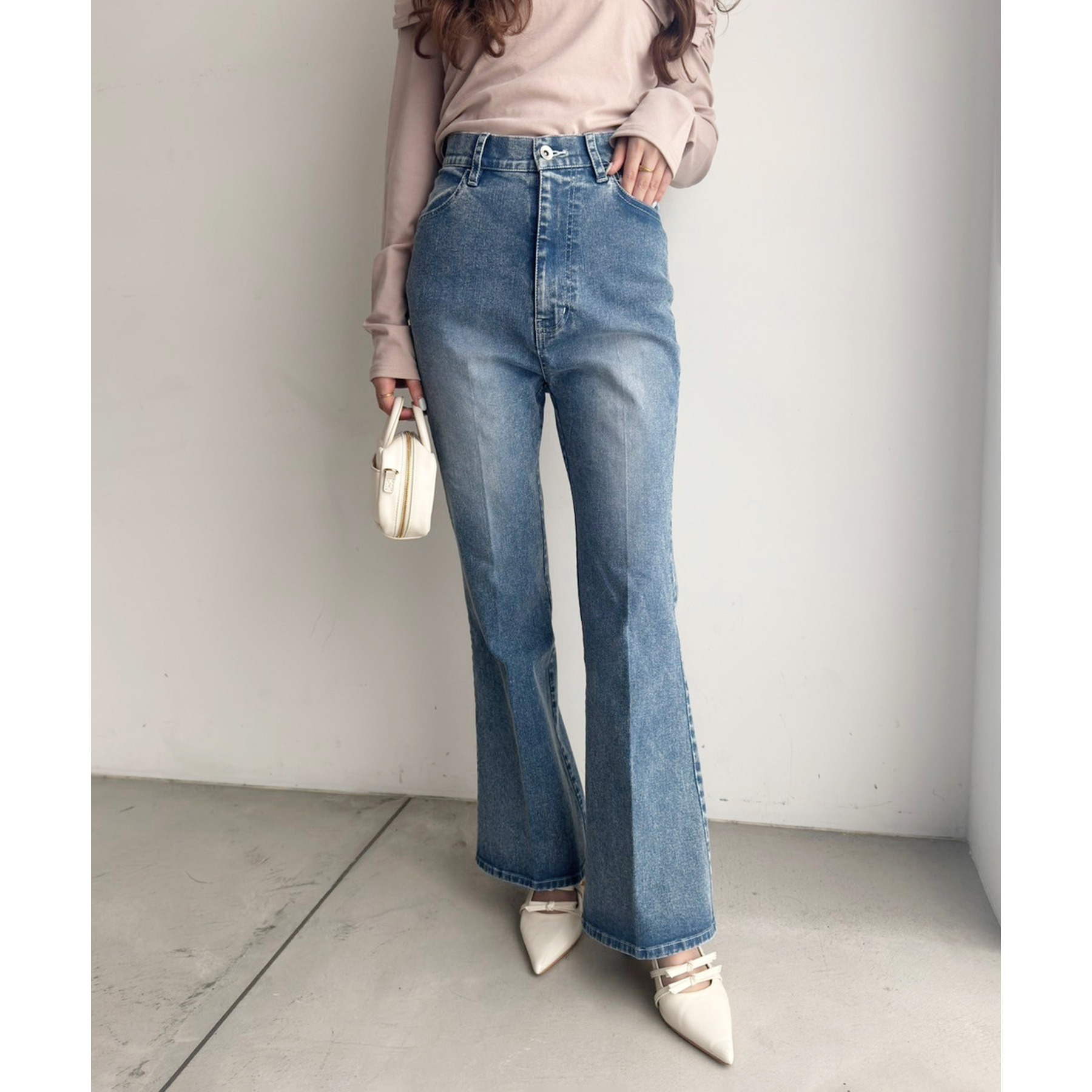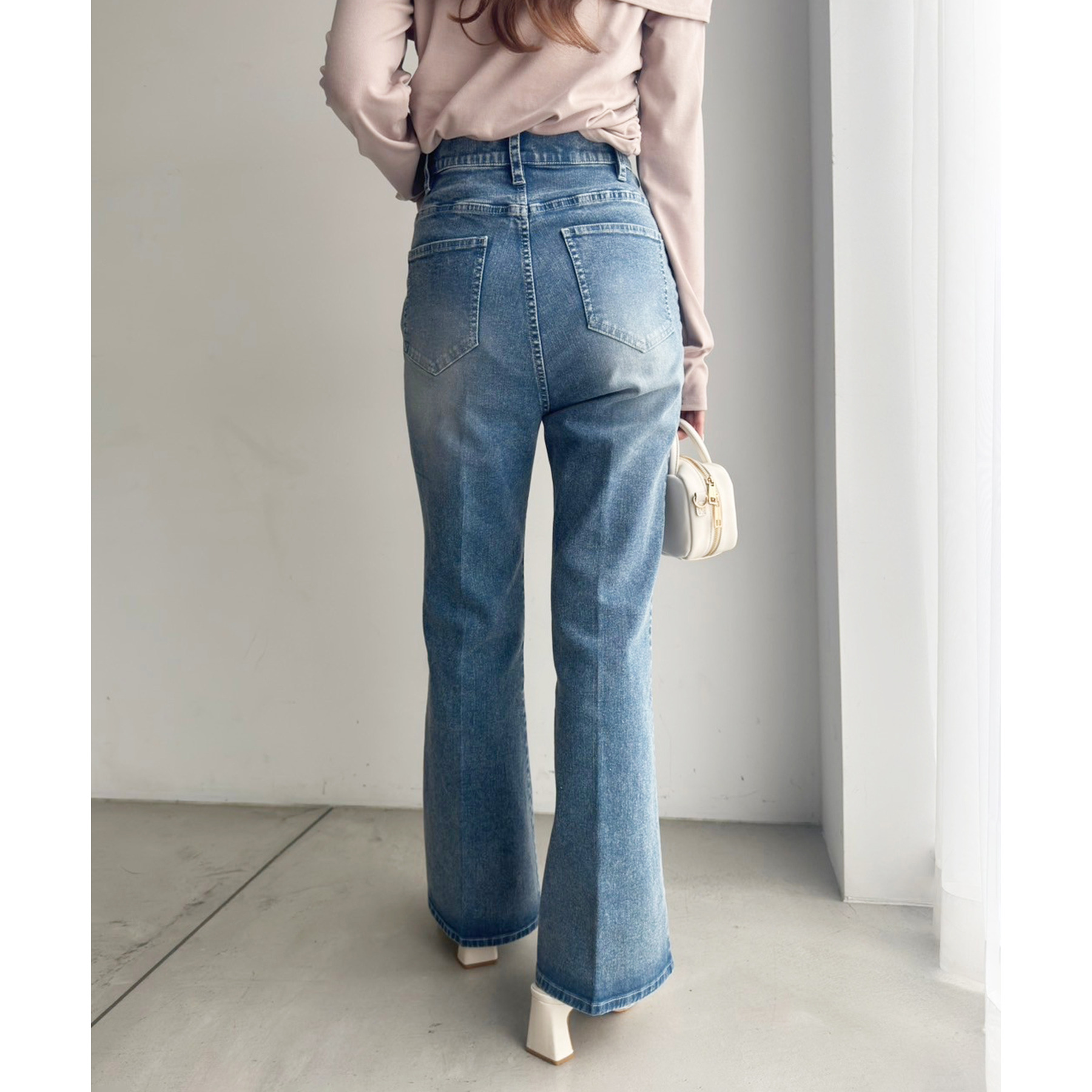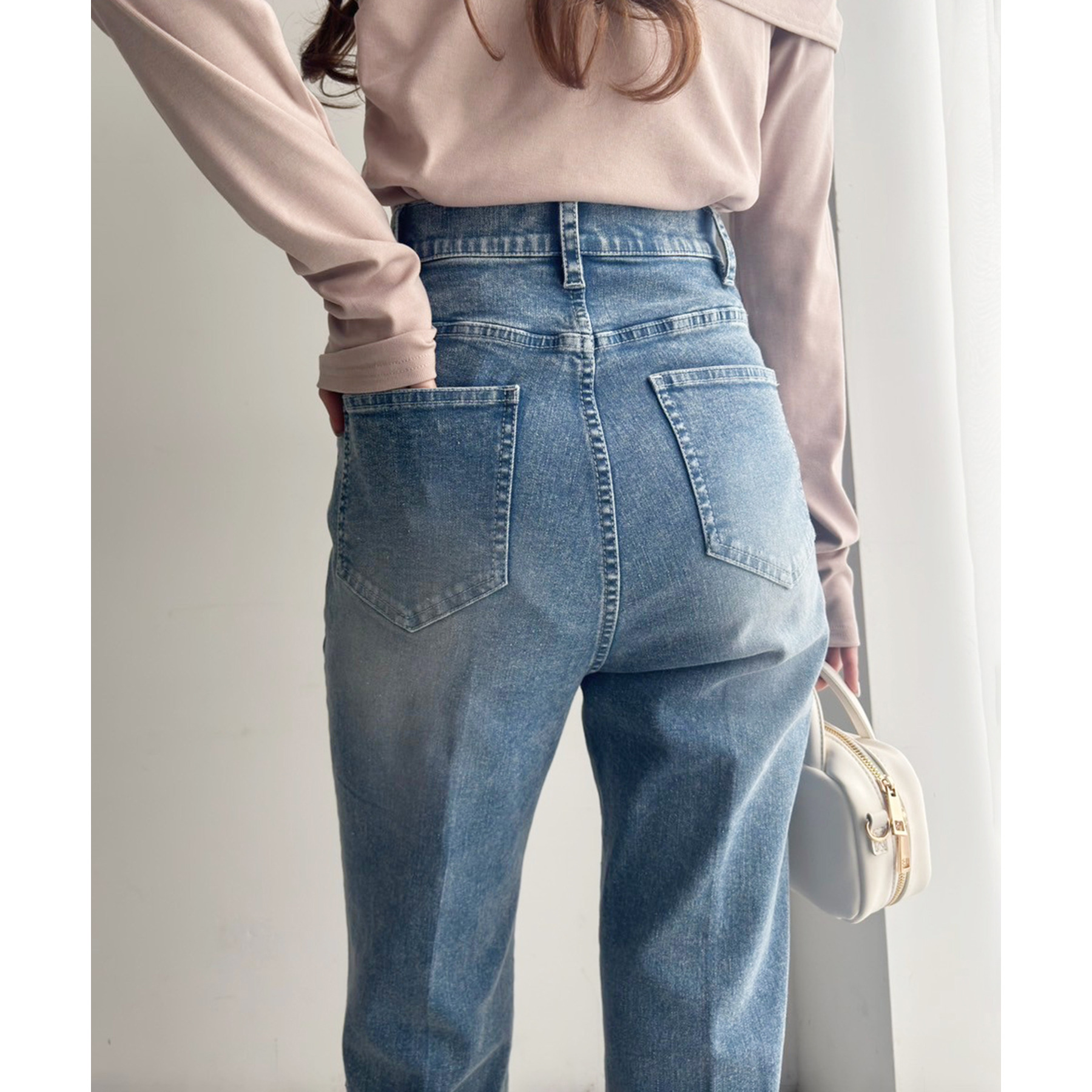 人気のハイウエストデザインに、センターラインを入れ足長効果に。