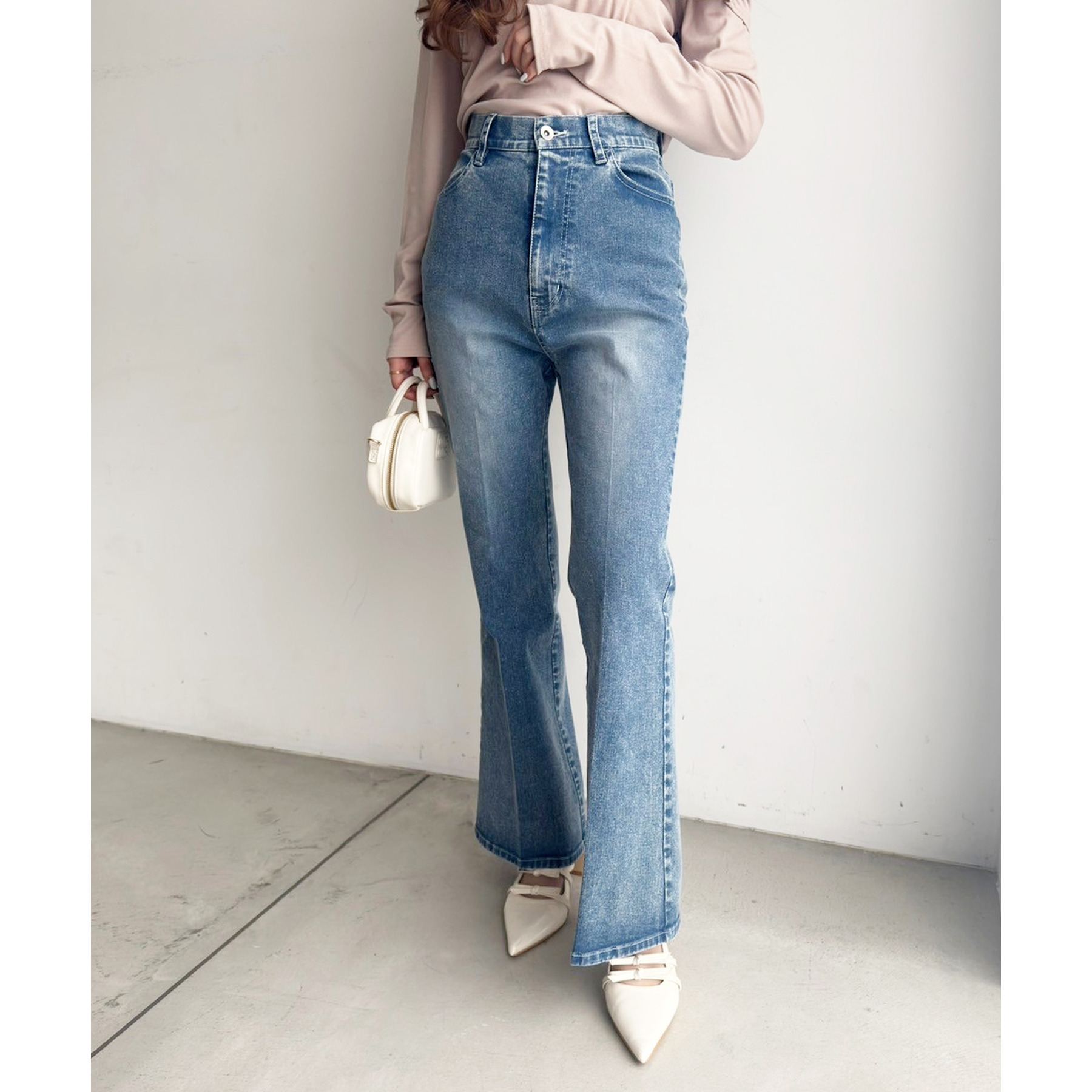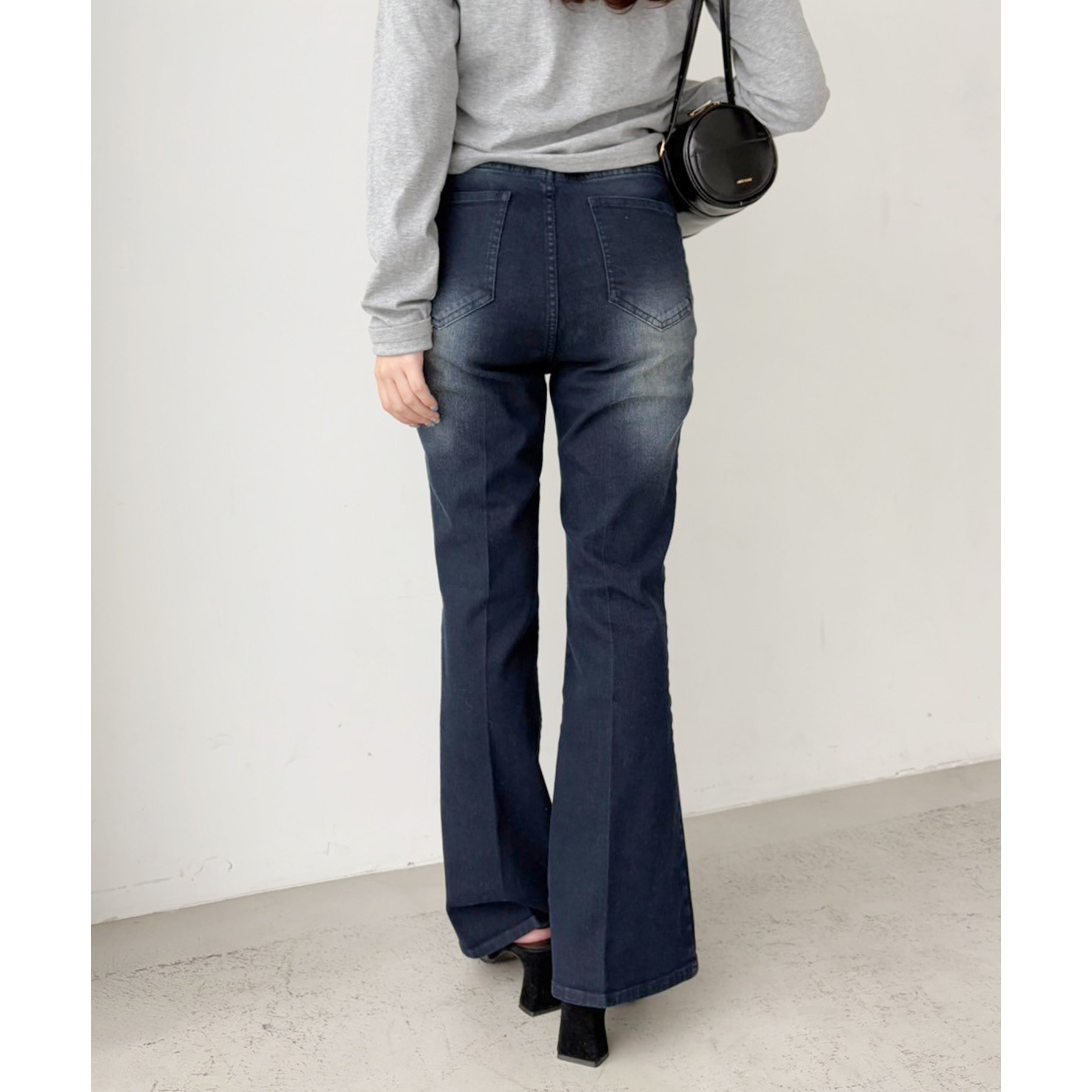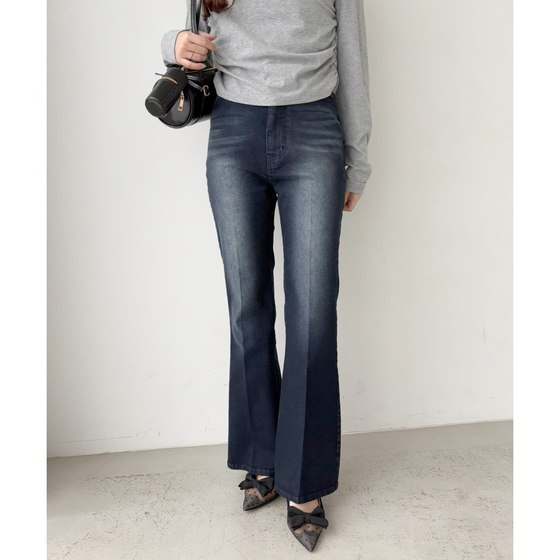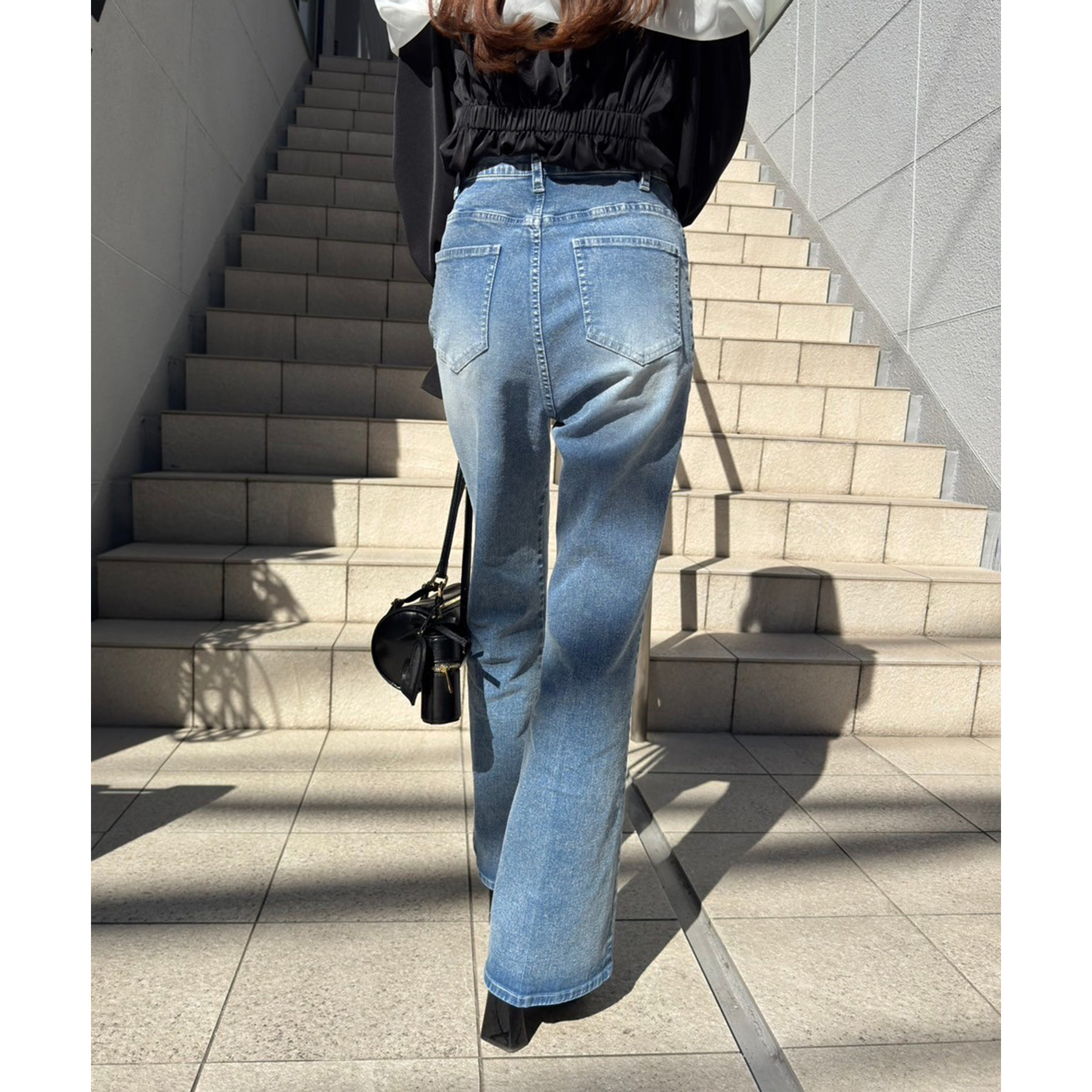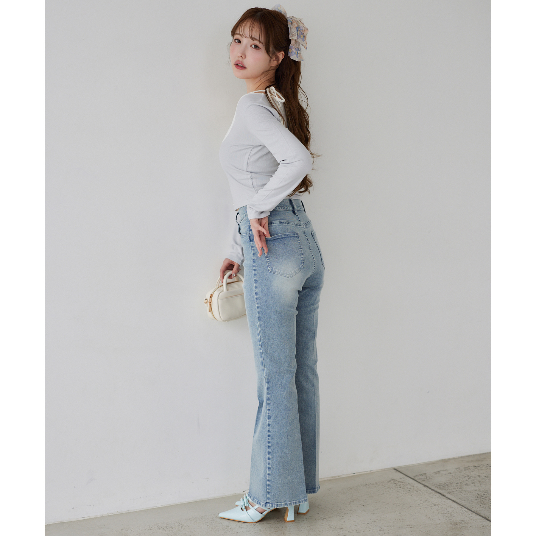 人気のハイウエストデザインに、センターラインを入れ足長効果に。