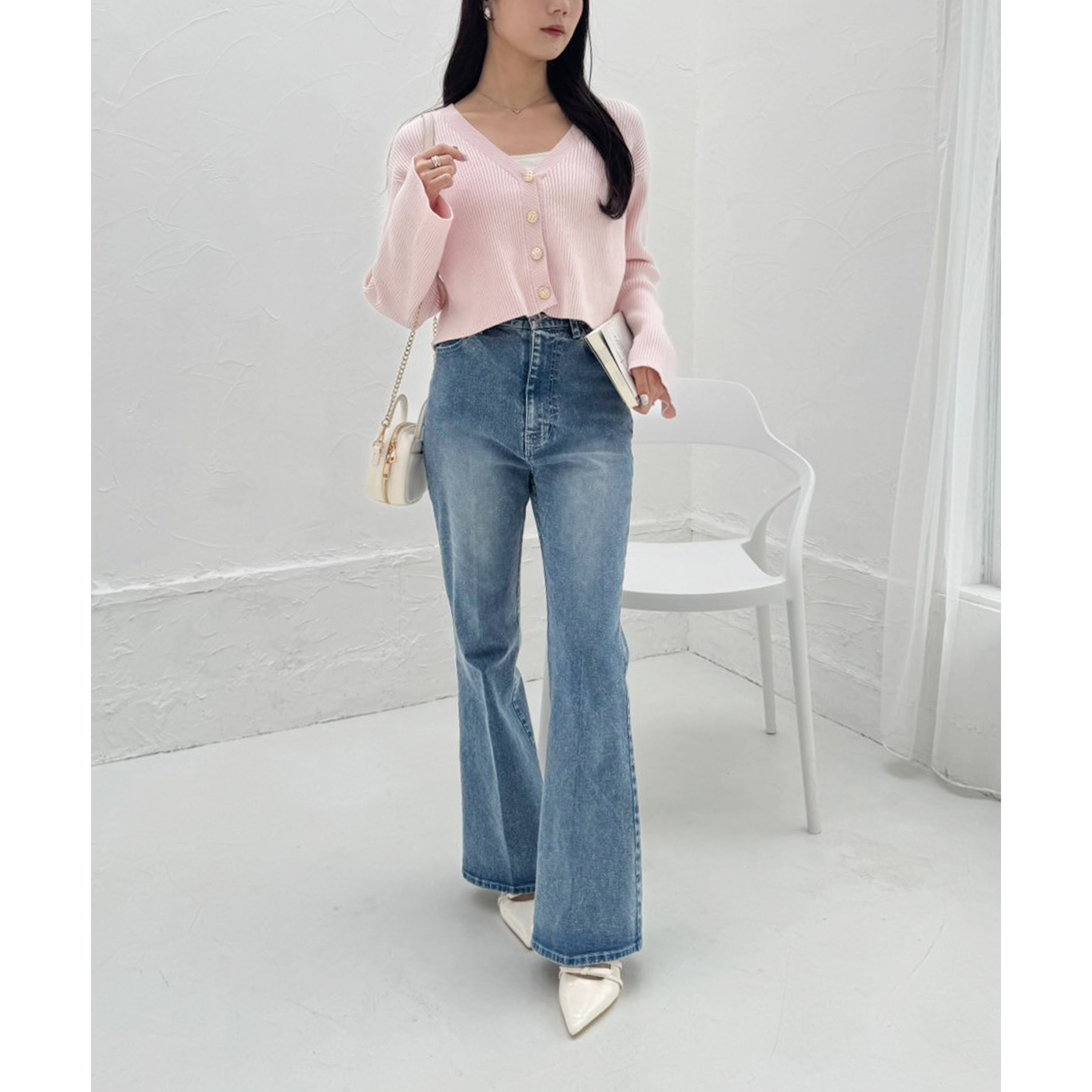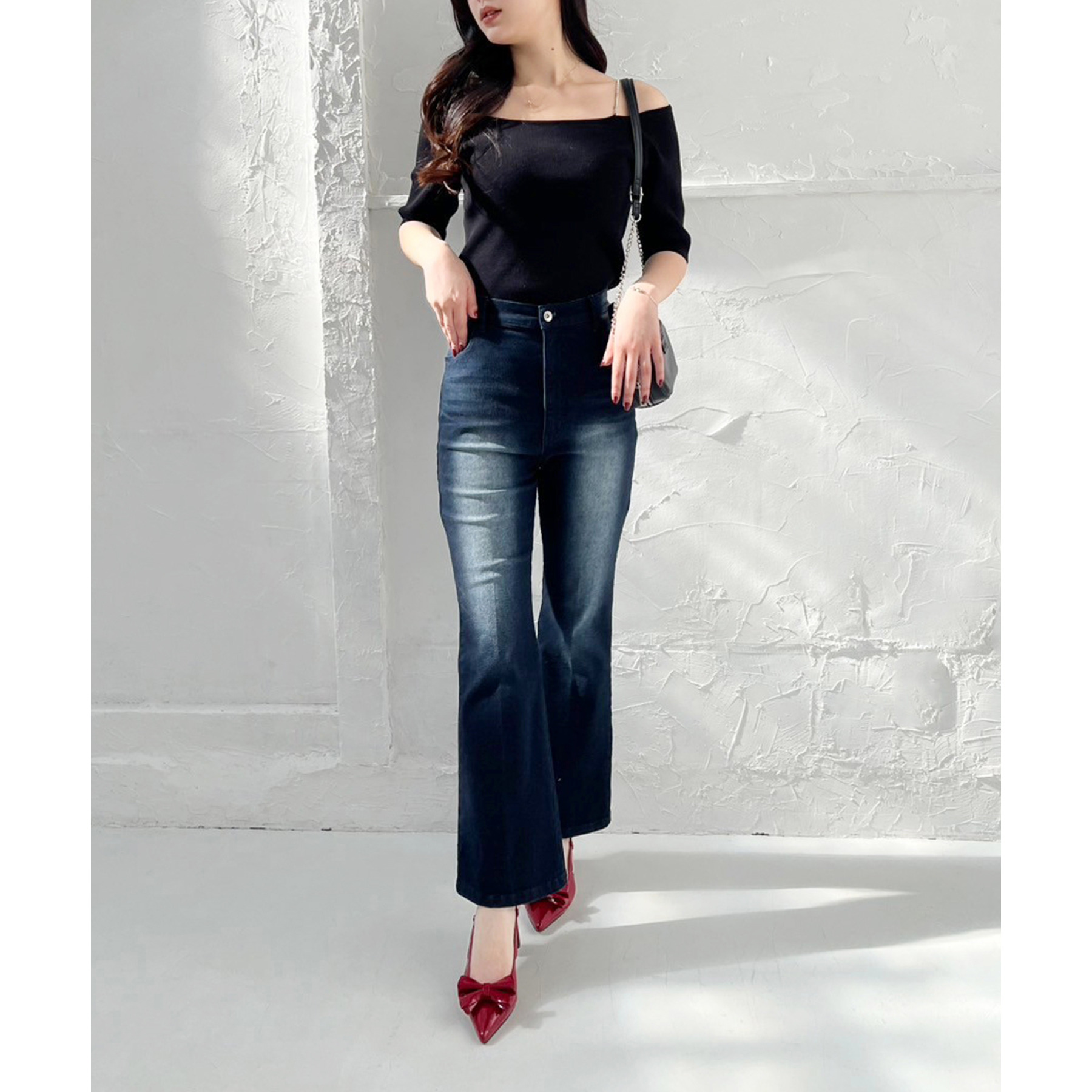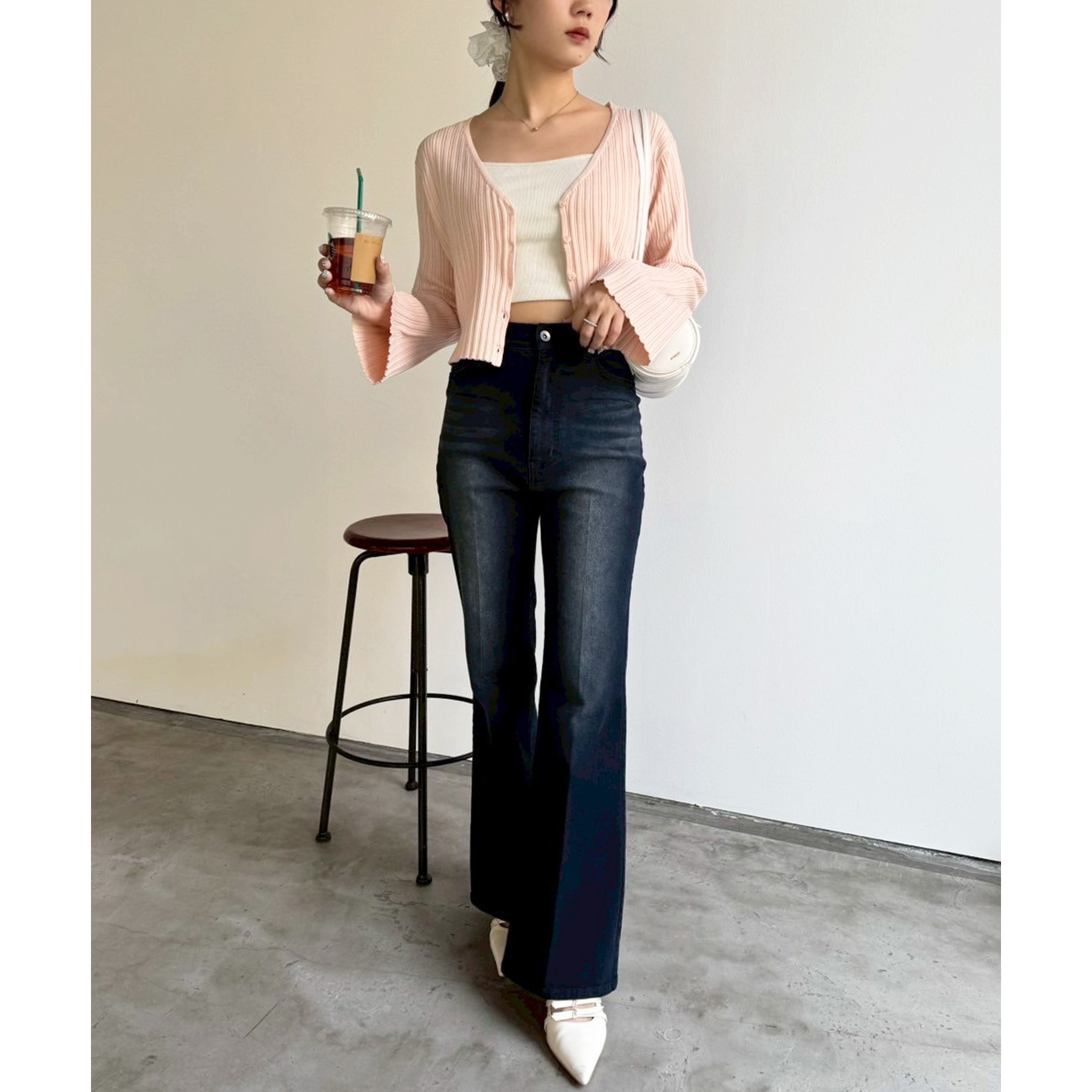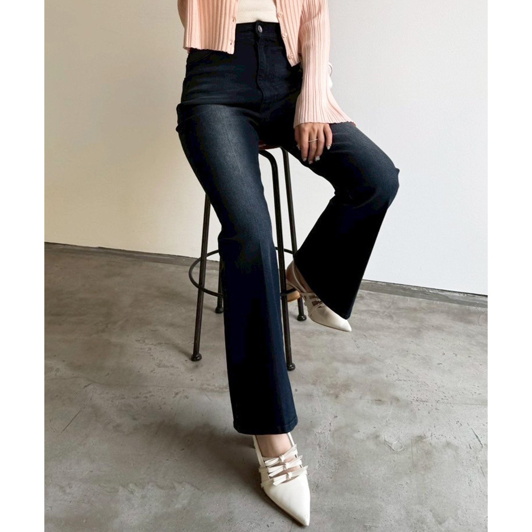人気のハイウエストデザインに、センターラインを入れ足長効果に。