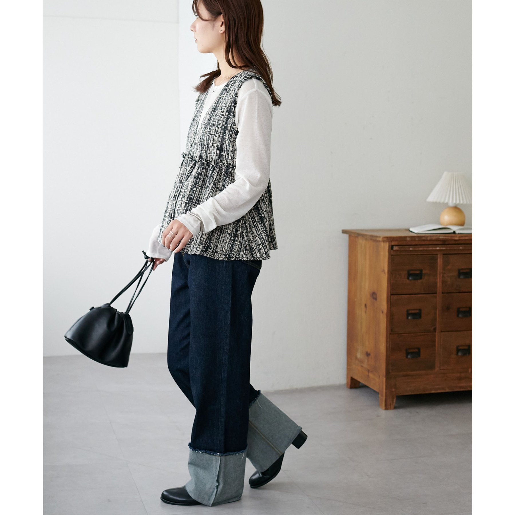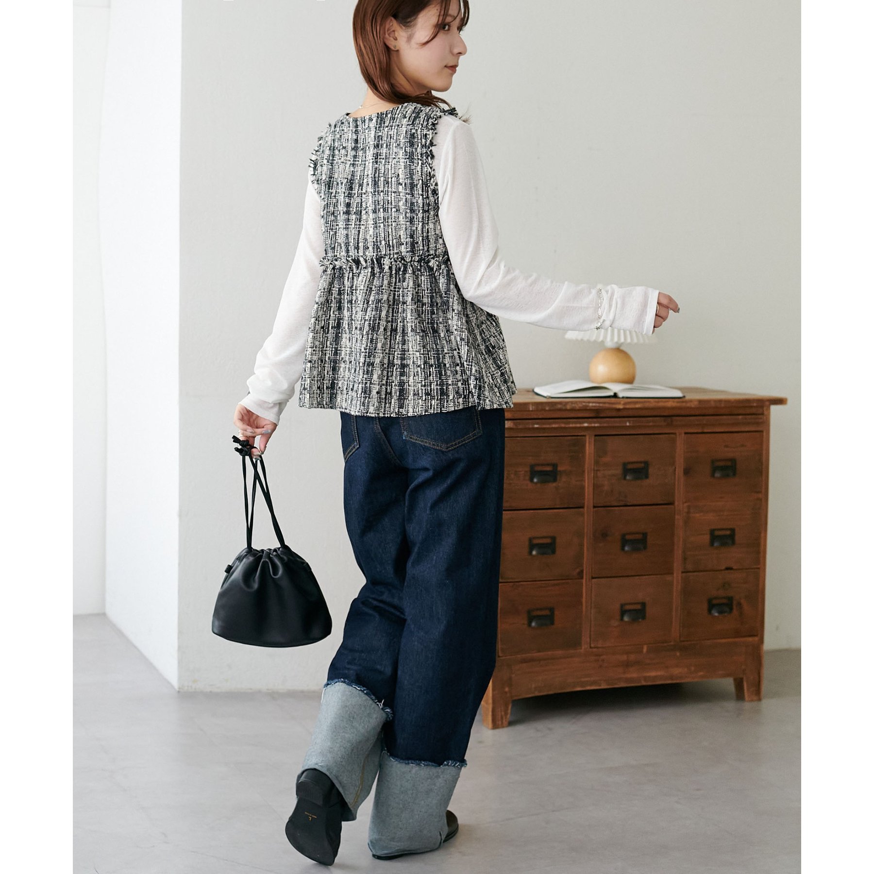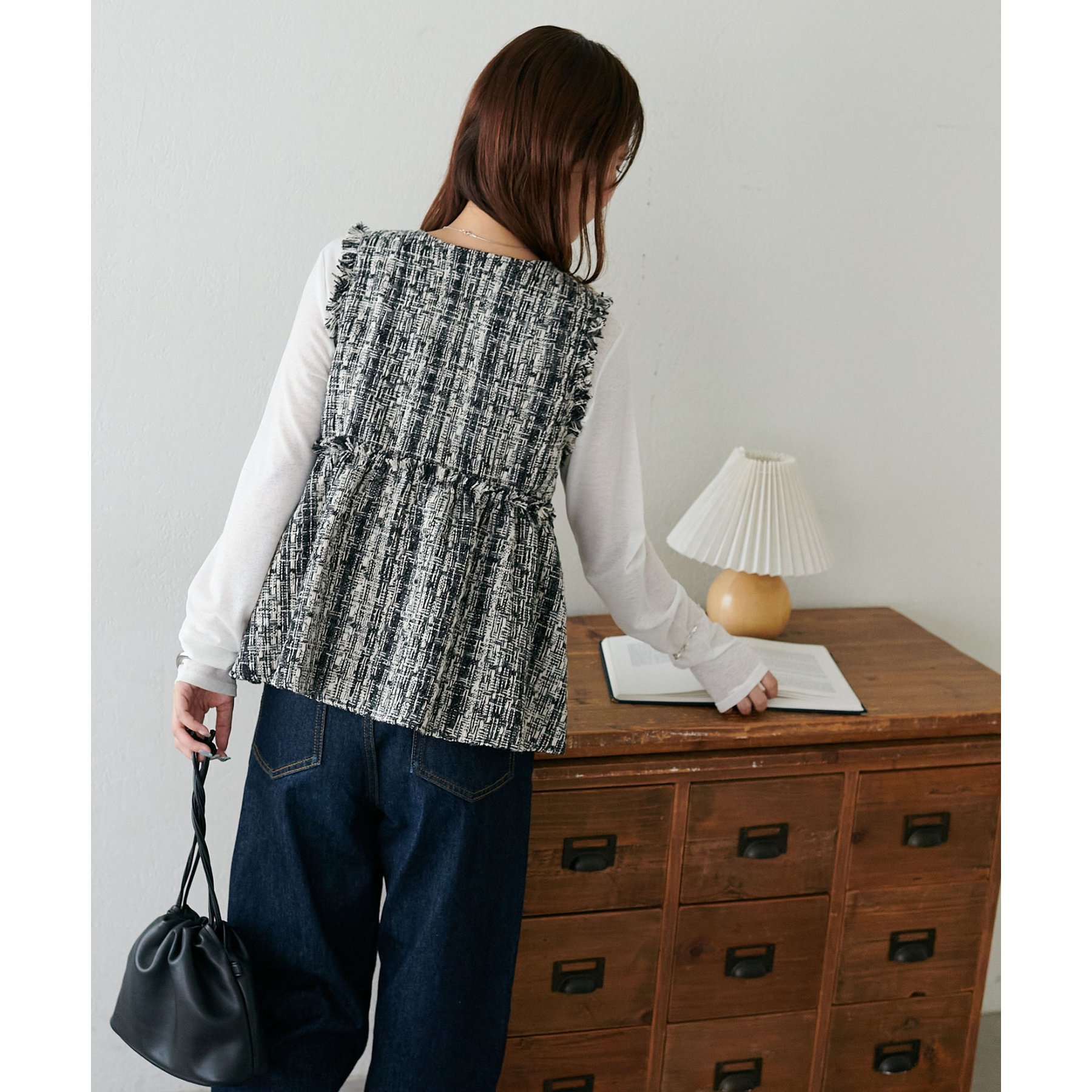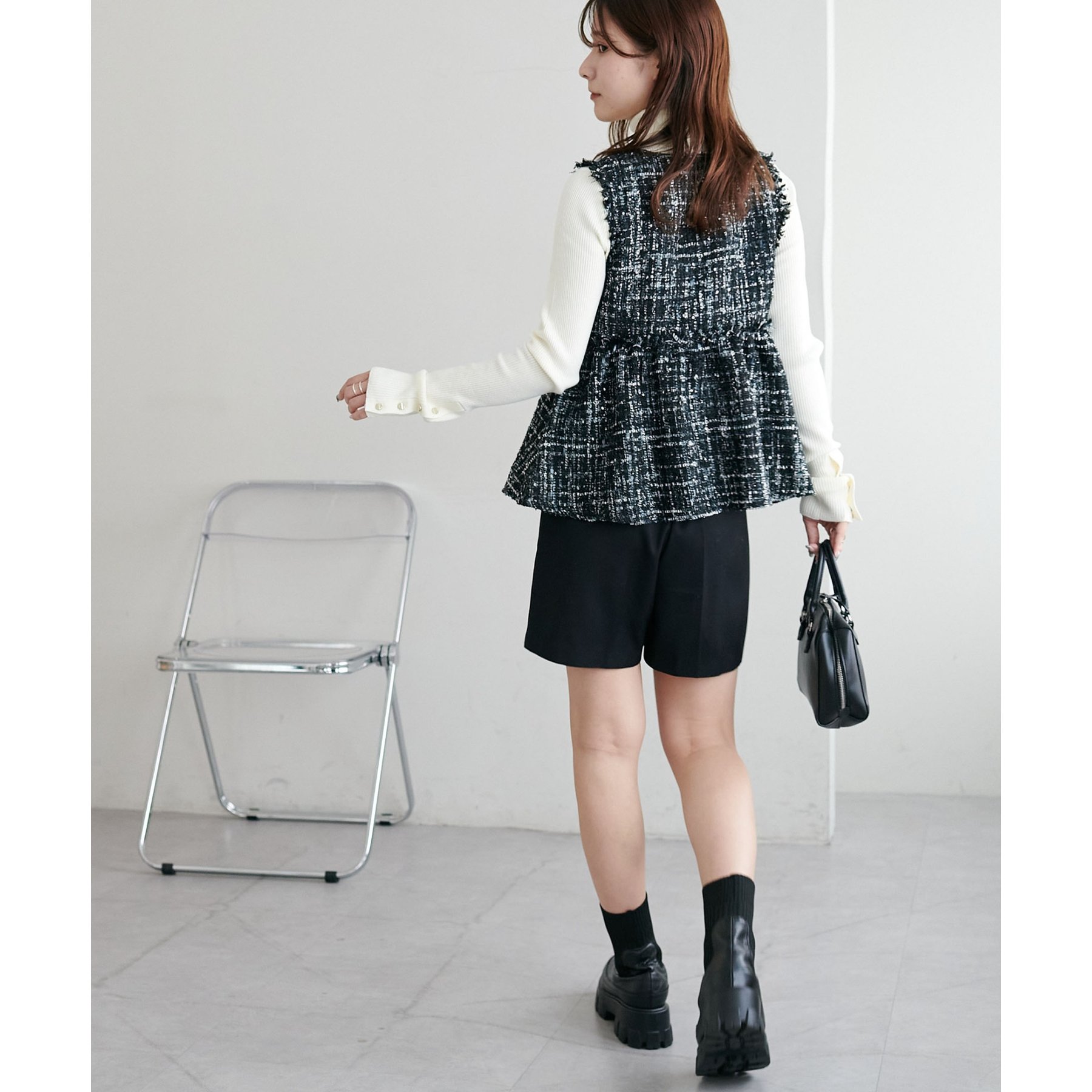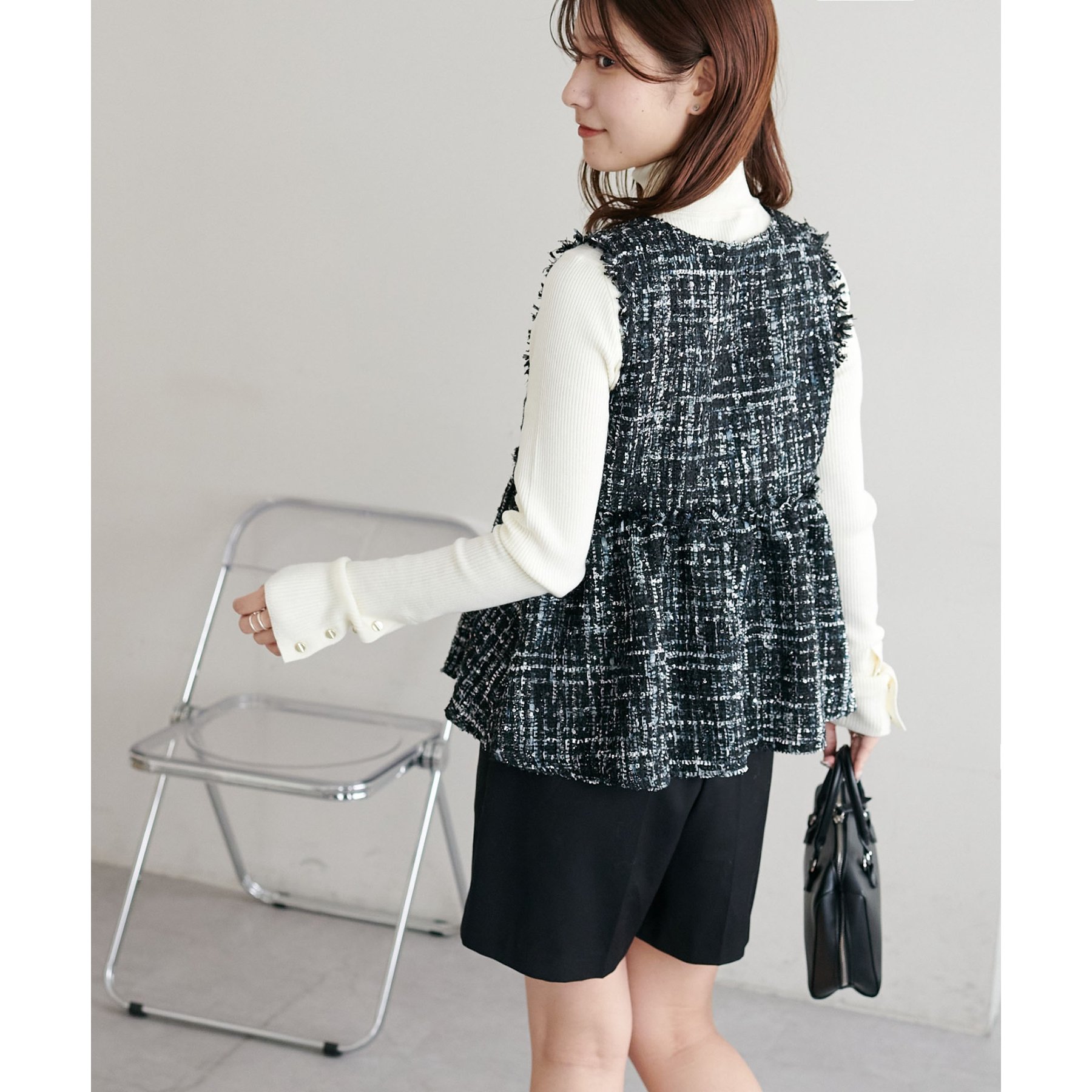 華やかツイード×ペプラムで女性らしさを引き立てる主役ベスト