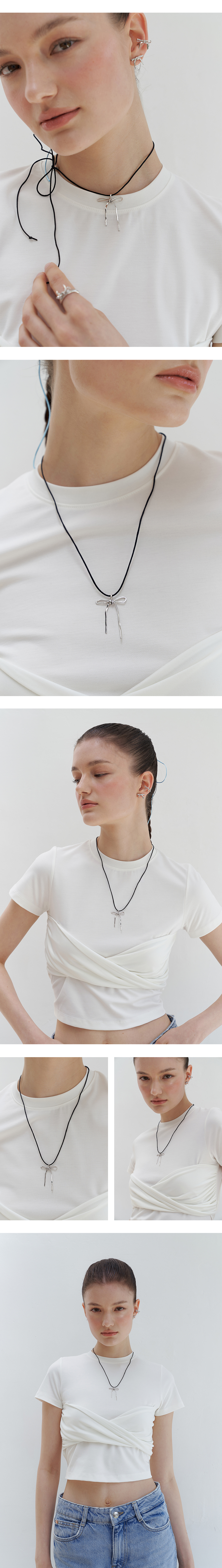 Romance Ribbon String Necklace (BLACK)