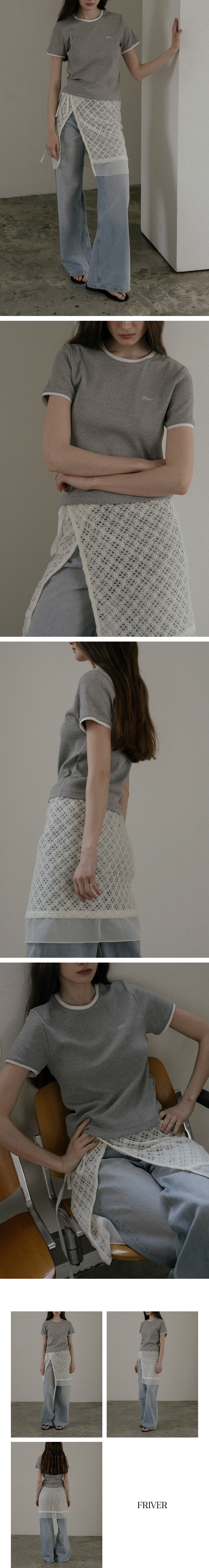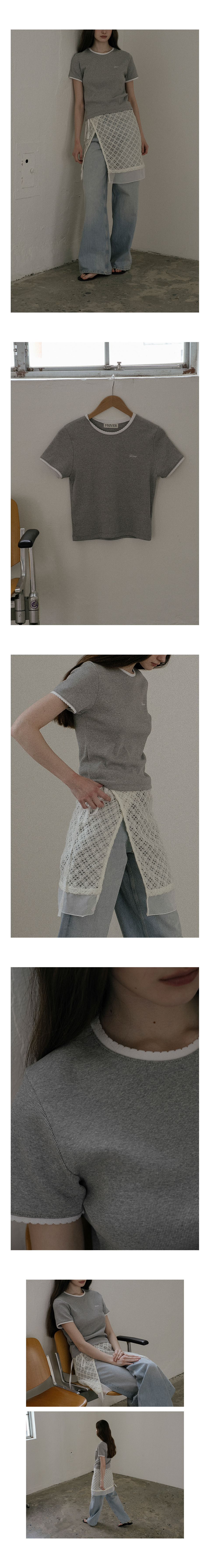 Lace trim logo t-shirt_Gray