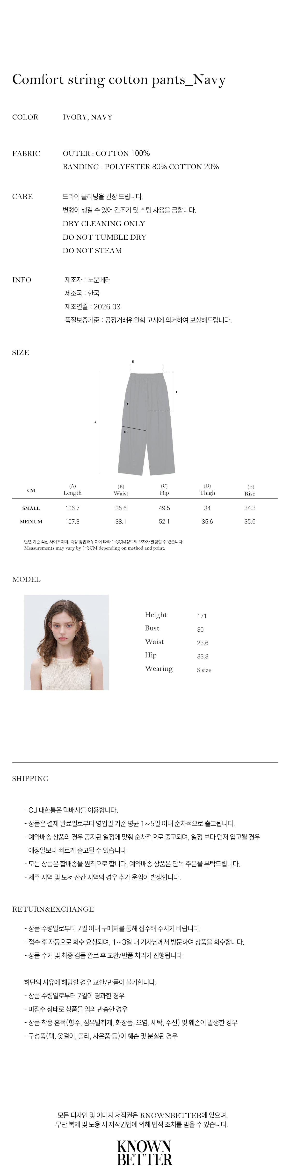 Comfort string cotton pants [KNSS06PT04]_Navy