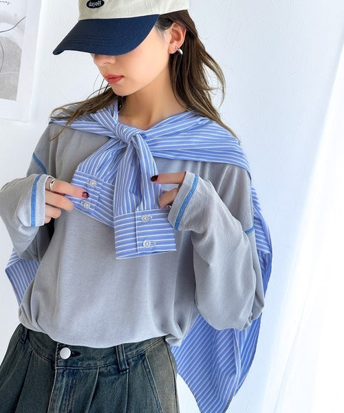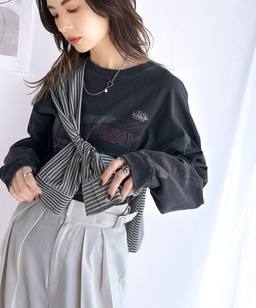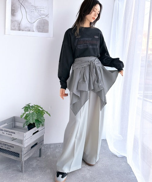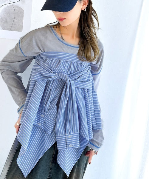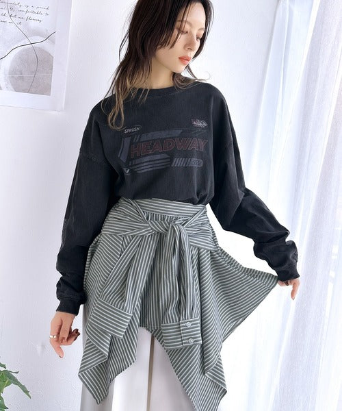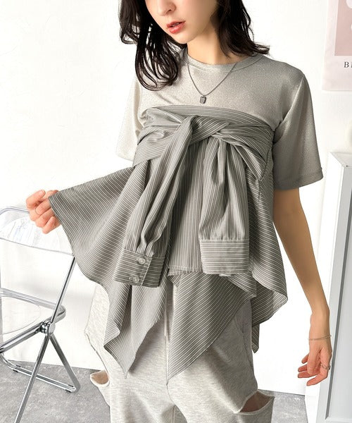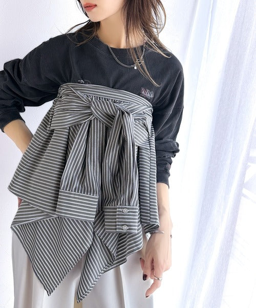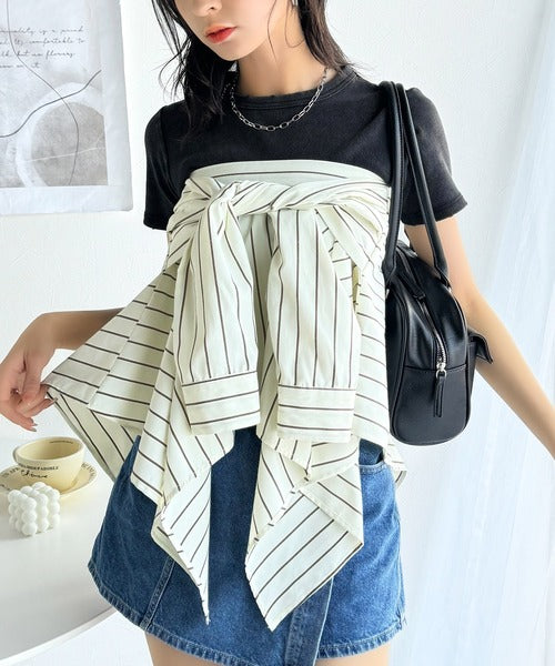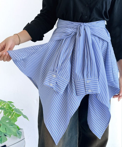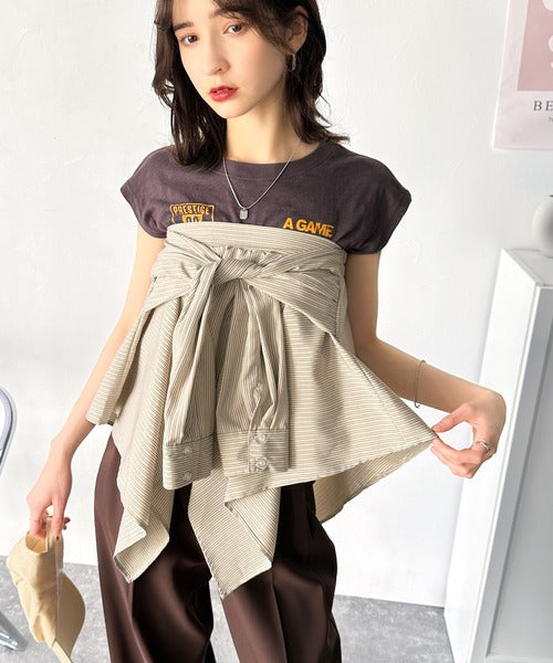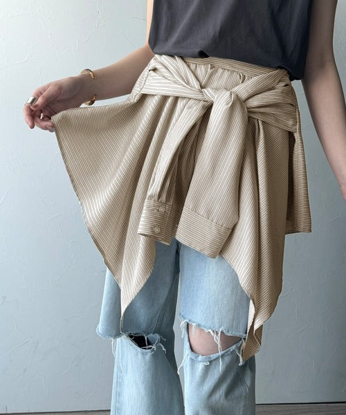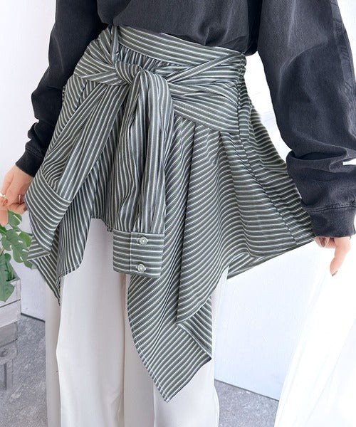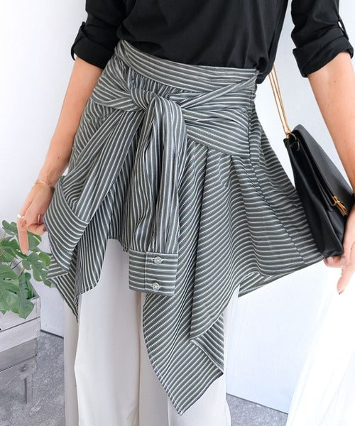 シャツを巻き付けたようなデザインが魅力のこちらのアイテムは