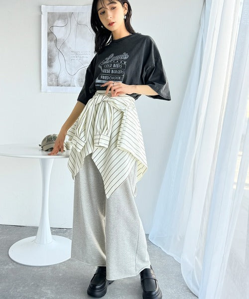 スカートとして着用するなら、シンプルなTシャツに合わせるだけで
