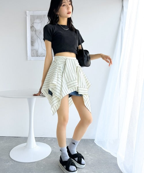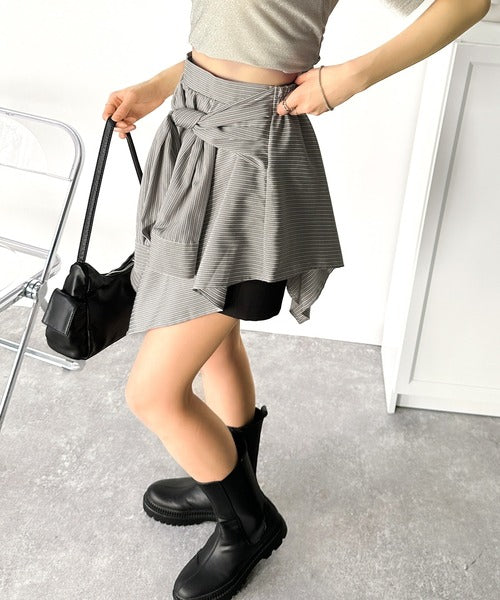 自在な着こなしで主役級の存在感。シャツ巻き風レイヤードスカート(ミニ) ce1015069