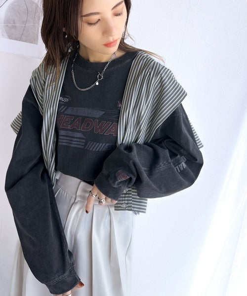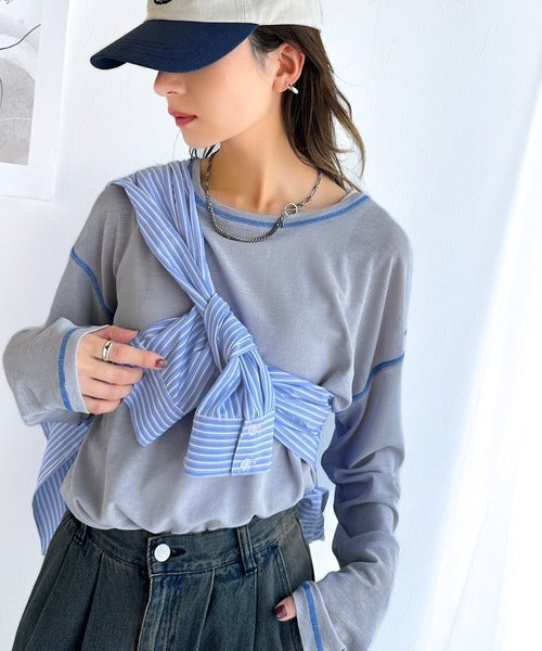 ビスチェ風に着こなすなら、シアーカットソーやロンTと合わせ、