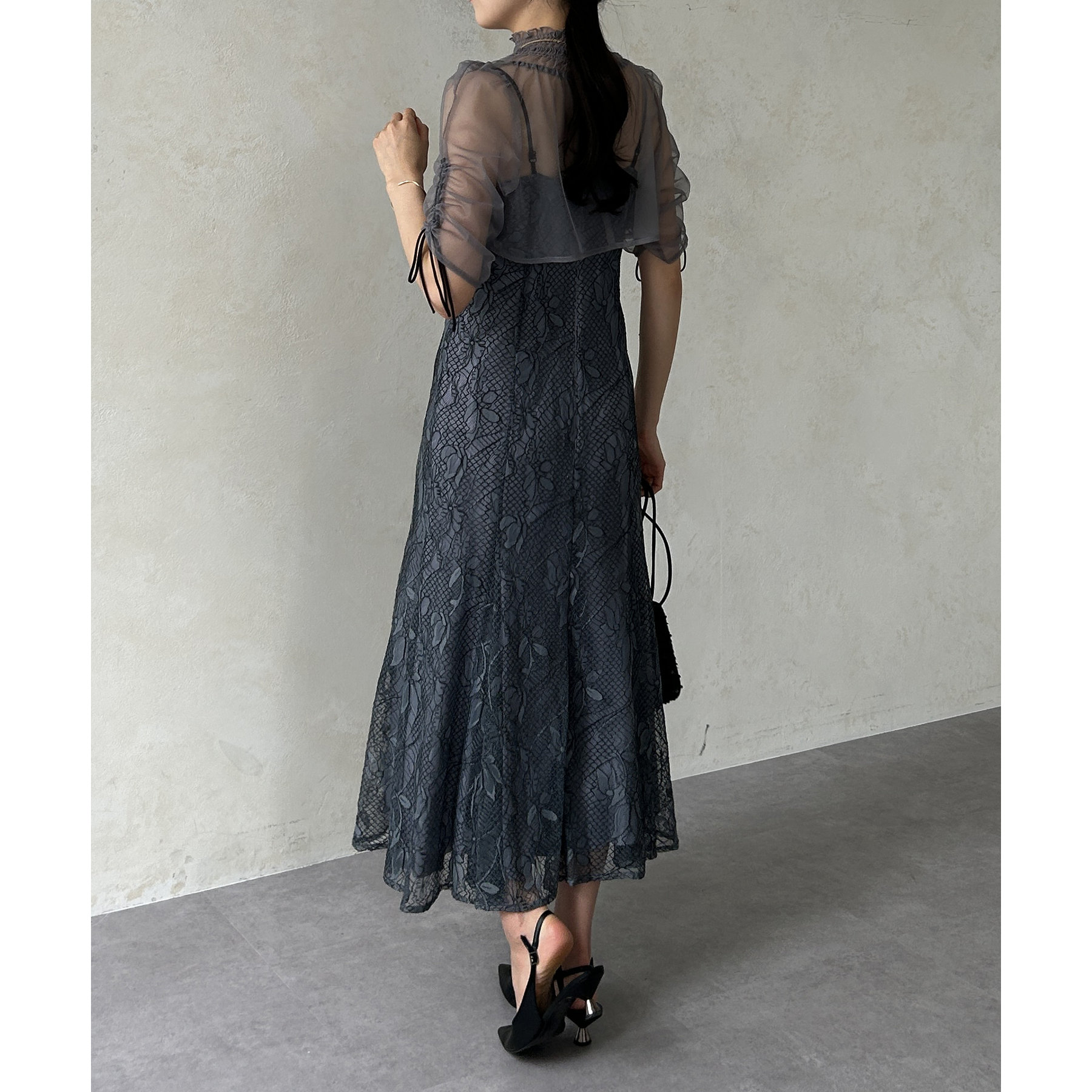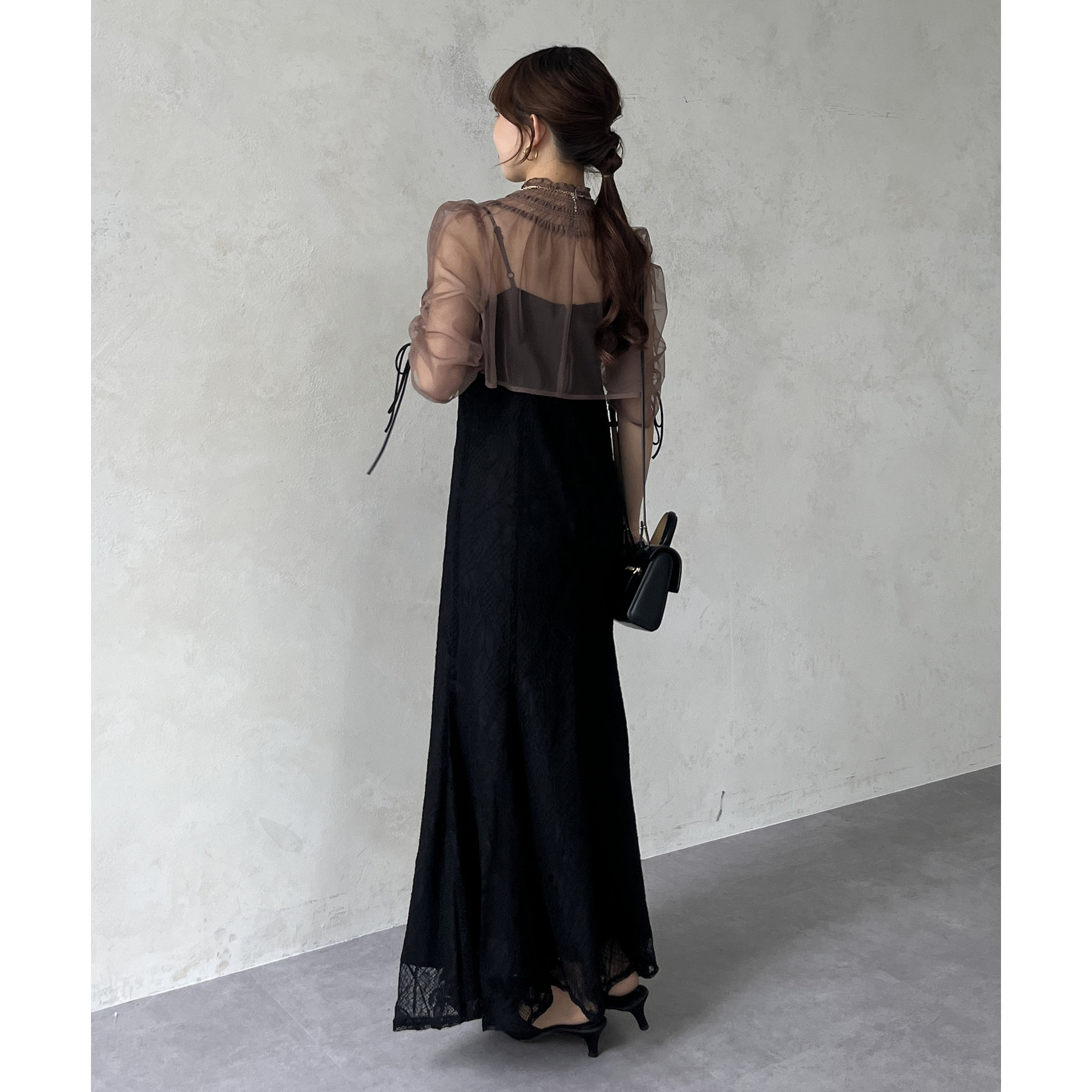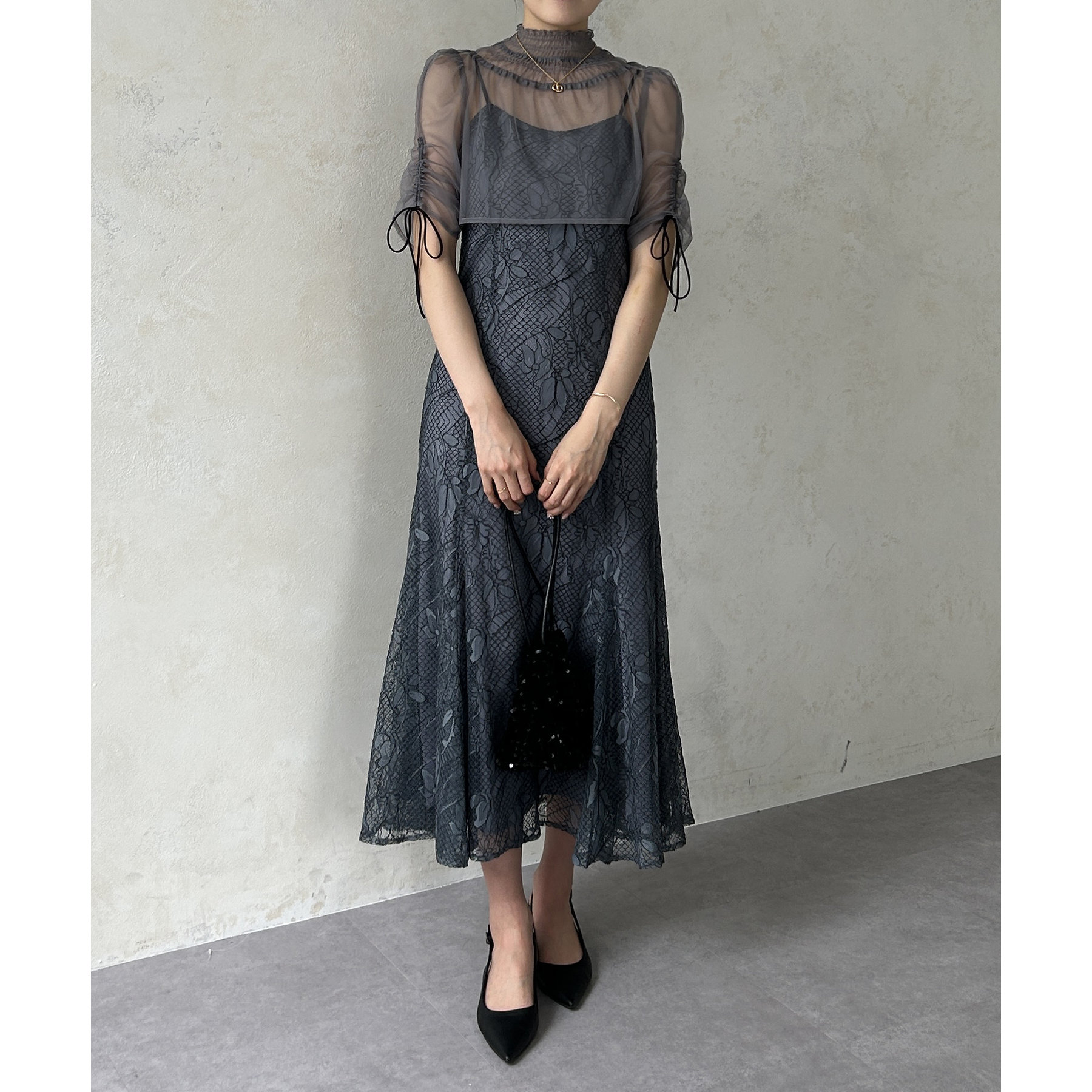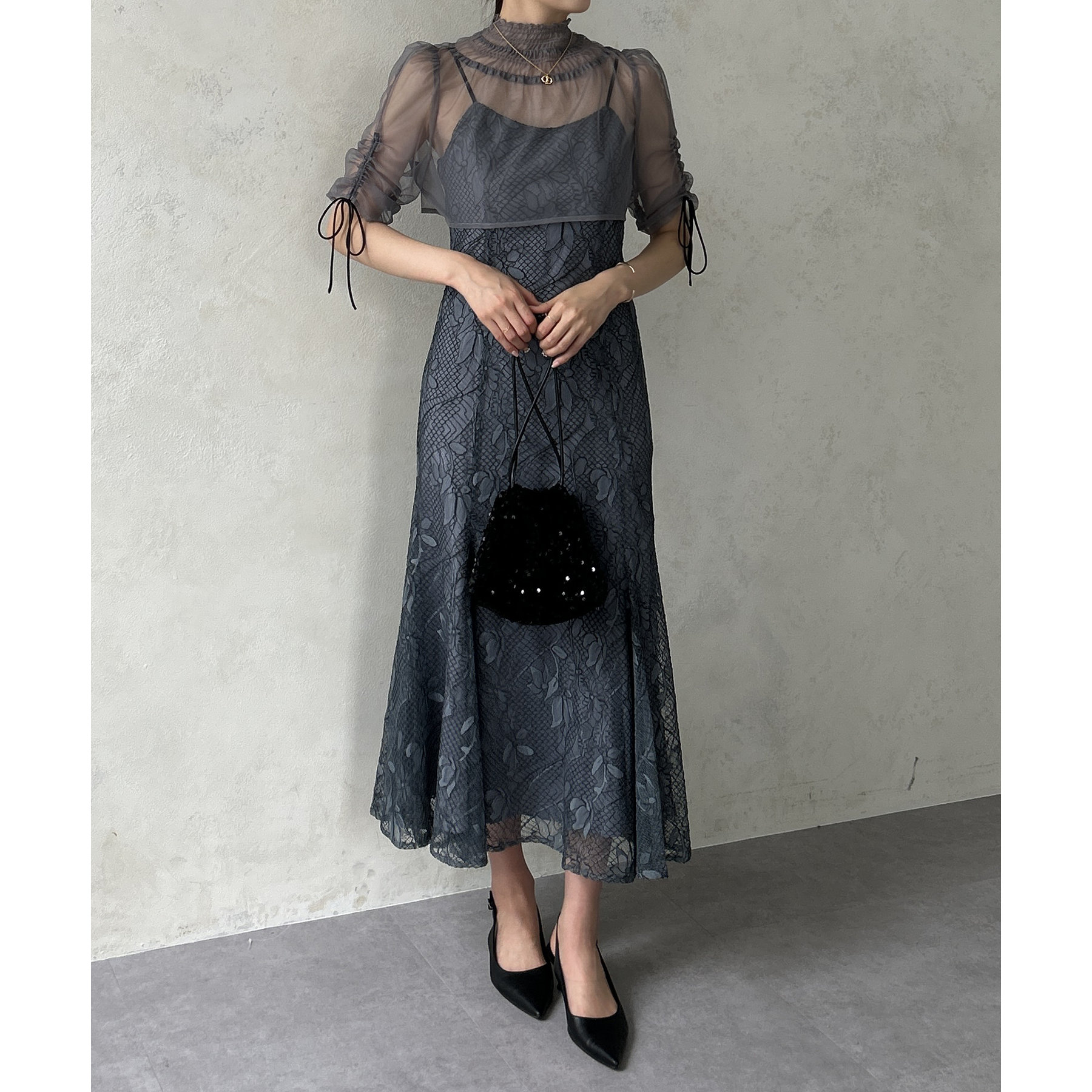 【オケージョン】シアーブラウス×フラワーレースキャミワンピース
