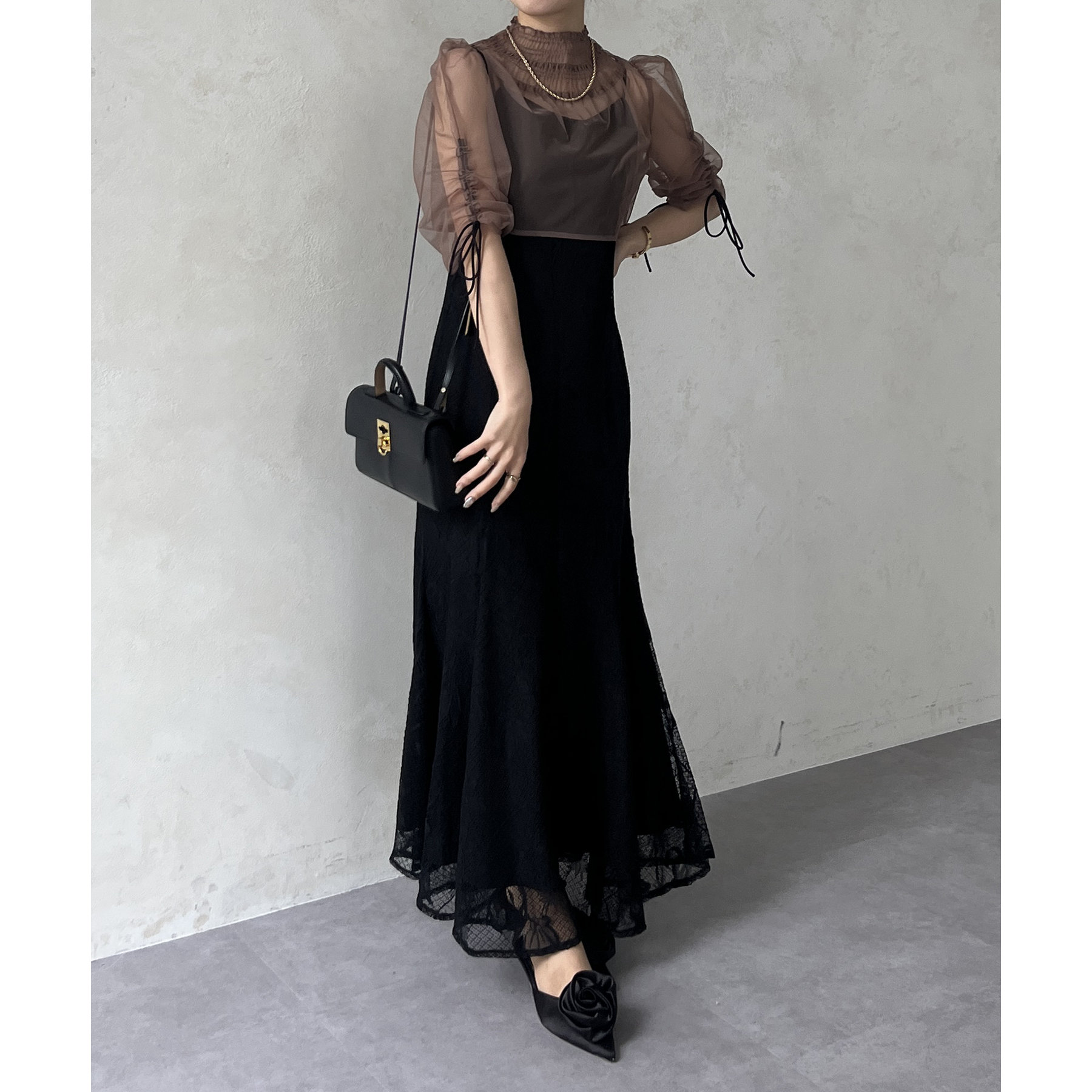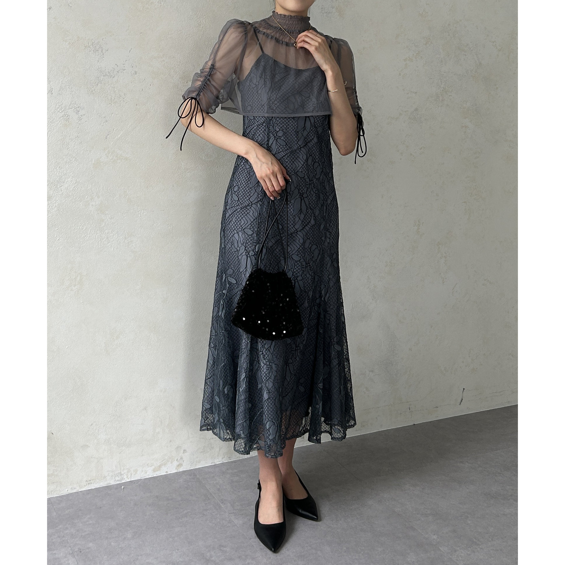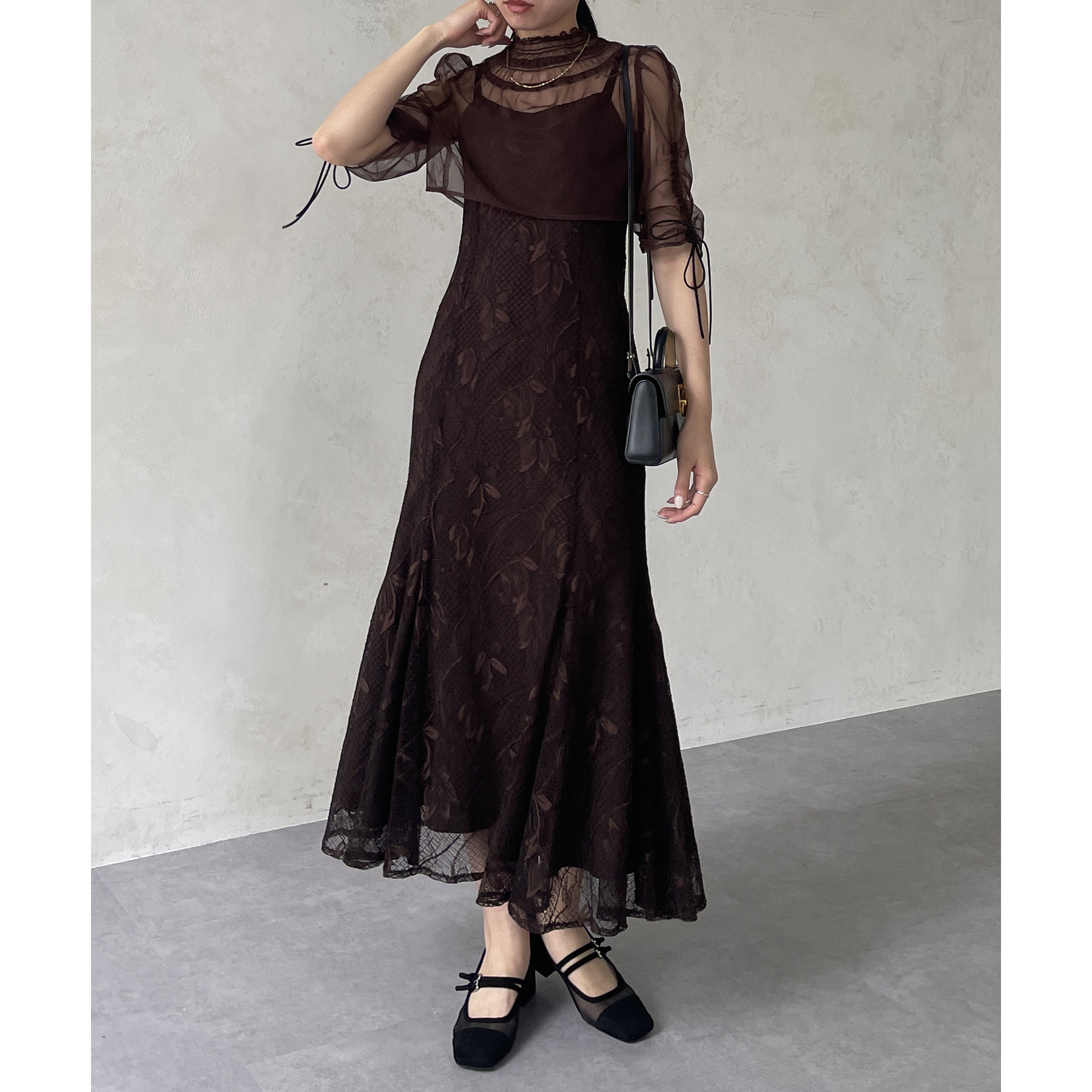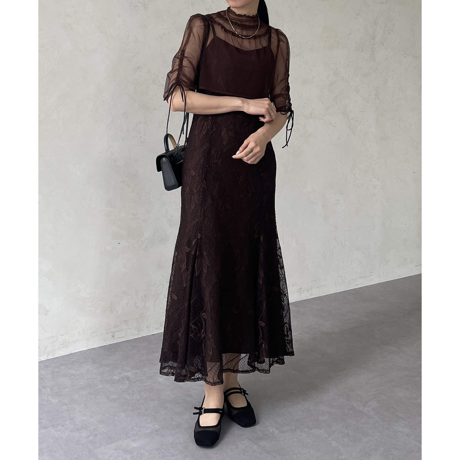 【オケージョン】シアーブラウス×フラワーレースキャミワンピース