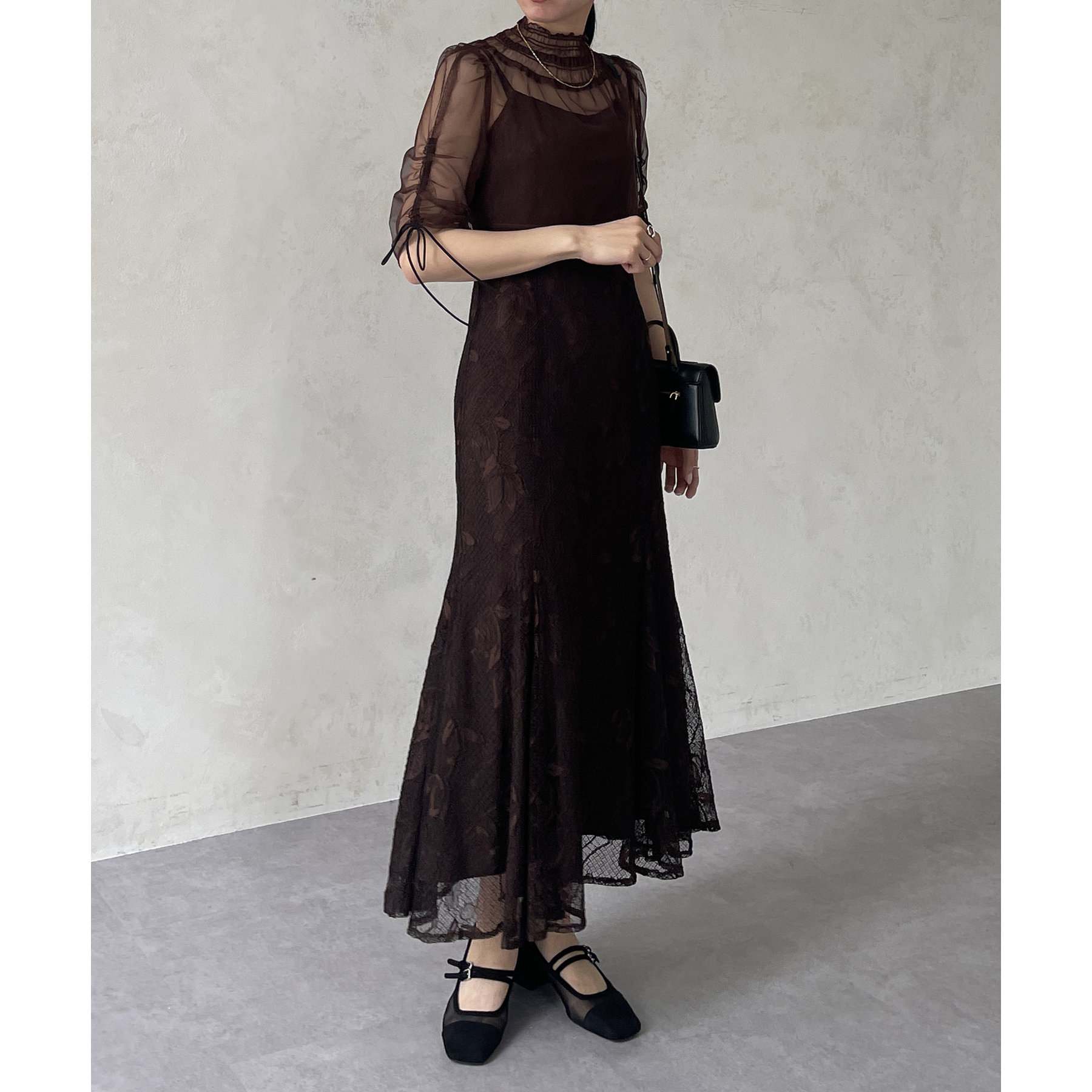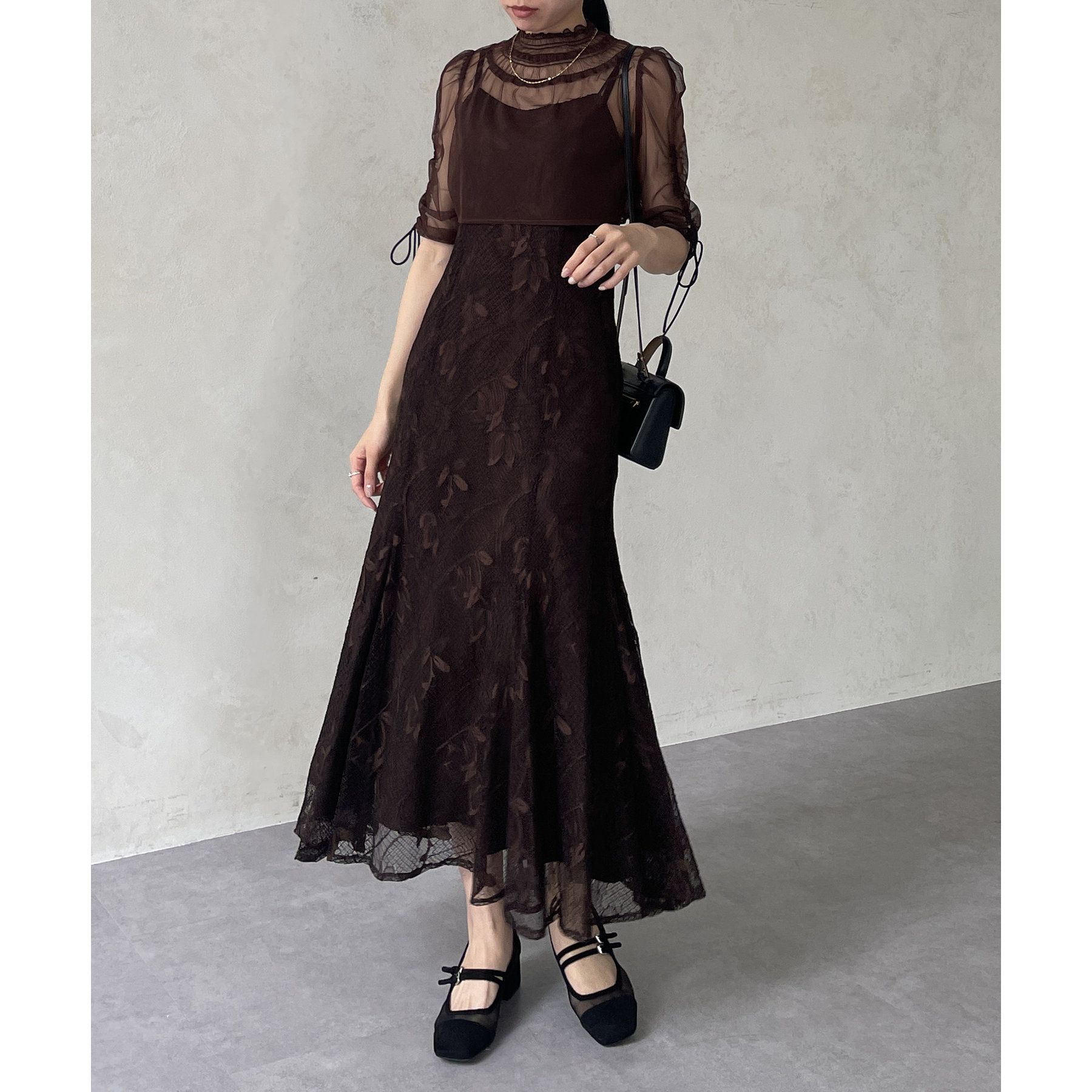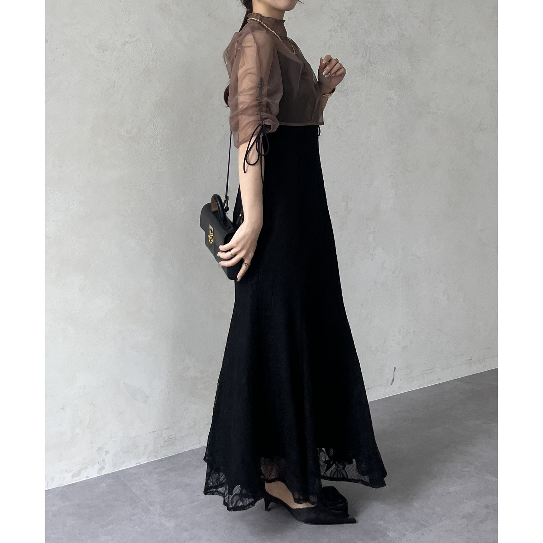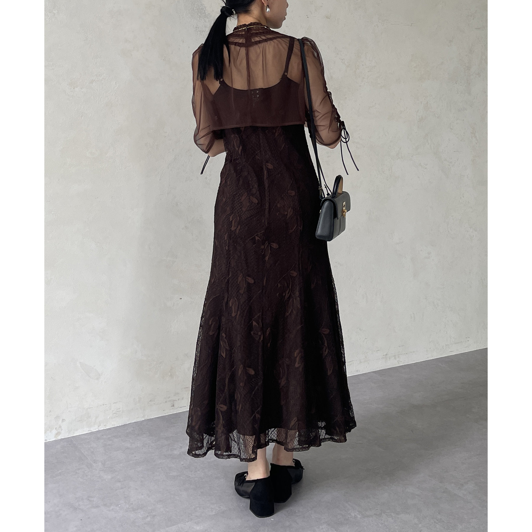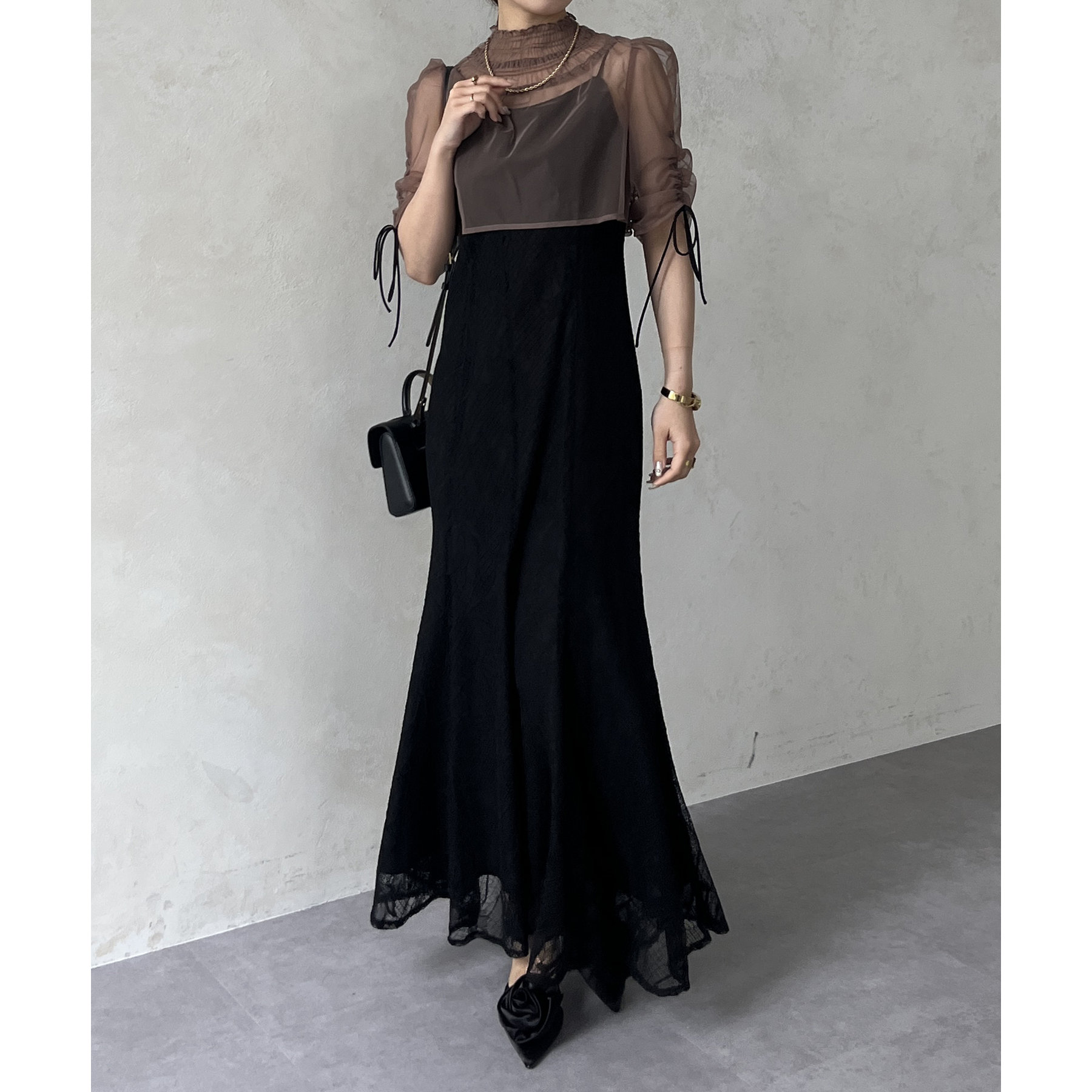 【オケージョン】シアーブラウス×フラワーレースキャミワンピース