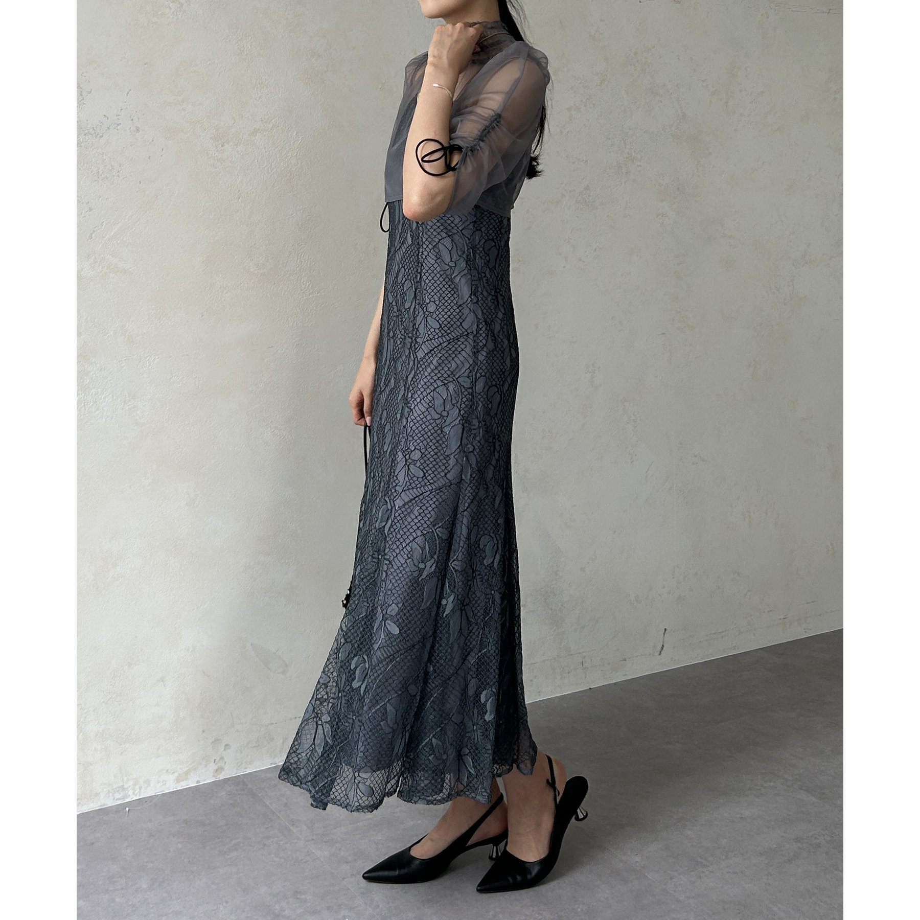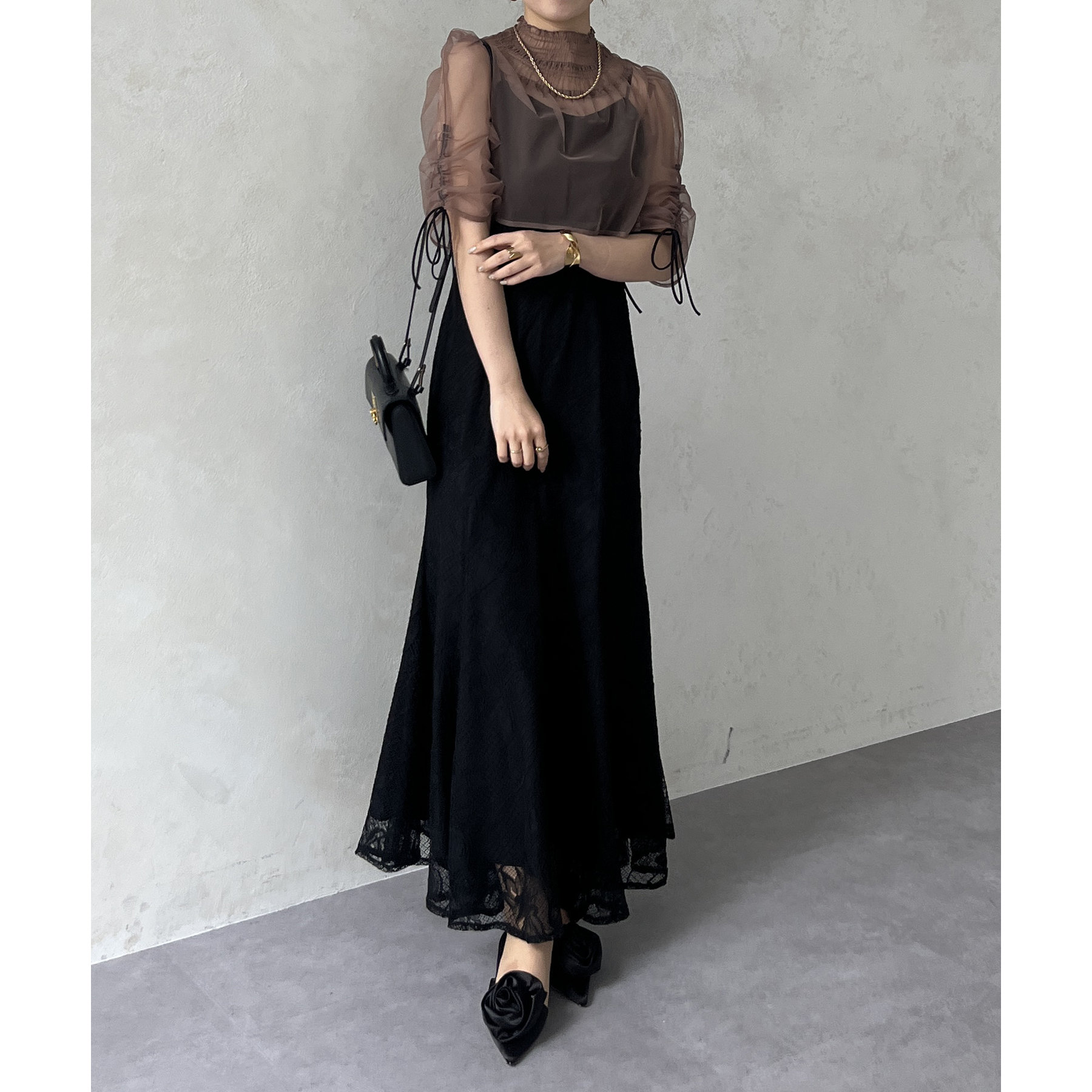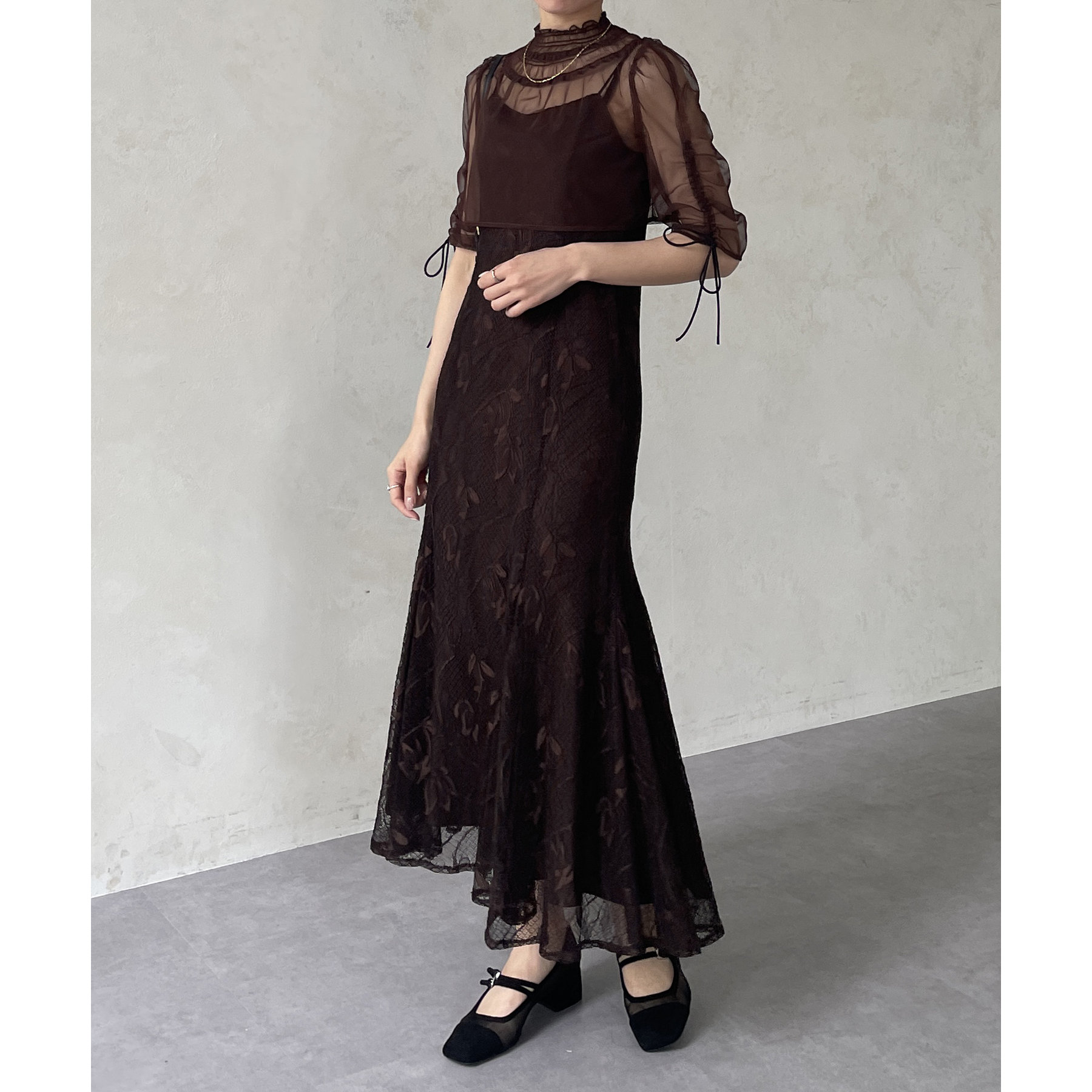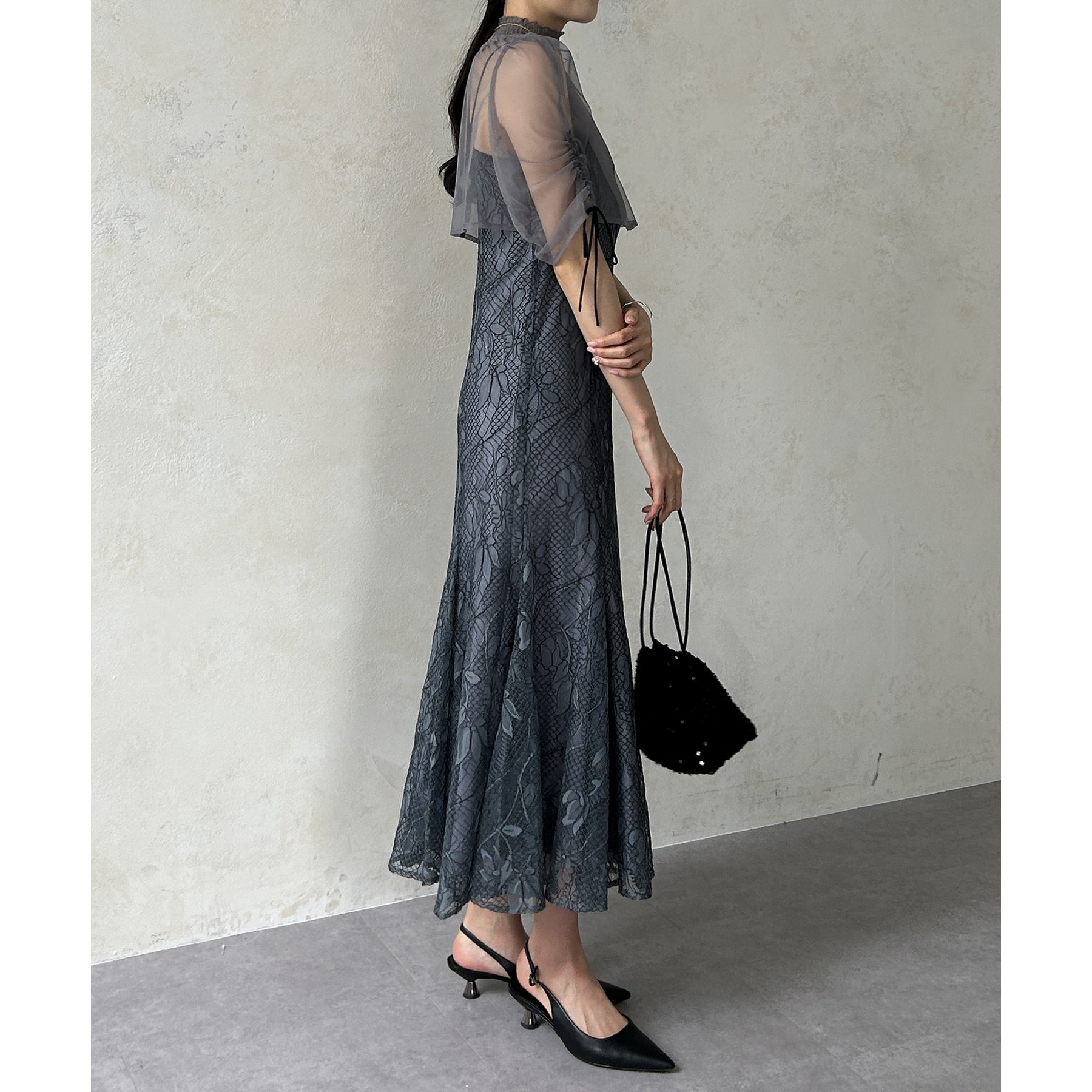 【オケージョン】シアーブラウス×フラワーレースキャミワンピース