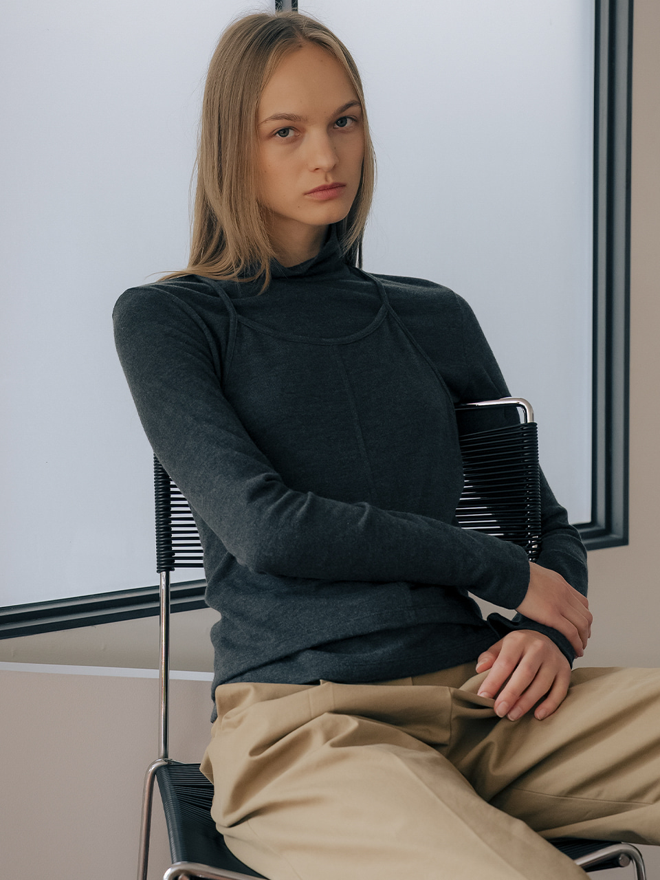 2way angora blended turtle neck SET TIWT01LT02_Charcoal