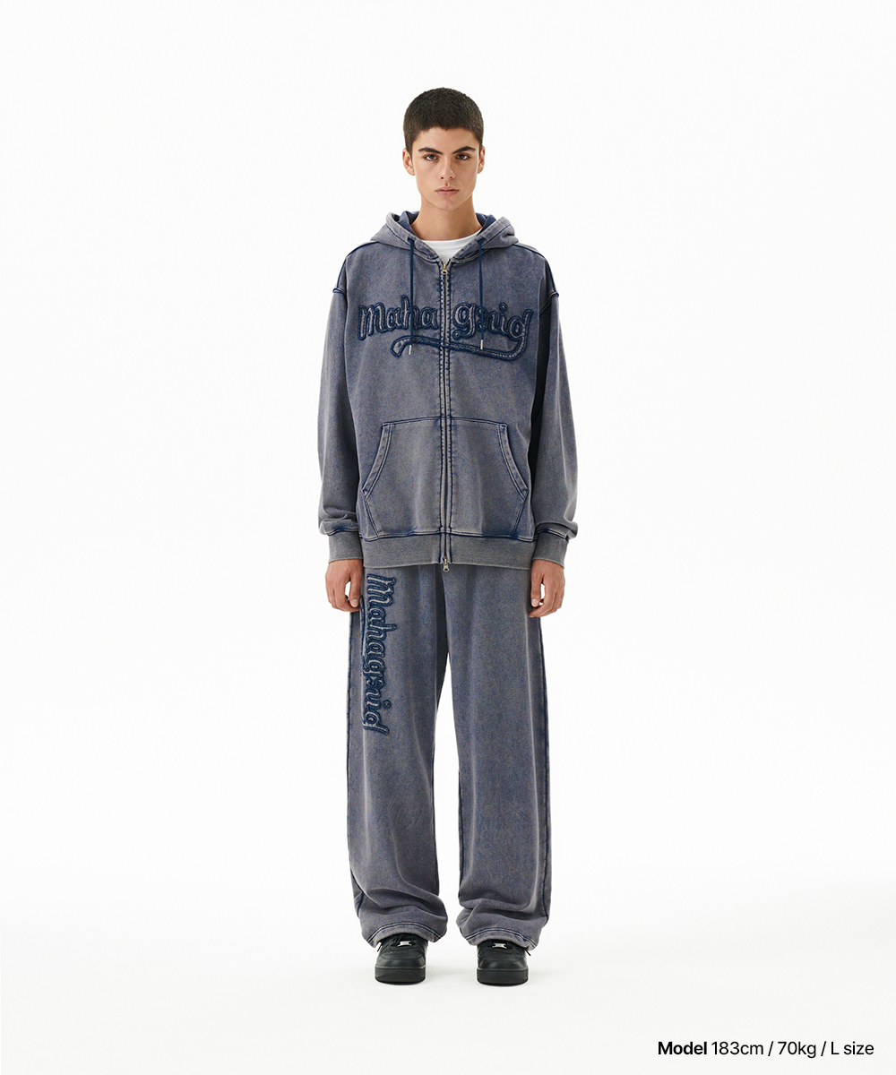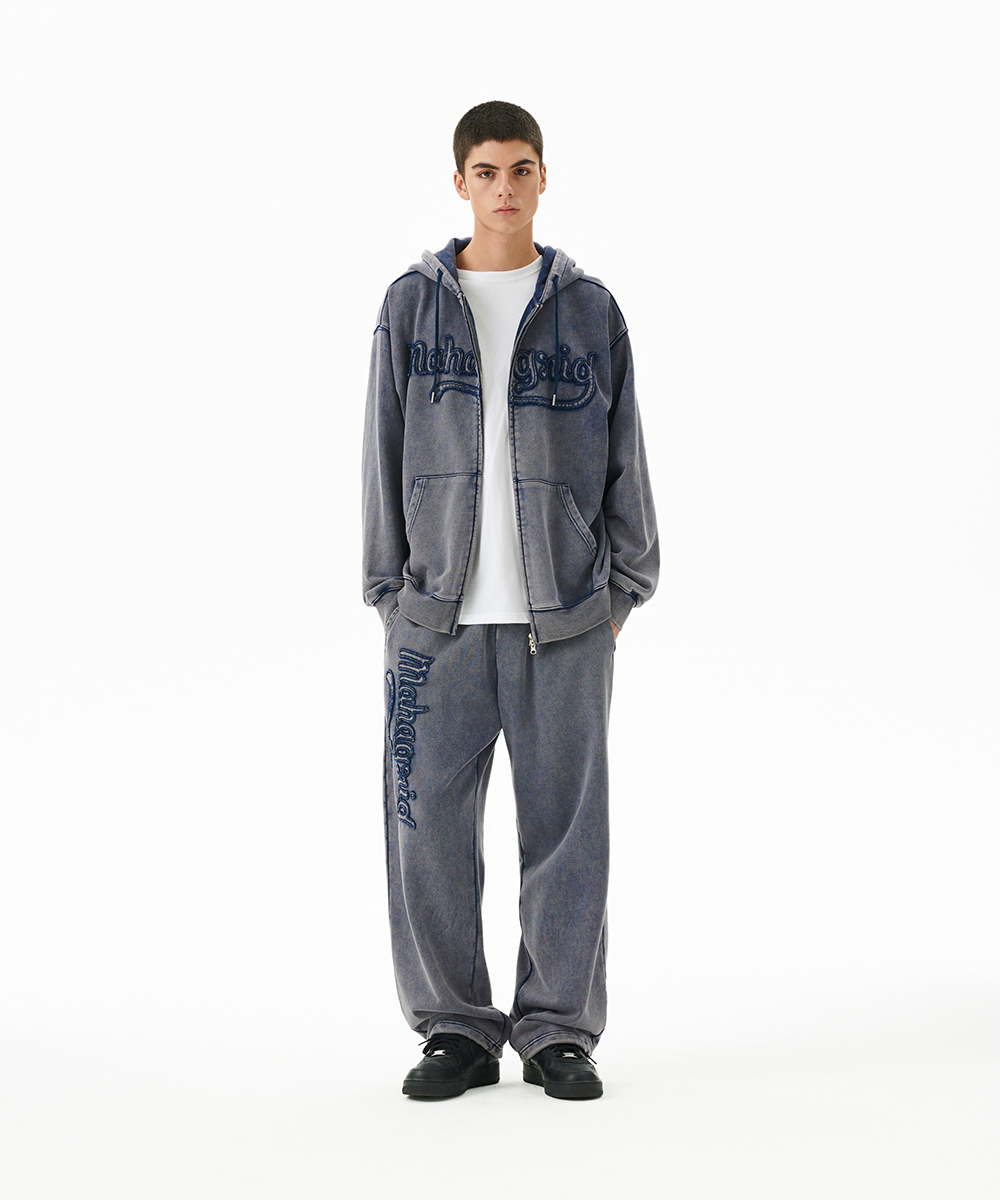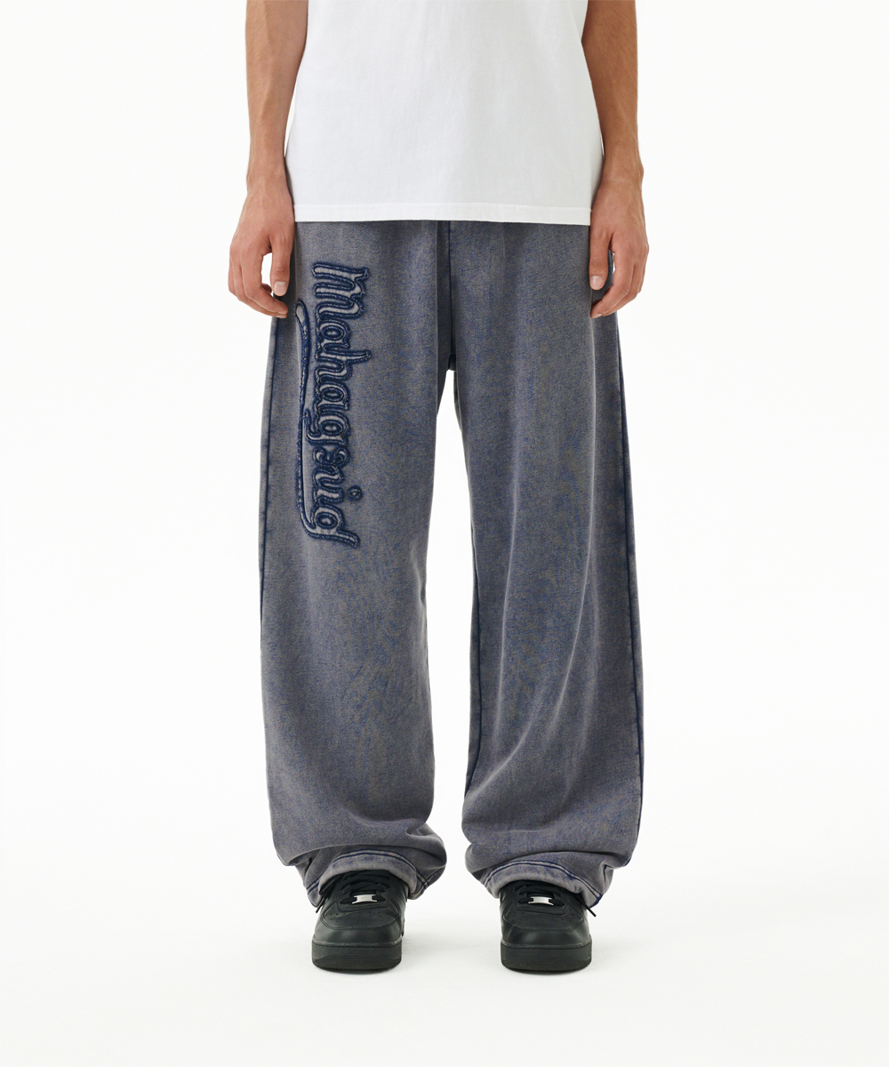 WASHED CUT OFF APPLIQUE SWEAT PANT[NAVY]