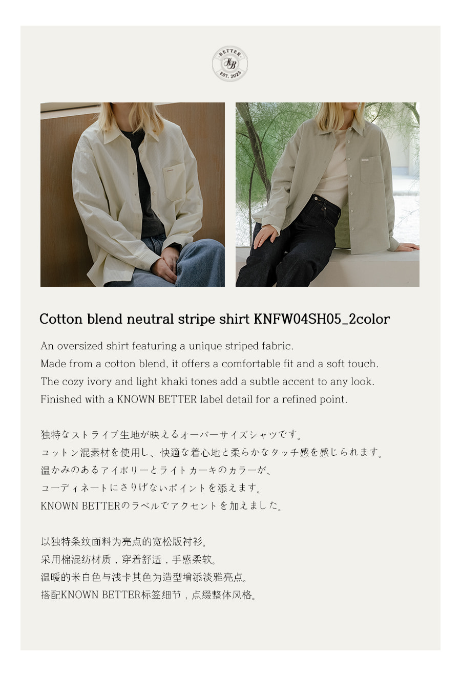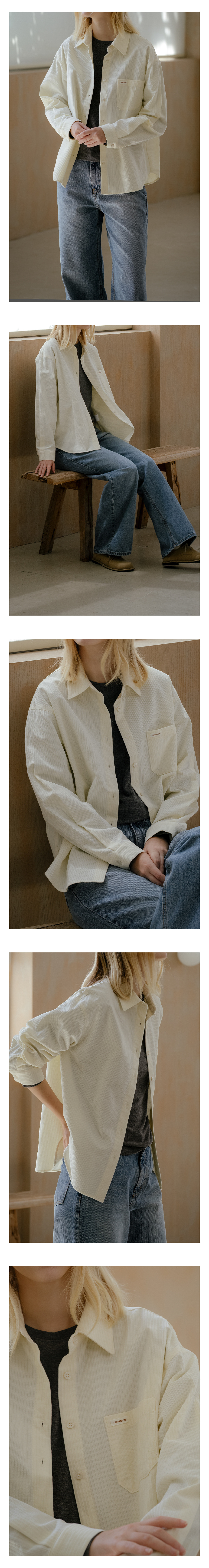 Cotton blend neutral stripe shirt [KNFW04SH03]_[2color]
