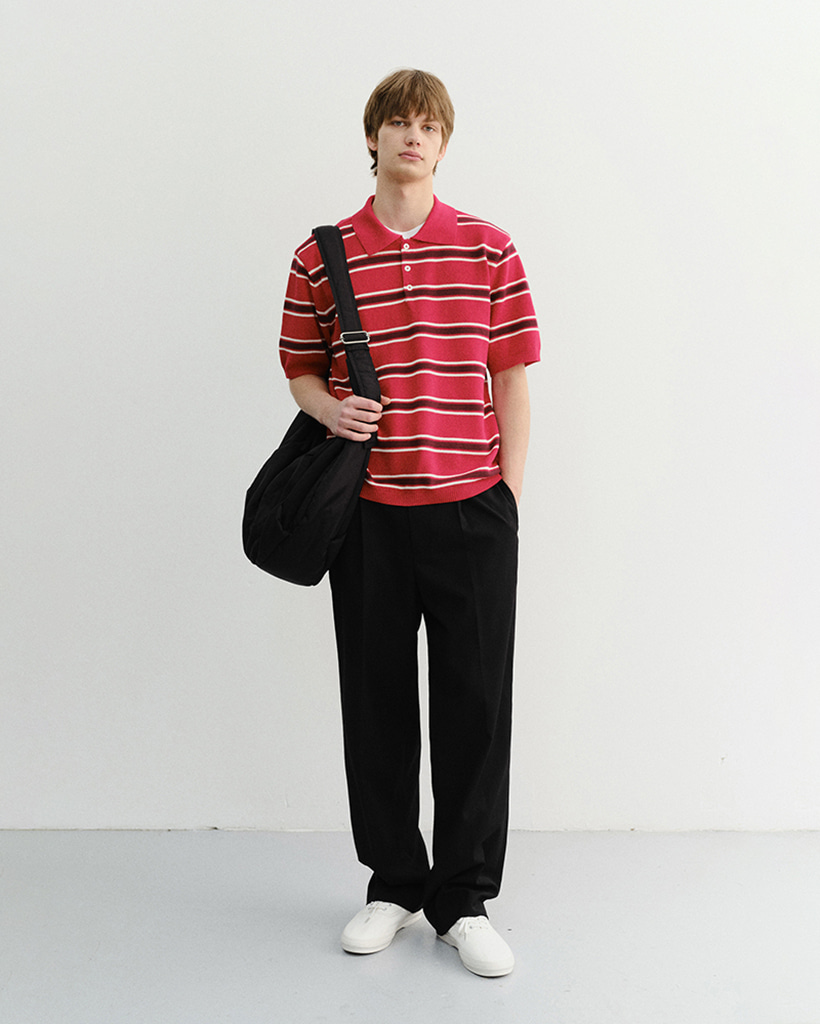 UNISEX MULTI STRIPED POLO KNIT RED BURGUNDY_M_UDSW6B122R2