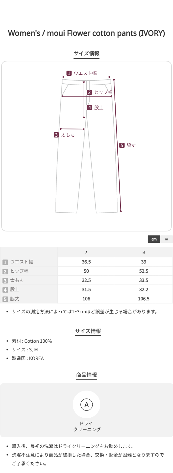 moui Flower cotton pants (IVORY)