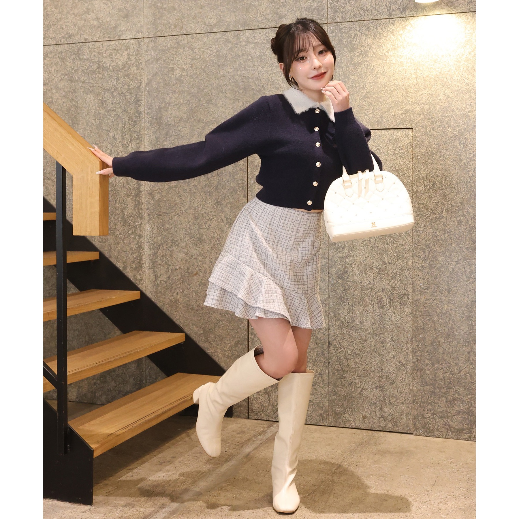 タイトスカートやスリムパンツと合わせて大人ガーリーに