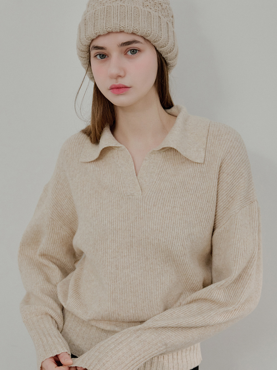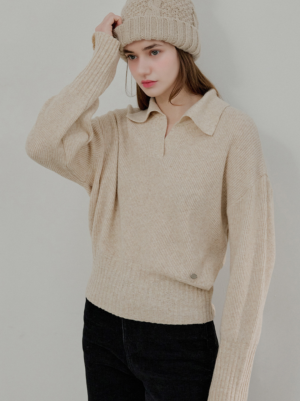 Rib collar knit_4 Colors