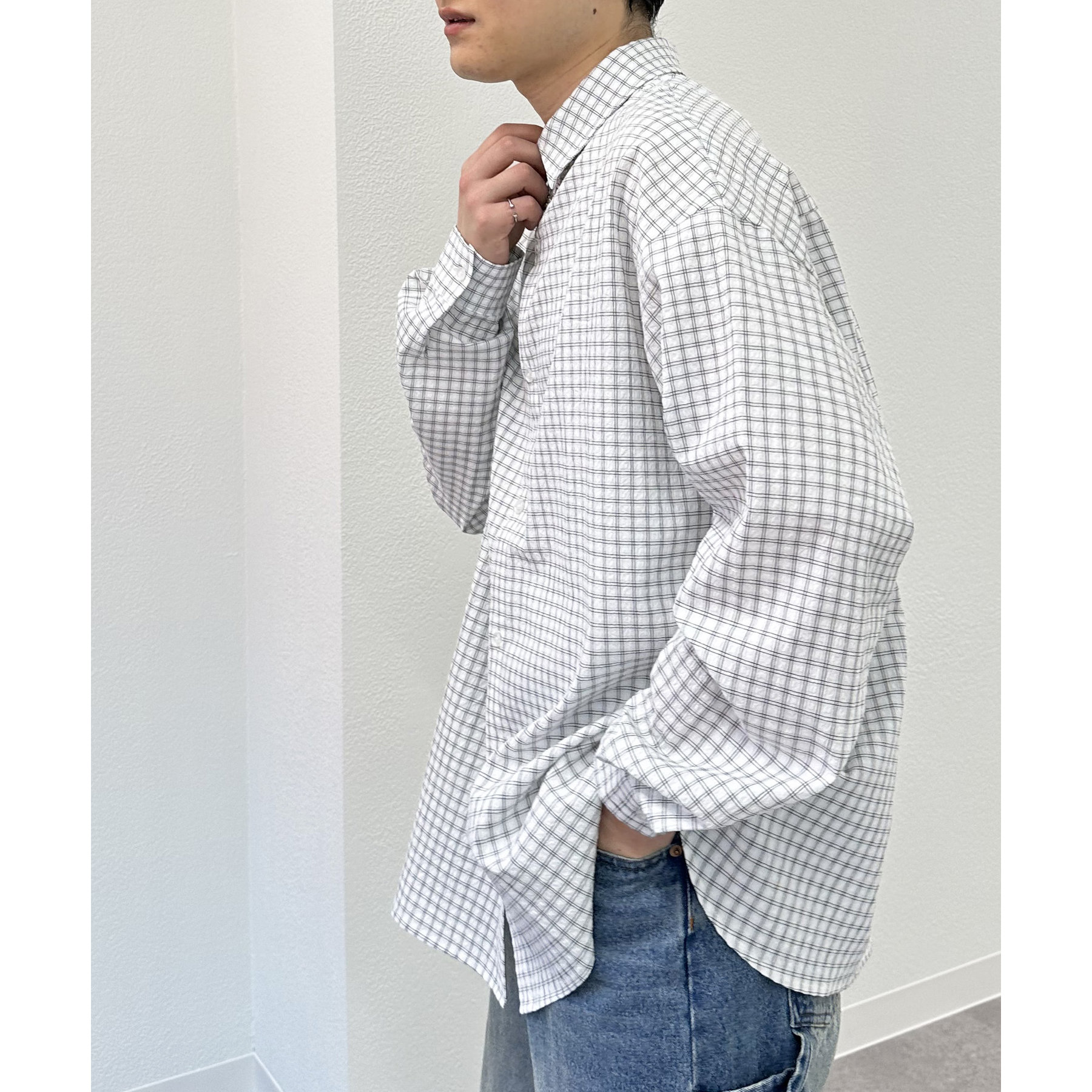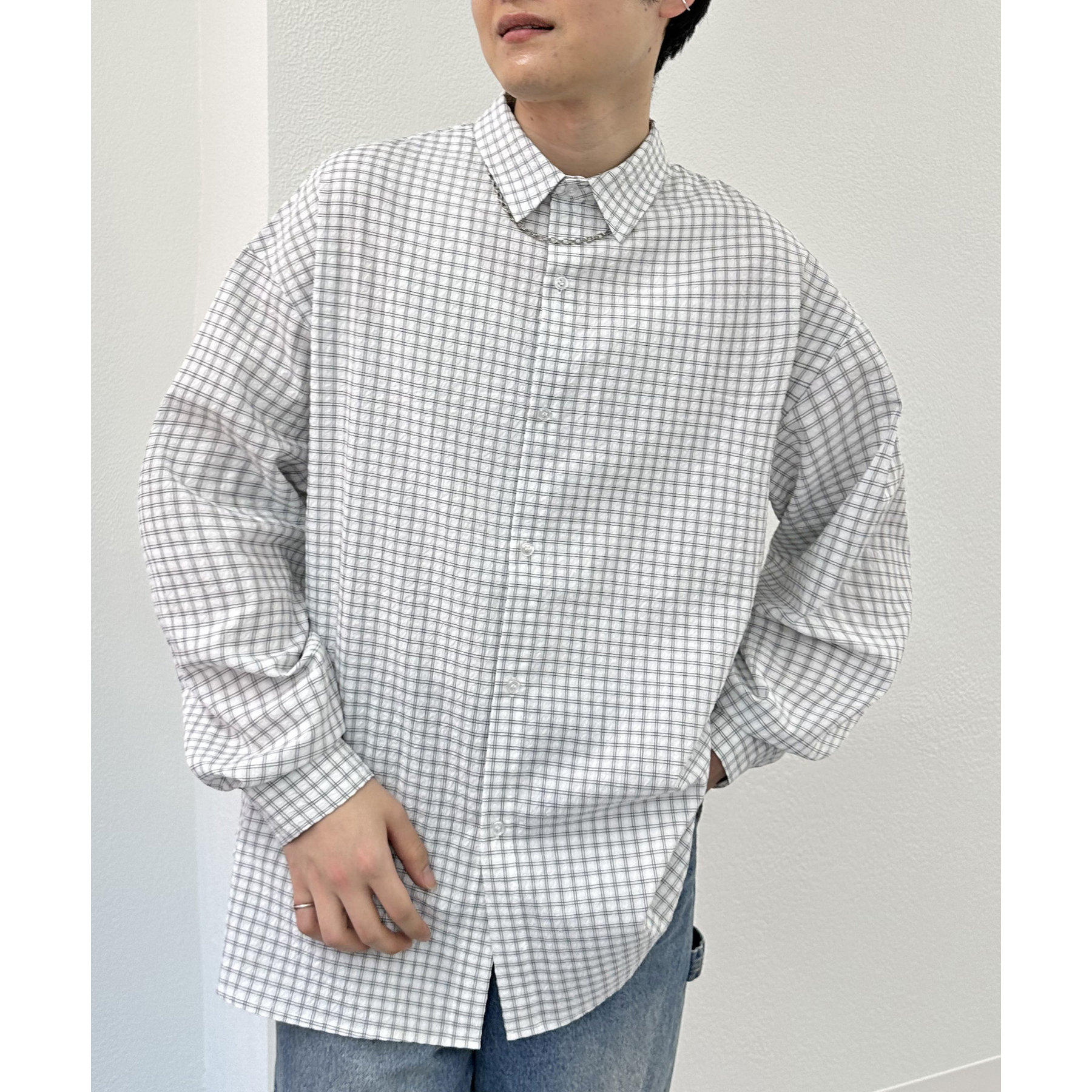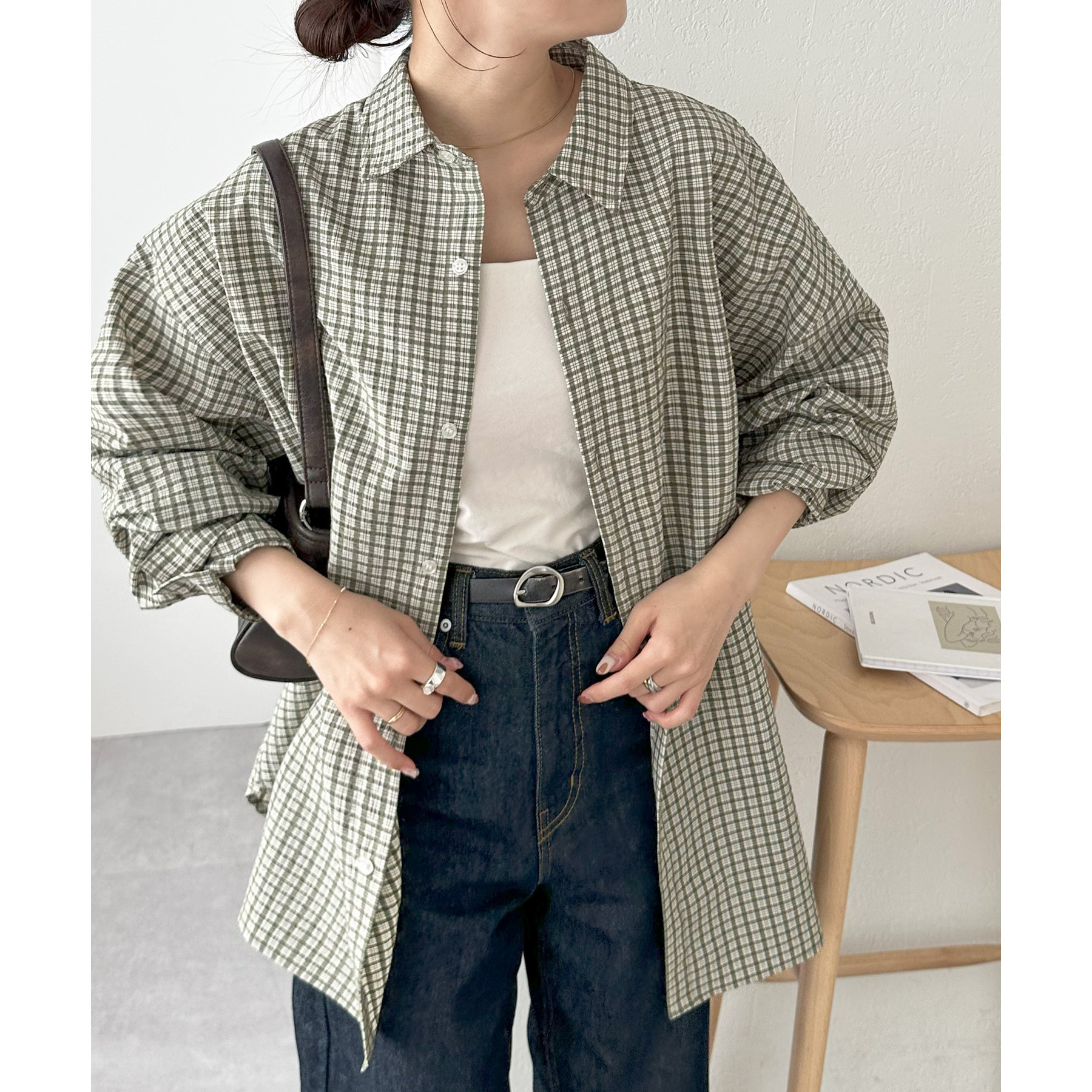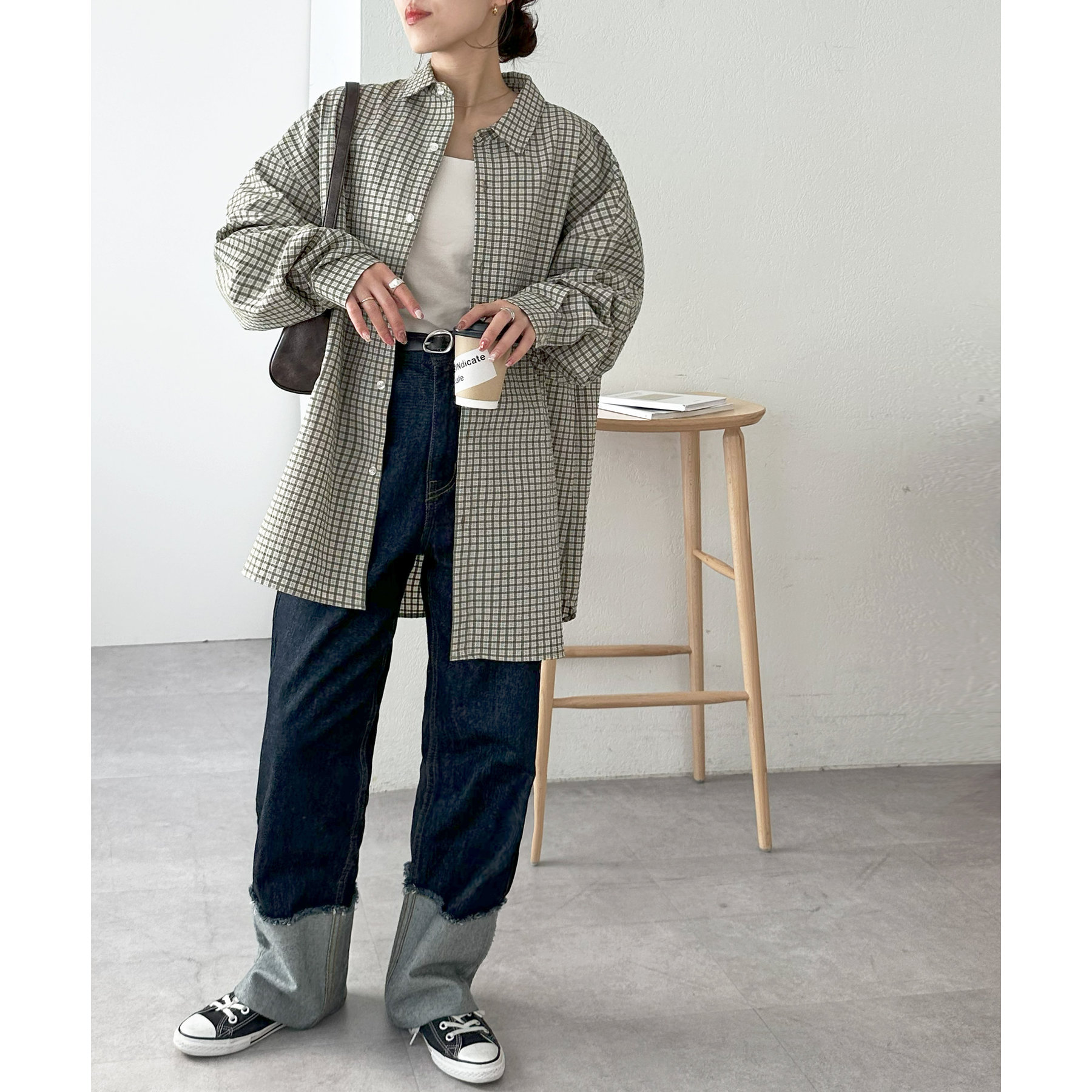 コーディネートに取り入れやすい細めのチェックチェック柄シャツは1枚でボトムスと合わせるのはもちろん、スウェットやベストとレイヤードして柄をチラ見せしていただくのもおすすめ♪