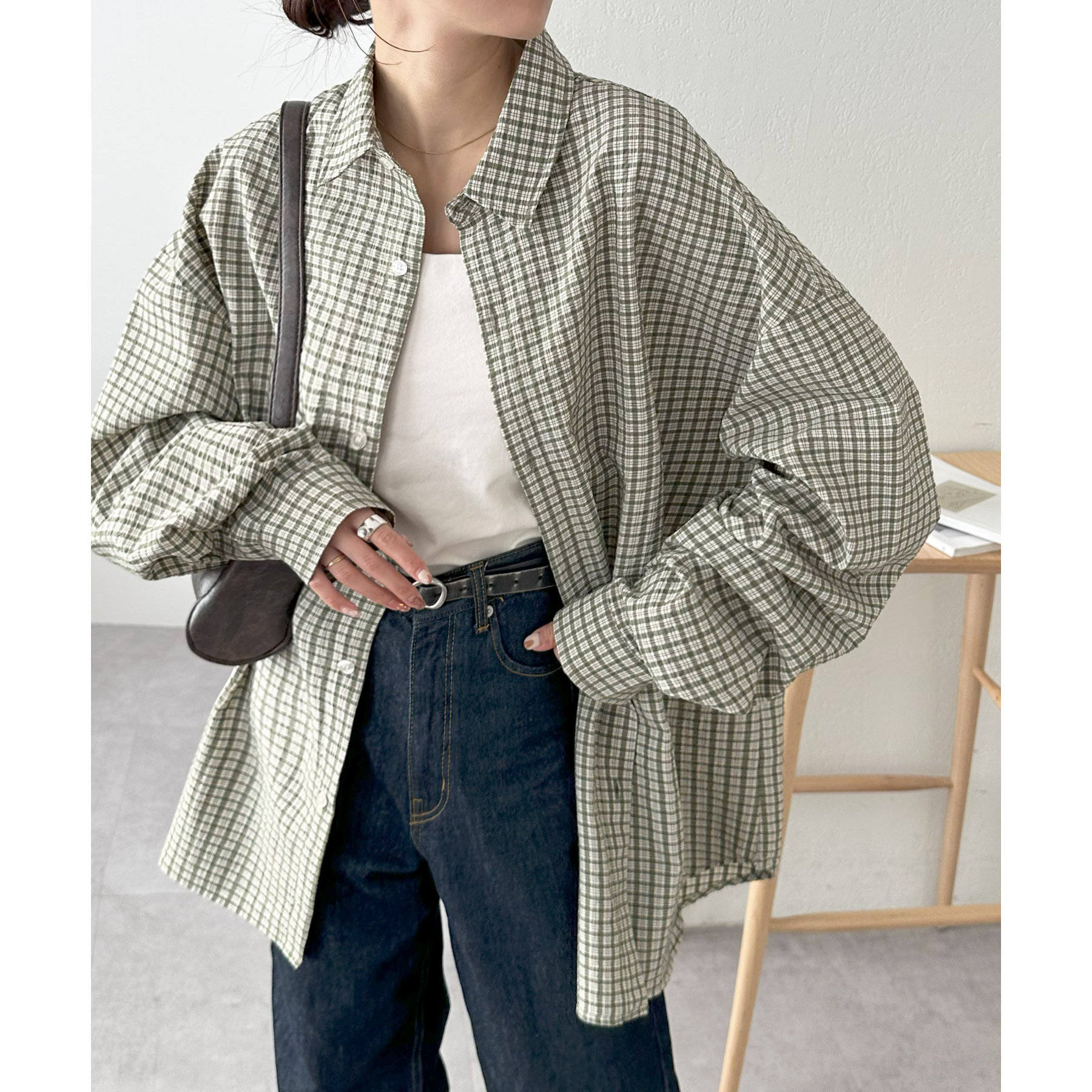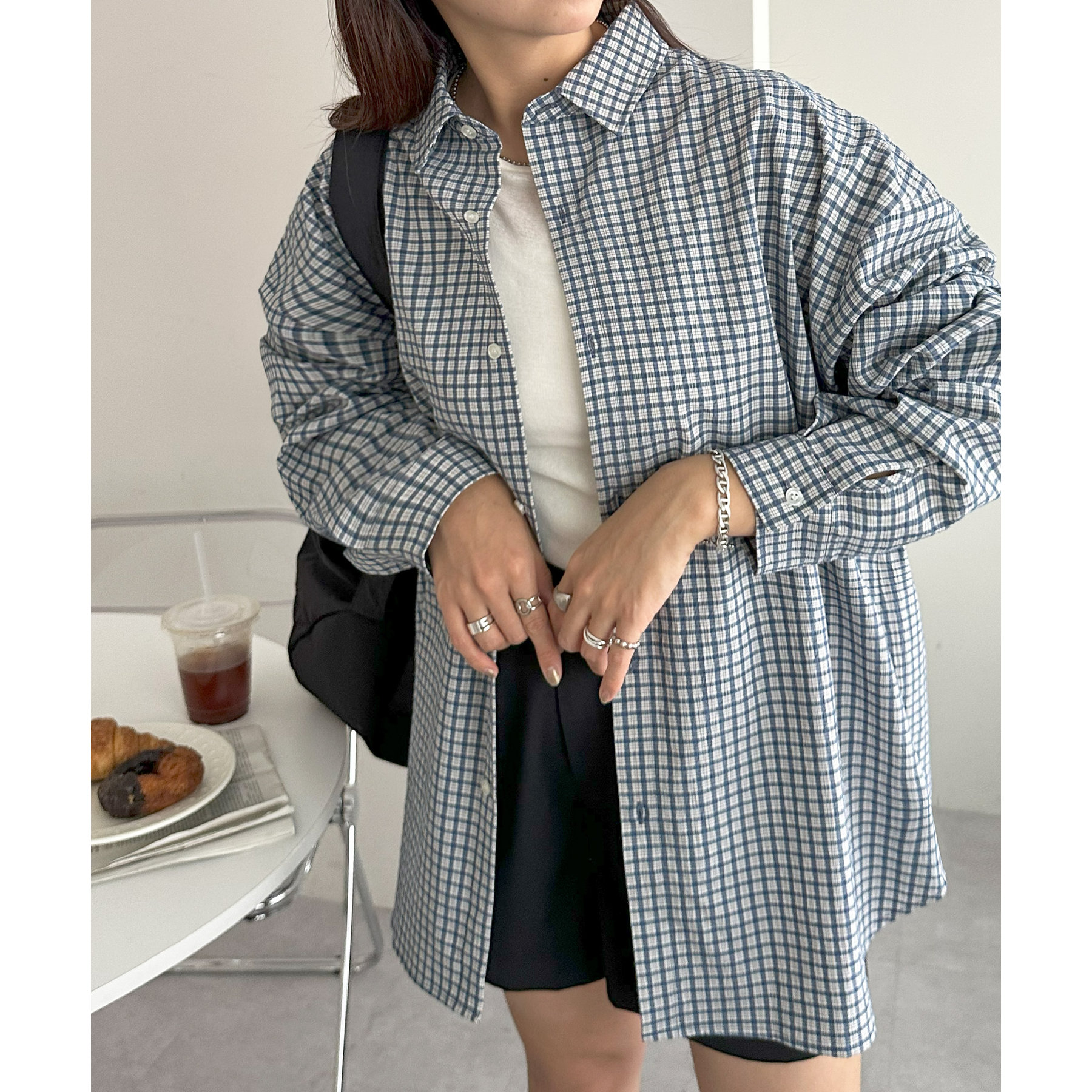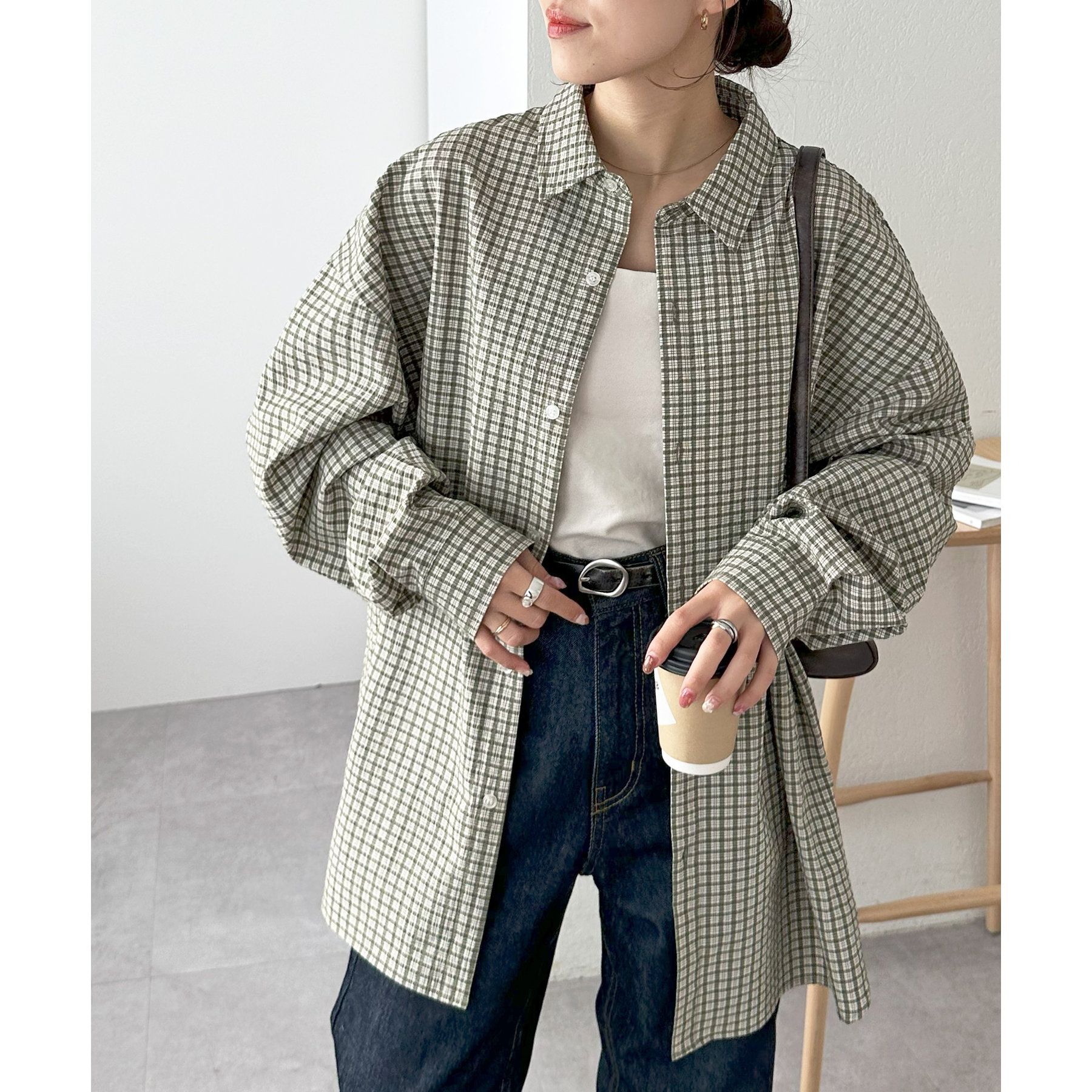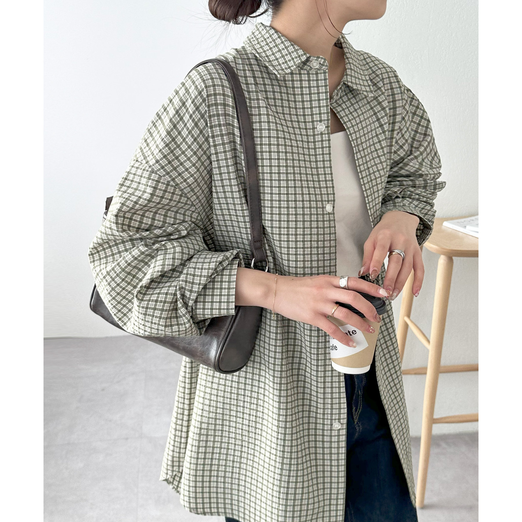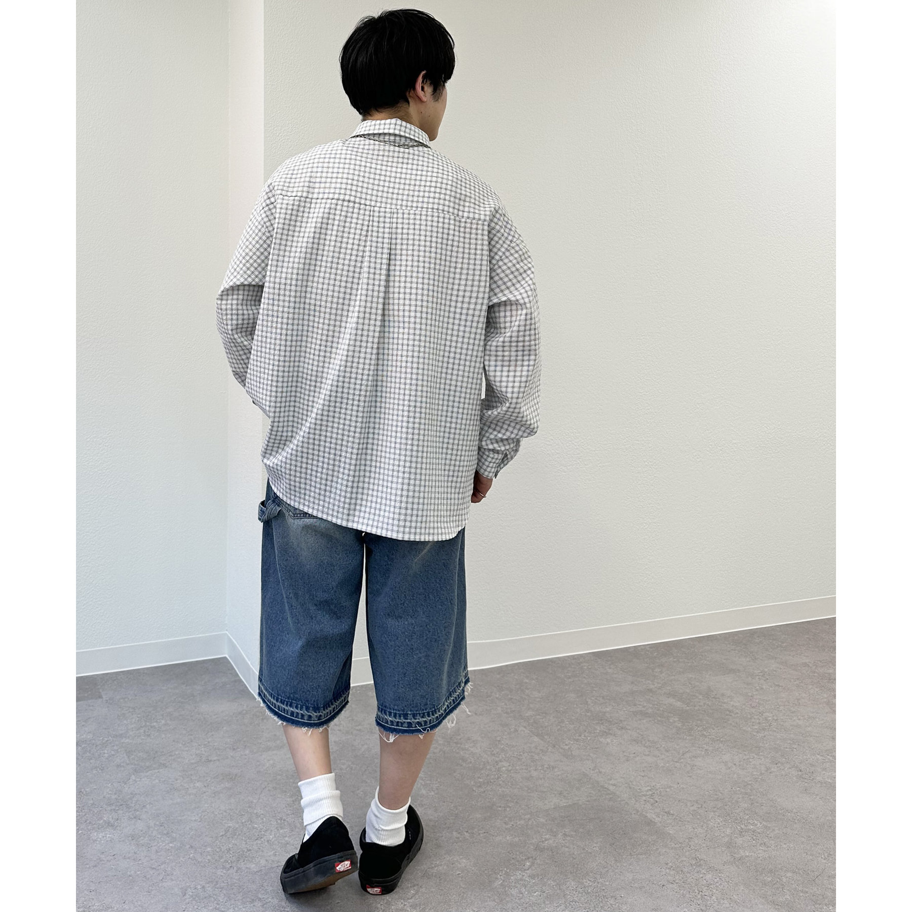 コーディネートに取り入れやすい細めのチェックチェック柄シャツは1枚でボトムスと合わせるのはもちろん、スウェットやベストとレイヤードして柄をチラ見せしていただくのもおすすめ♪