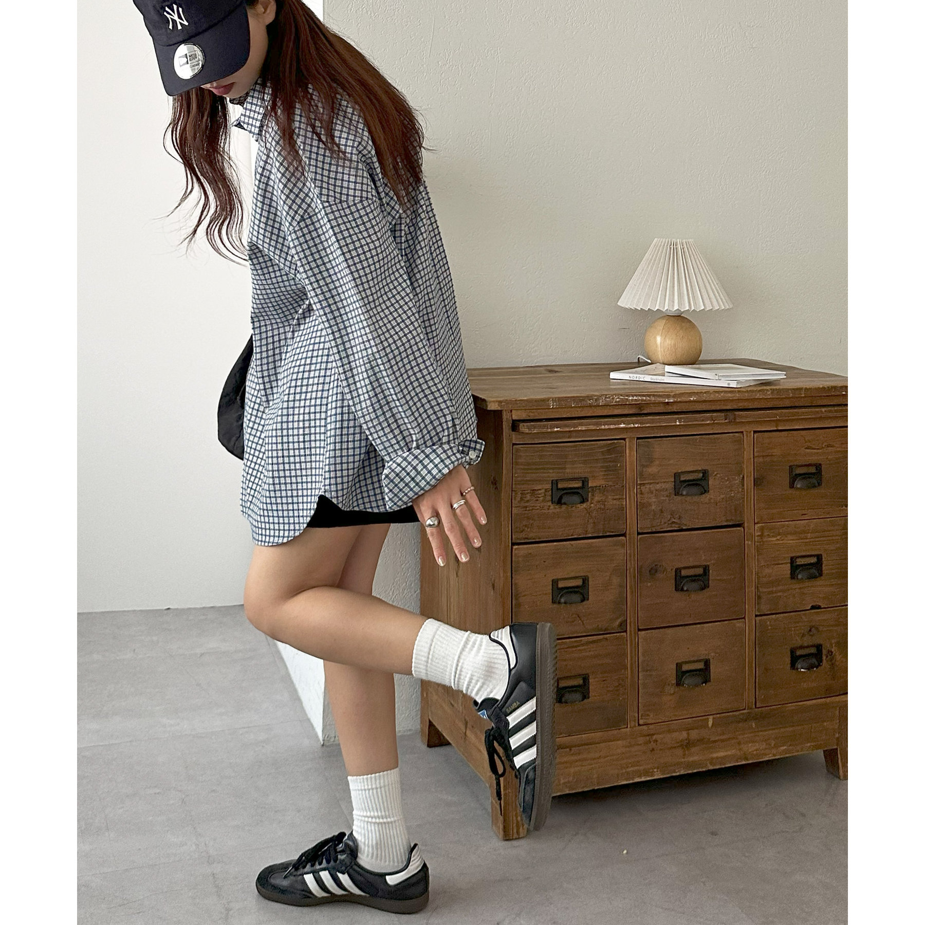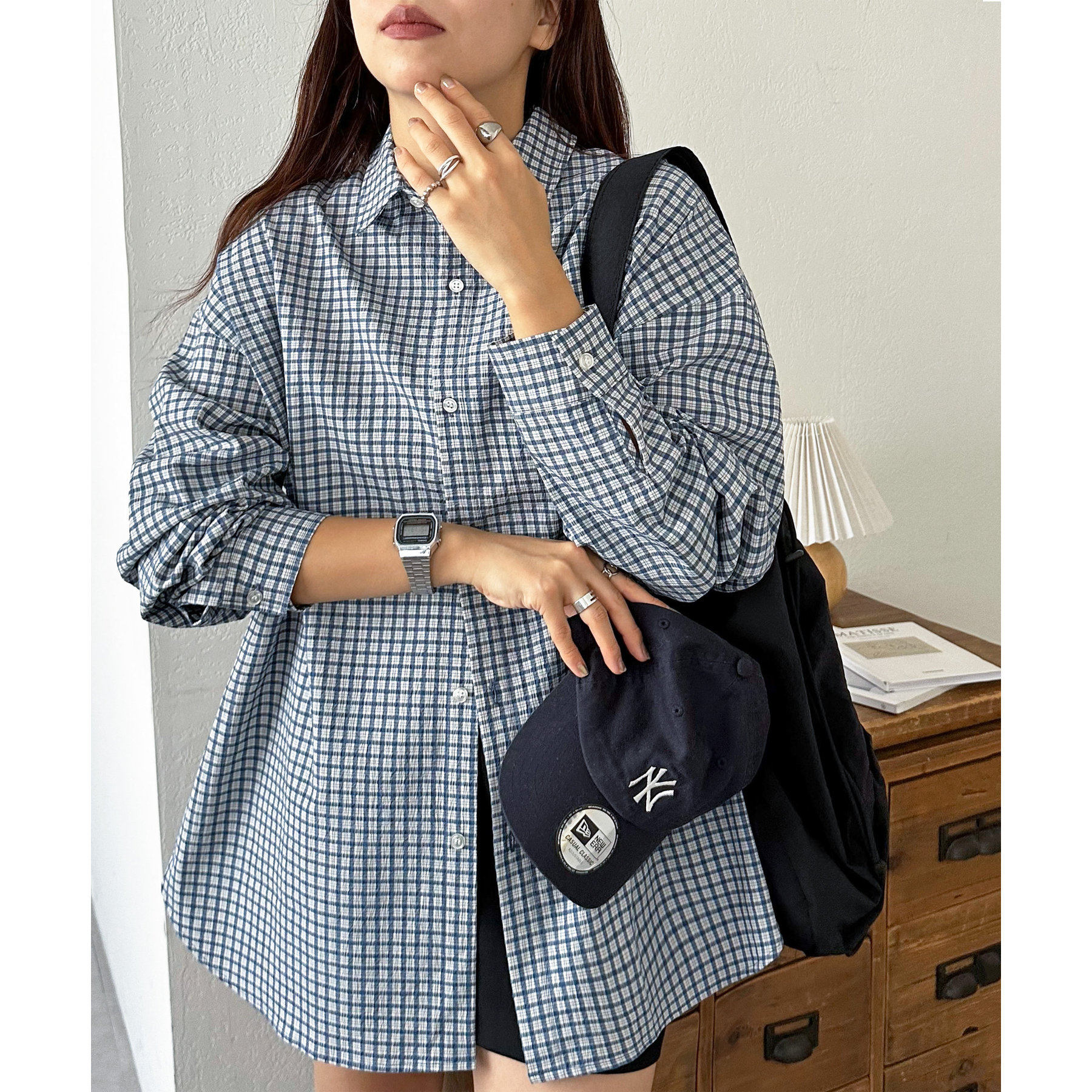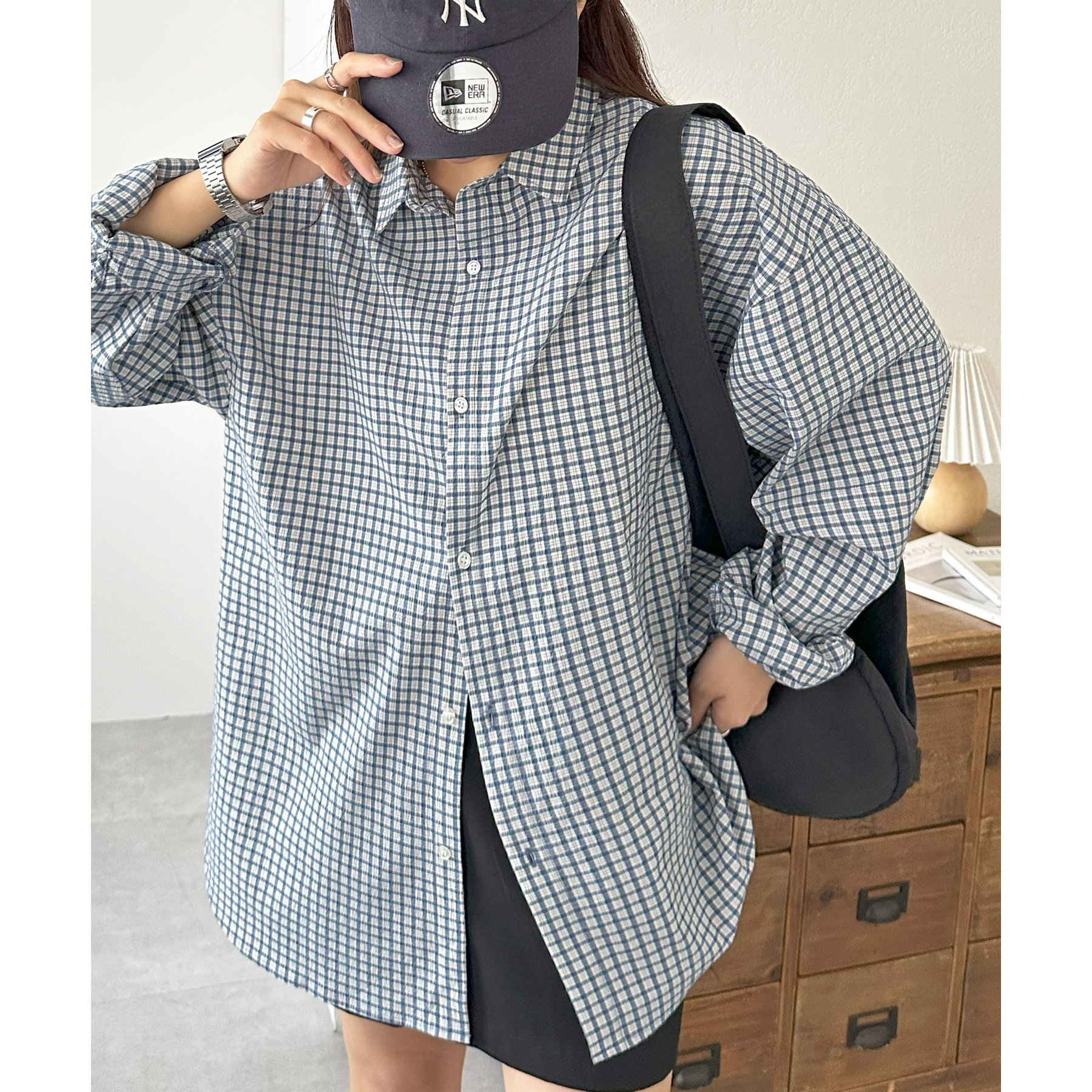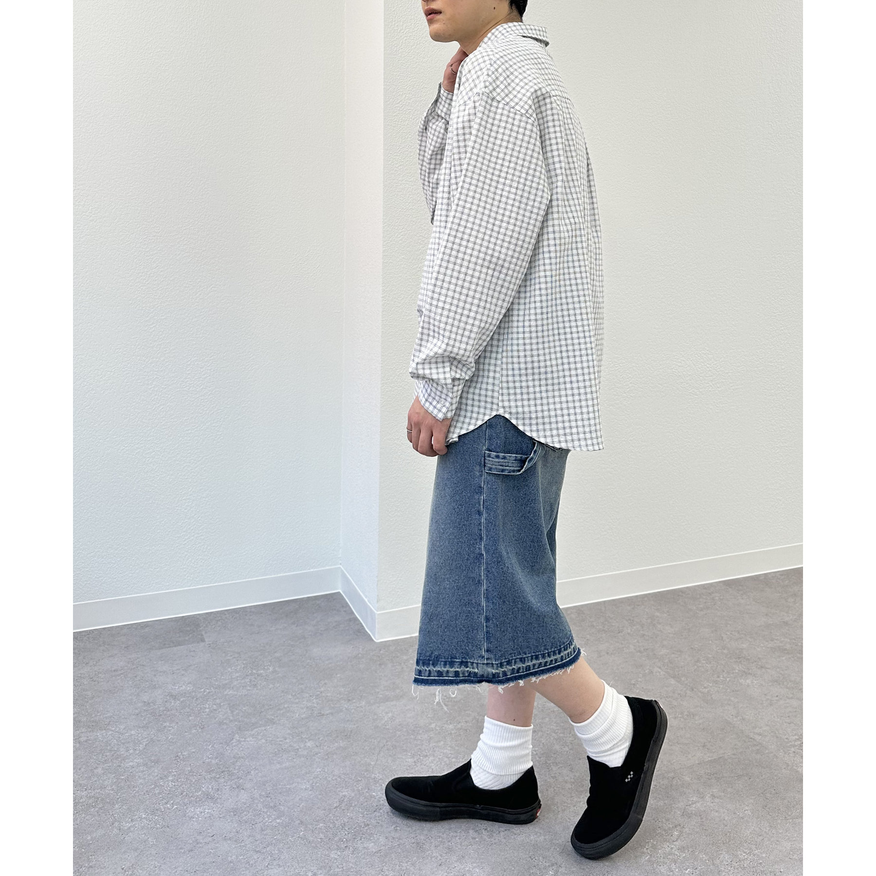 コーディネートに取り入れやすい細めのチェックチェック柄シャツは1枚でボトムスと合わせるのはもちろん、スウェットやベストとレイヤードして柄をチラ見せしていただくのもおすすめ♪