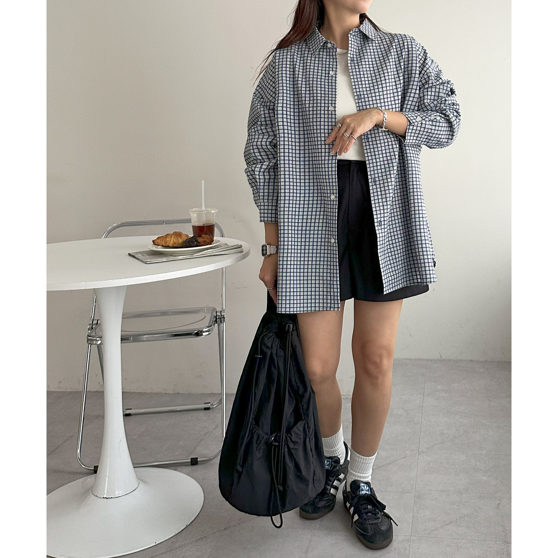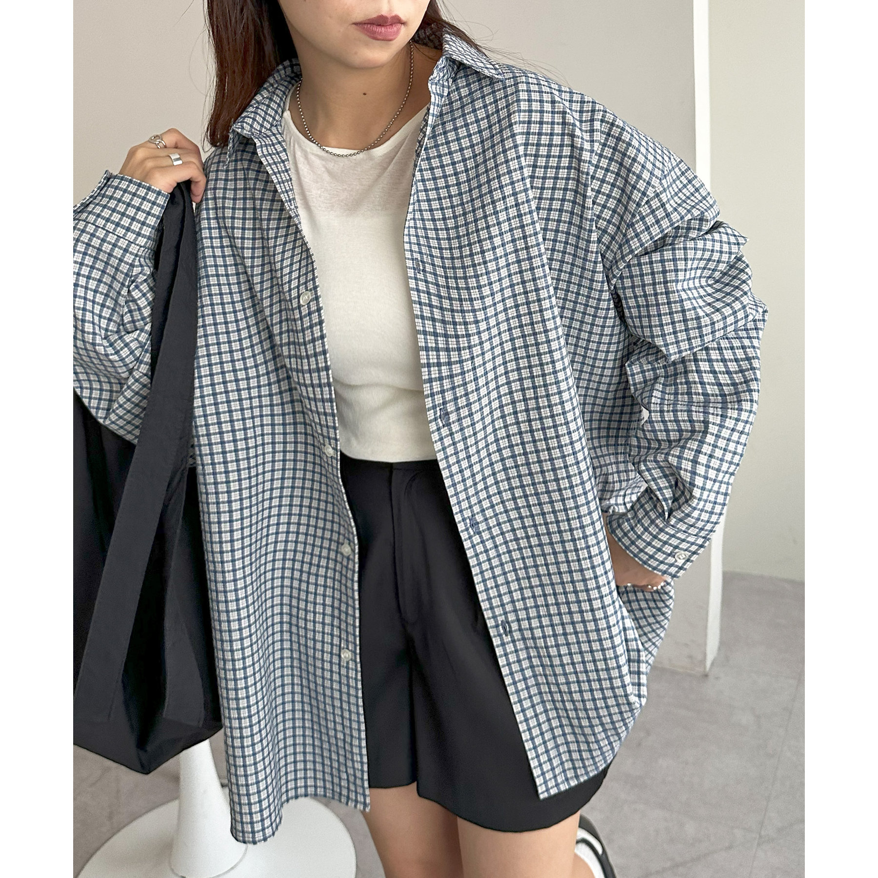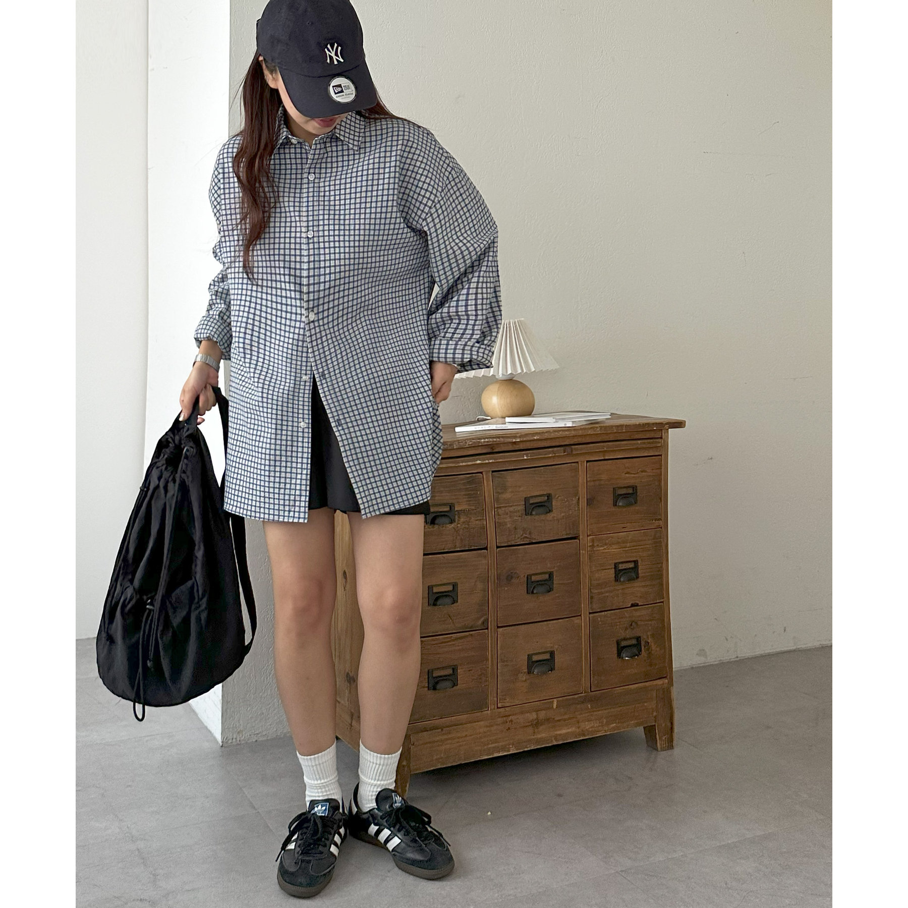 細い線でチェック柄を施したことで柄物感が落ち着き、普段柄物を着ない方もコーデに取り入れていただきやすいです!