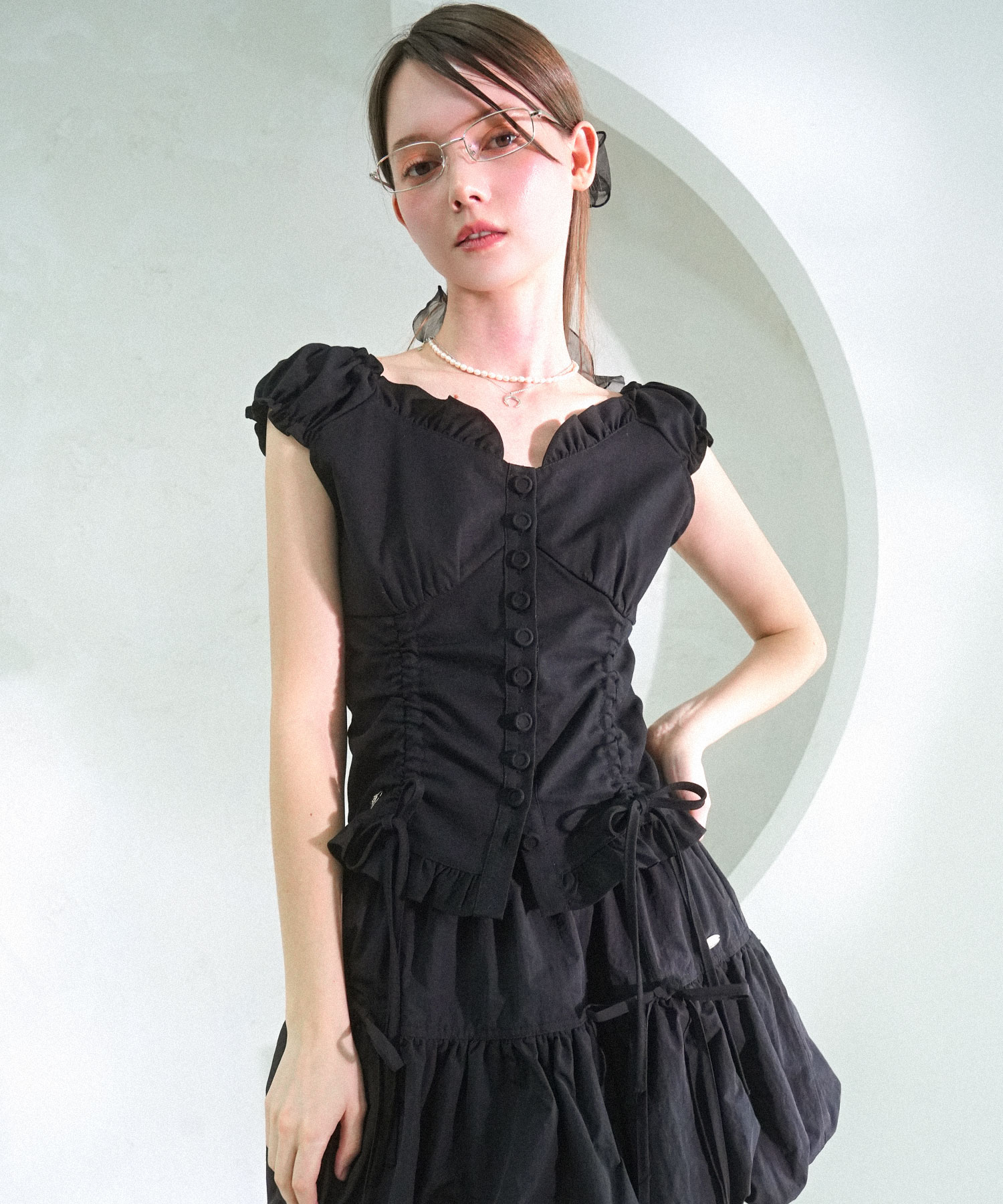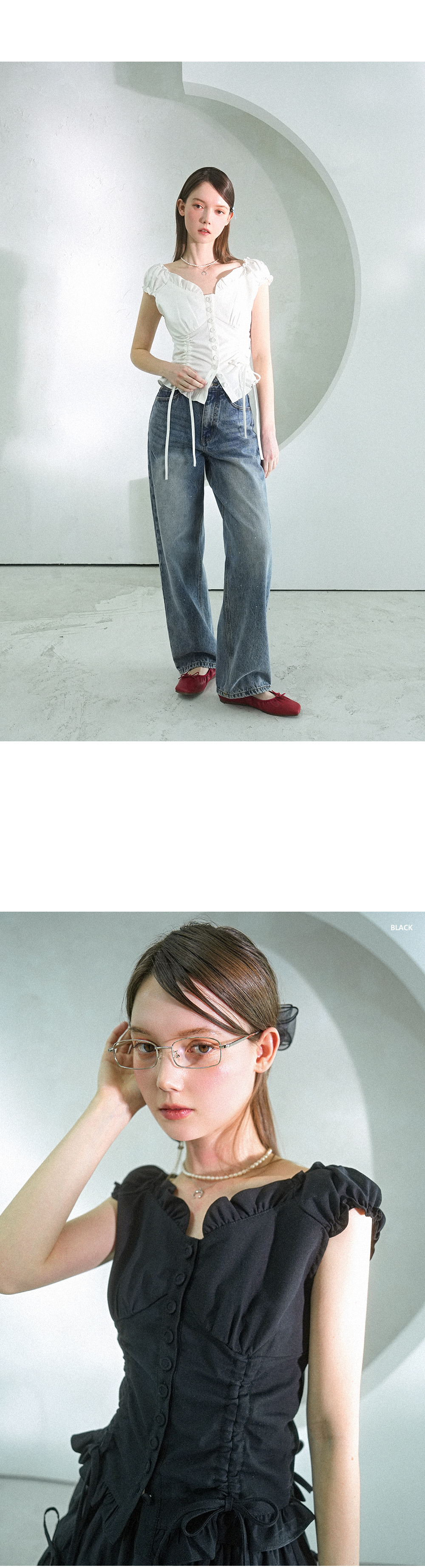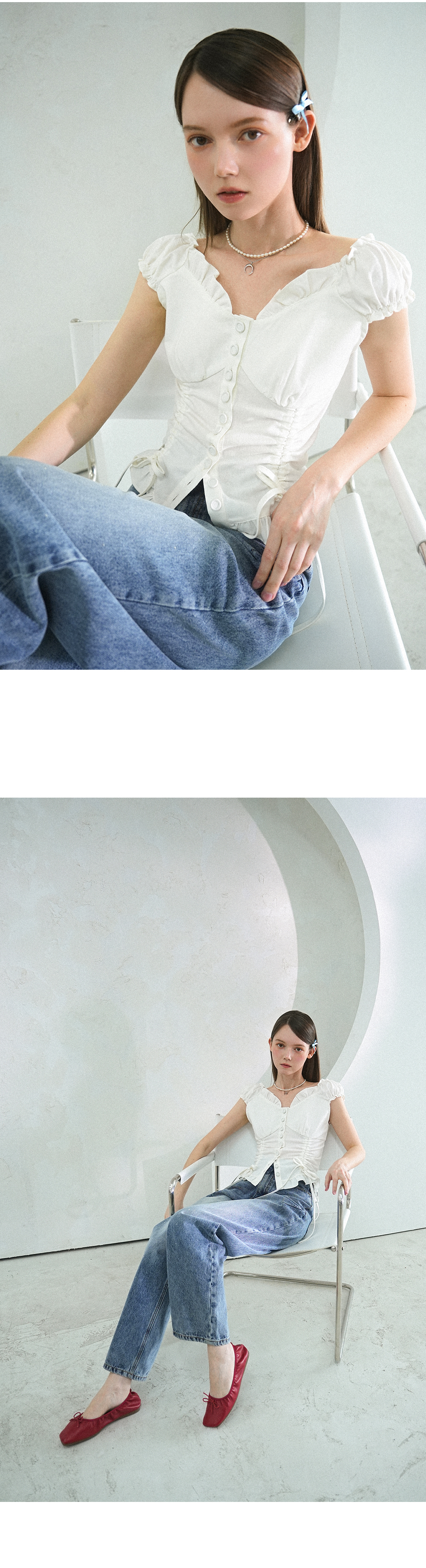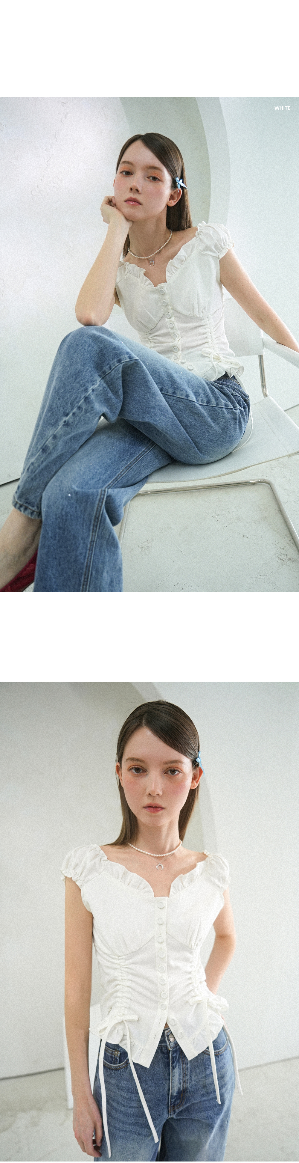 Nia Shirring Two-way Blouse WHITE