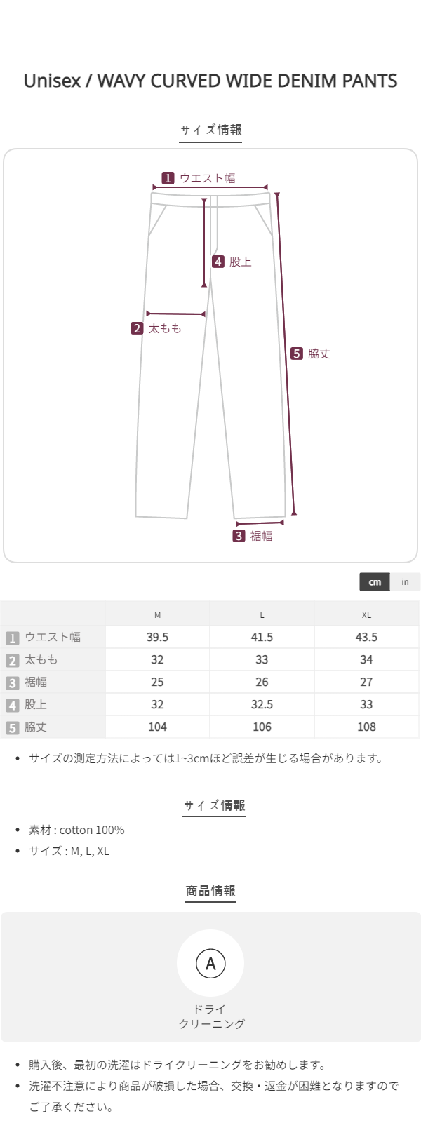 WAVY CURVED WIDE DENIM PANTS [BLUE]