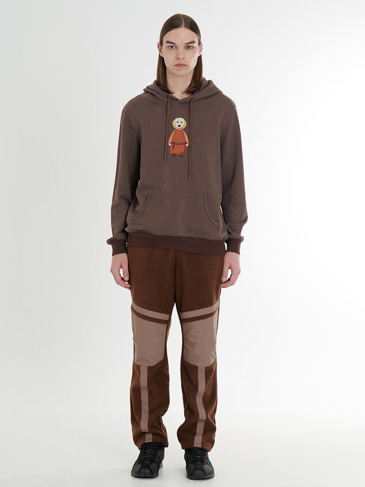 (M) Dog Embroidery Unisex Cotton Zurry Hooded Sweatshirt_Brown