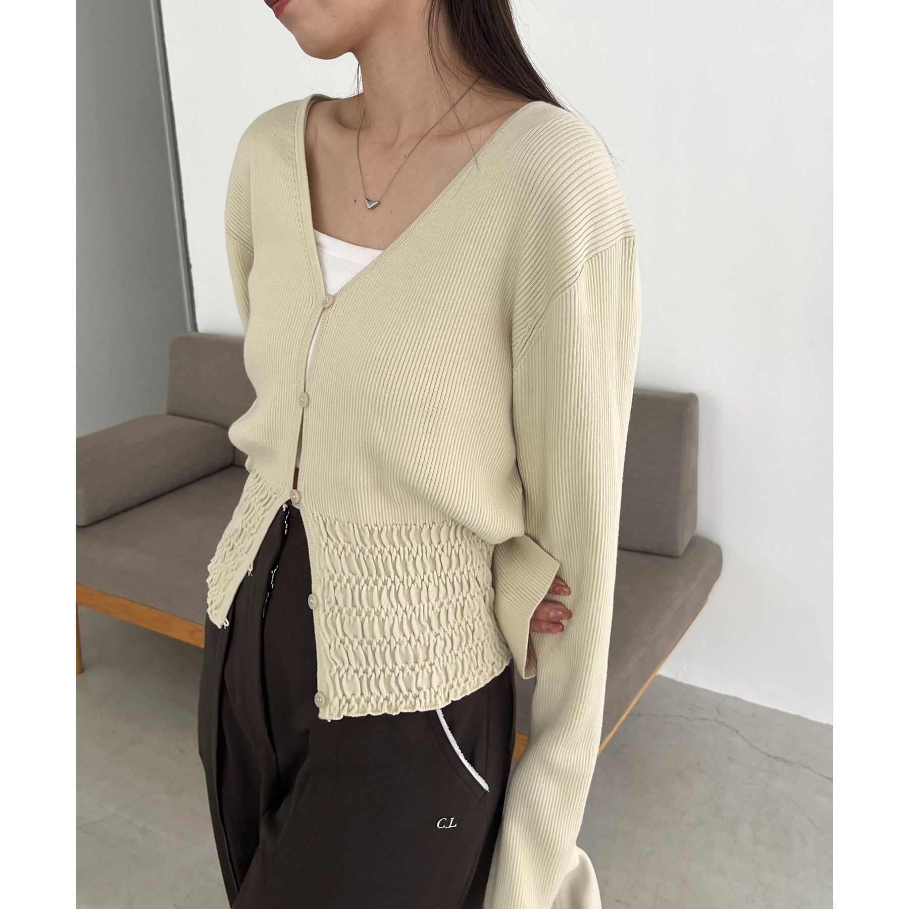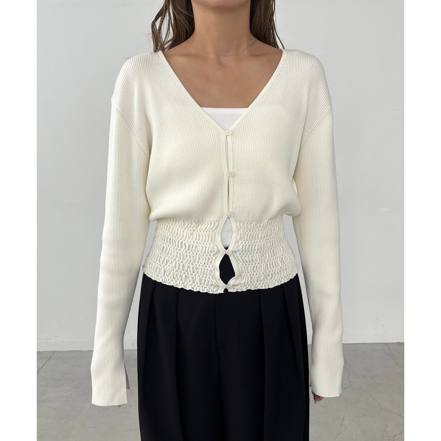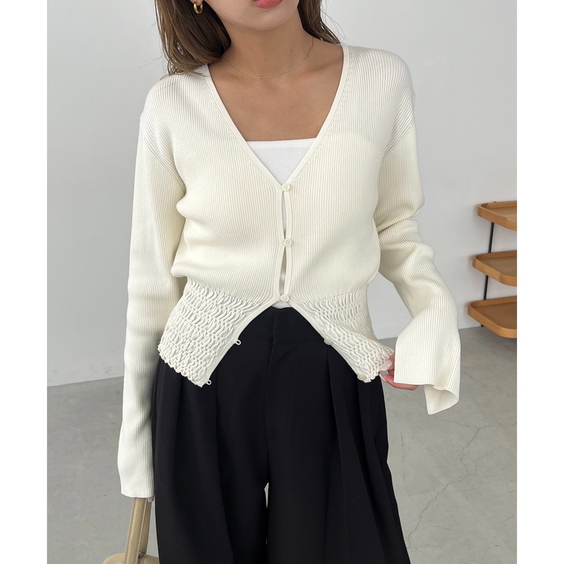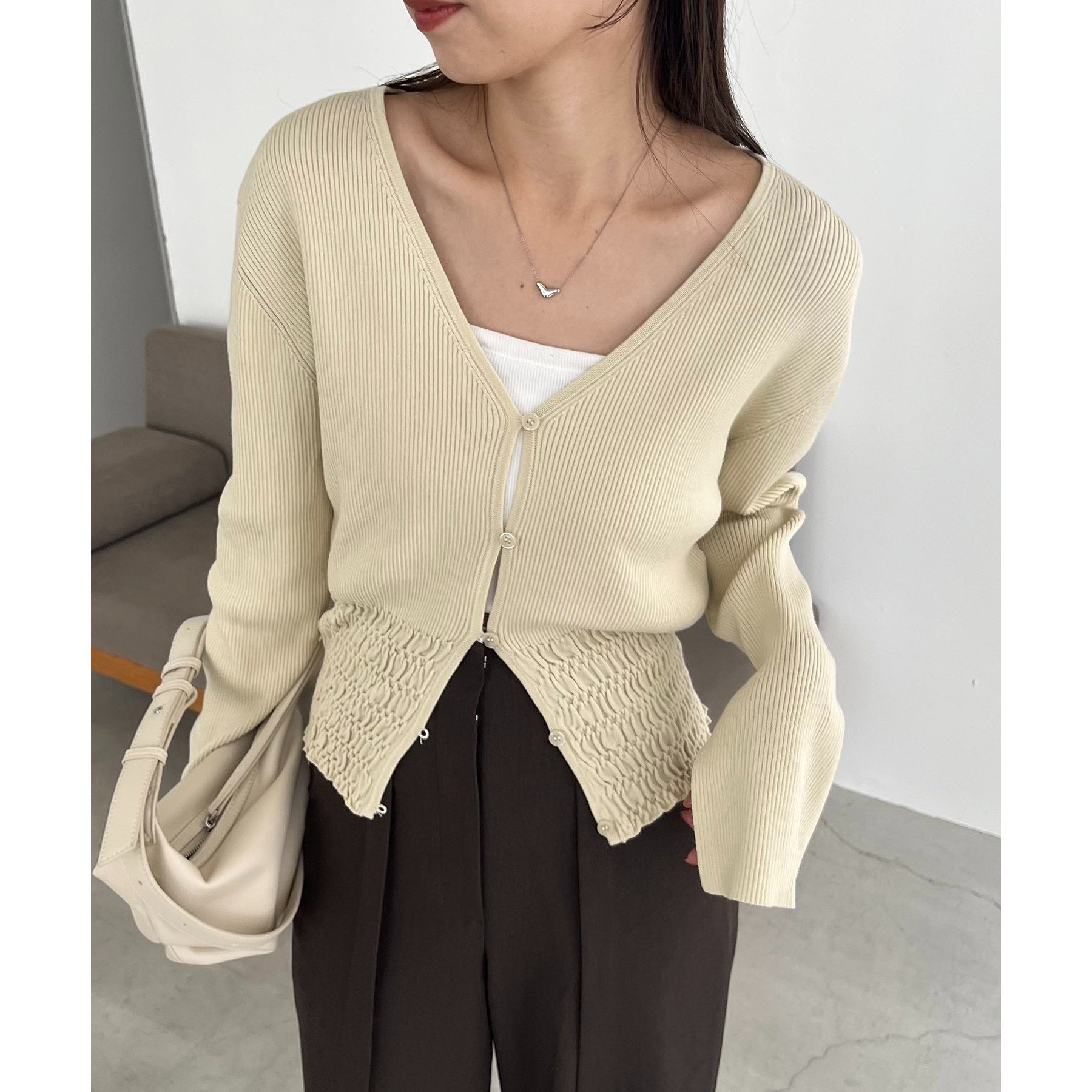 【スタイルアップ効果◎】裾シャーリングリブカーディガン