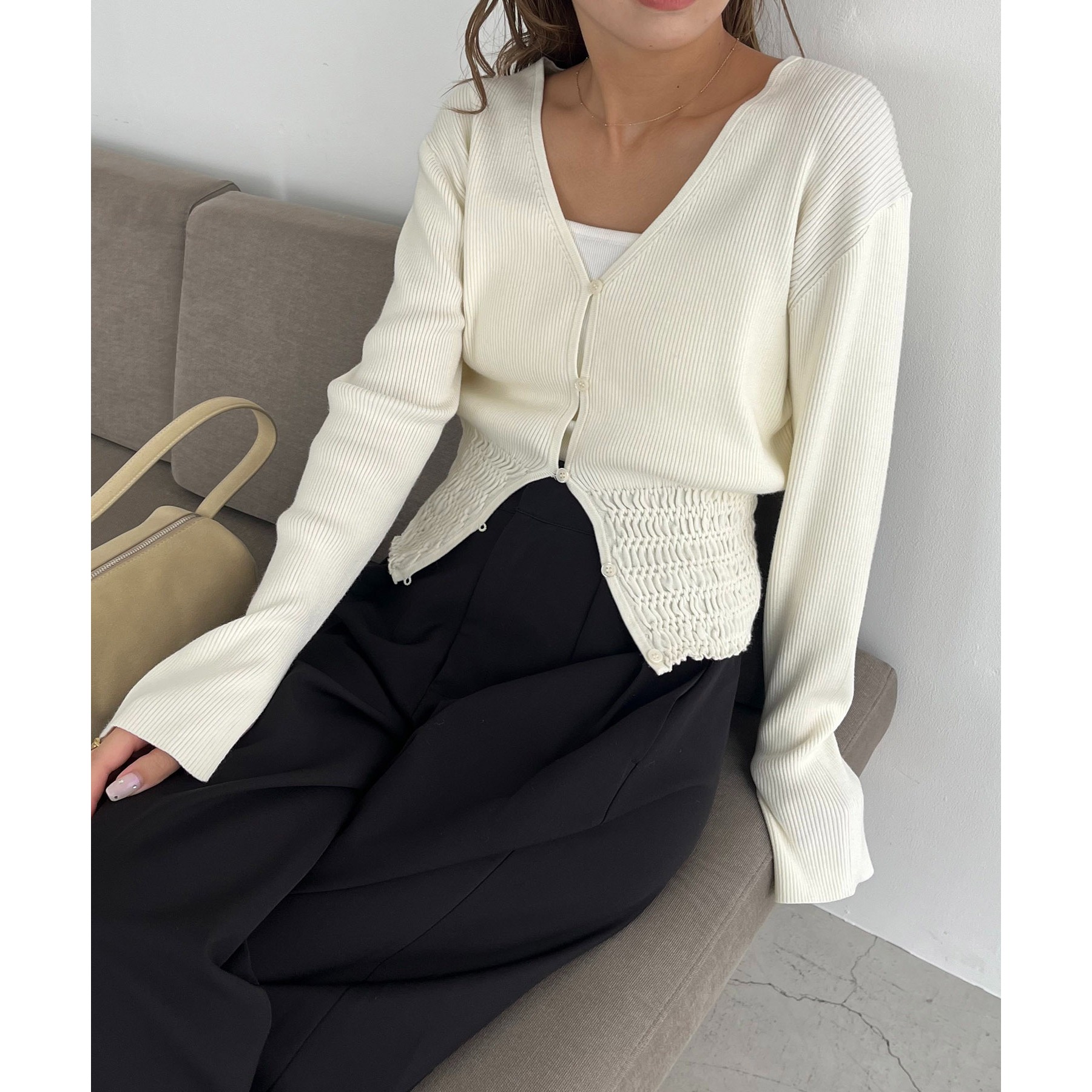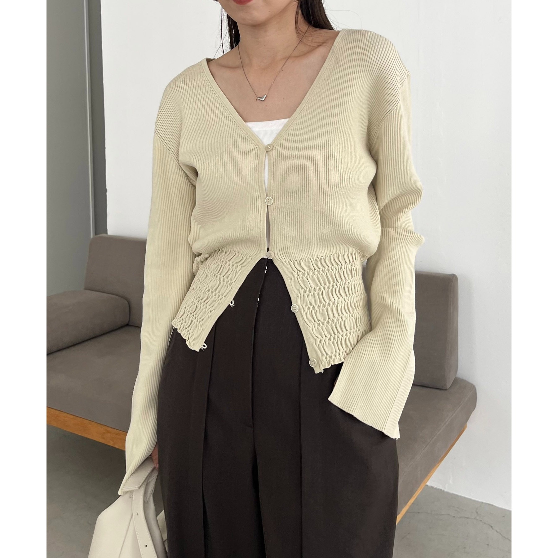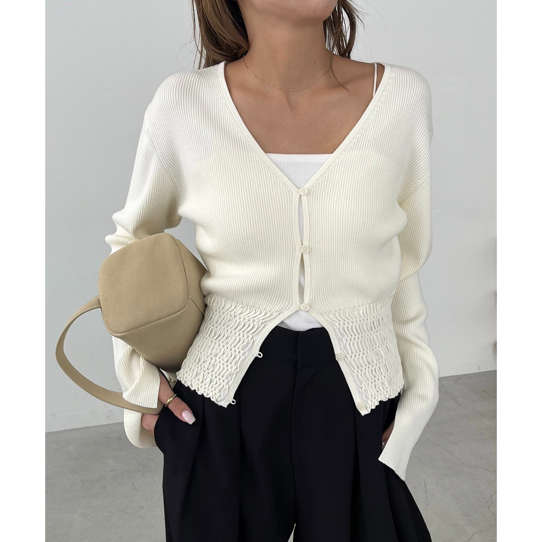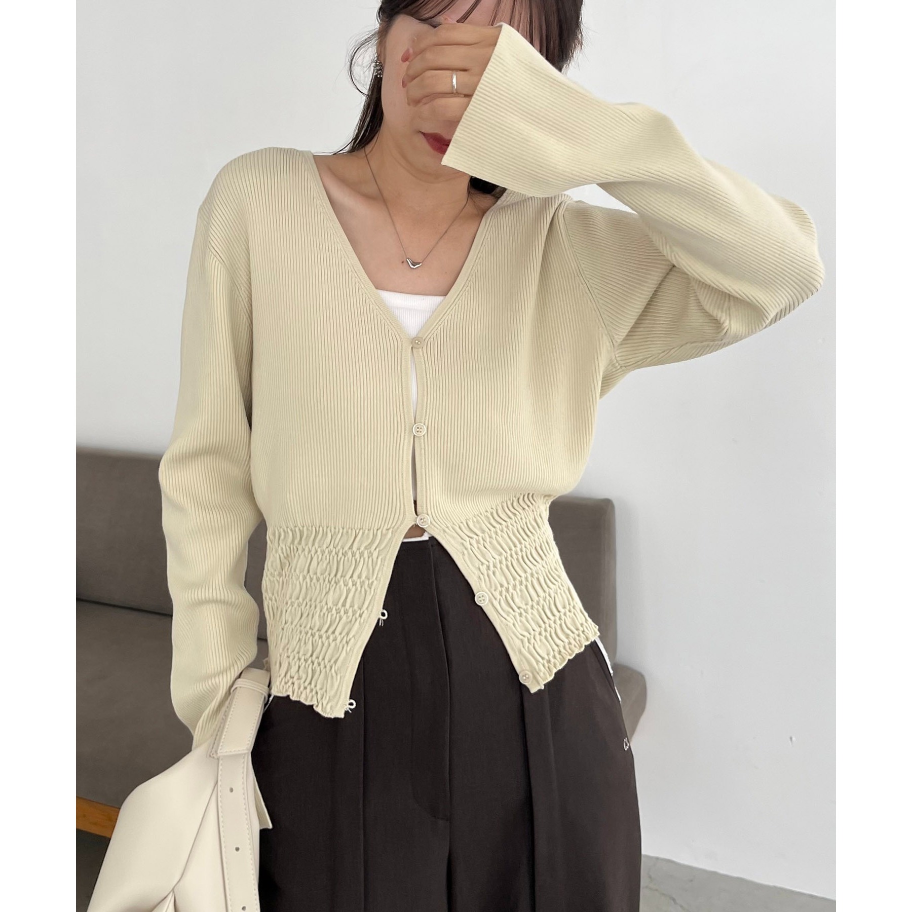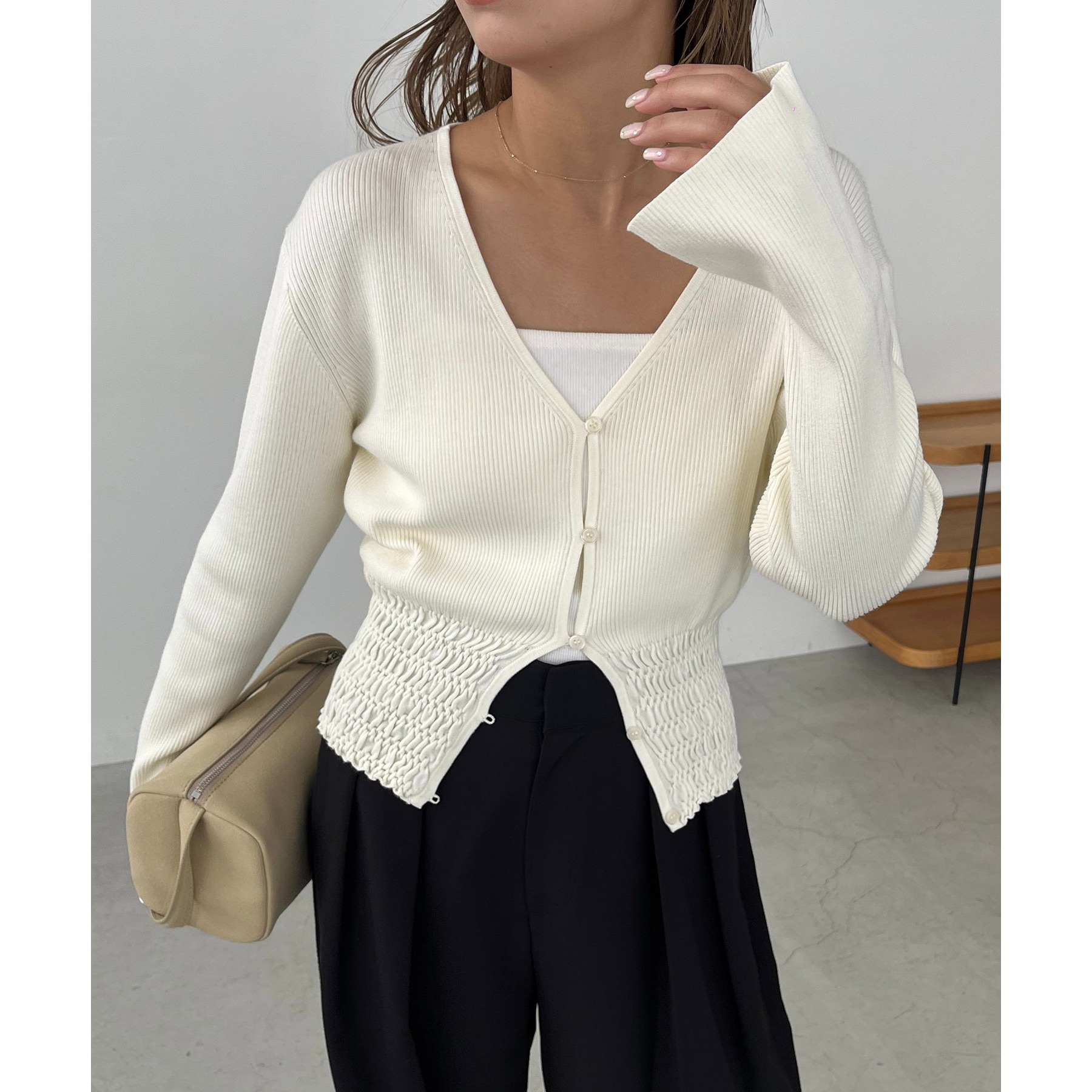 【スタイルアップ効果◎】裾シャーリングリブカーディガン