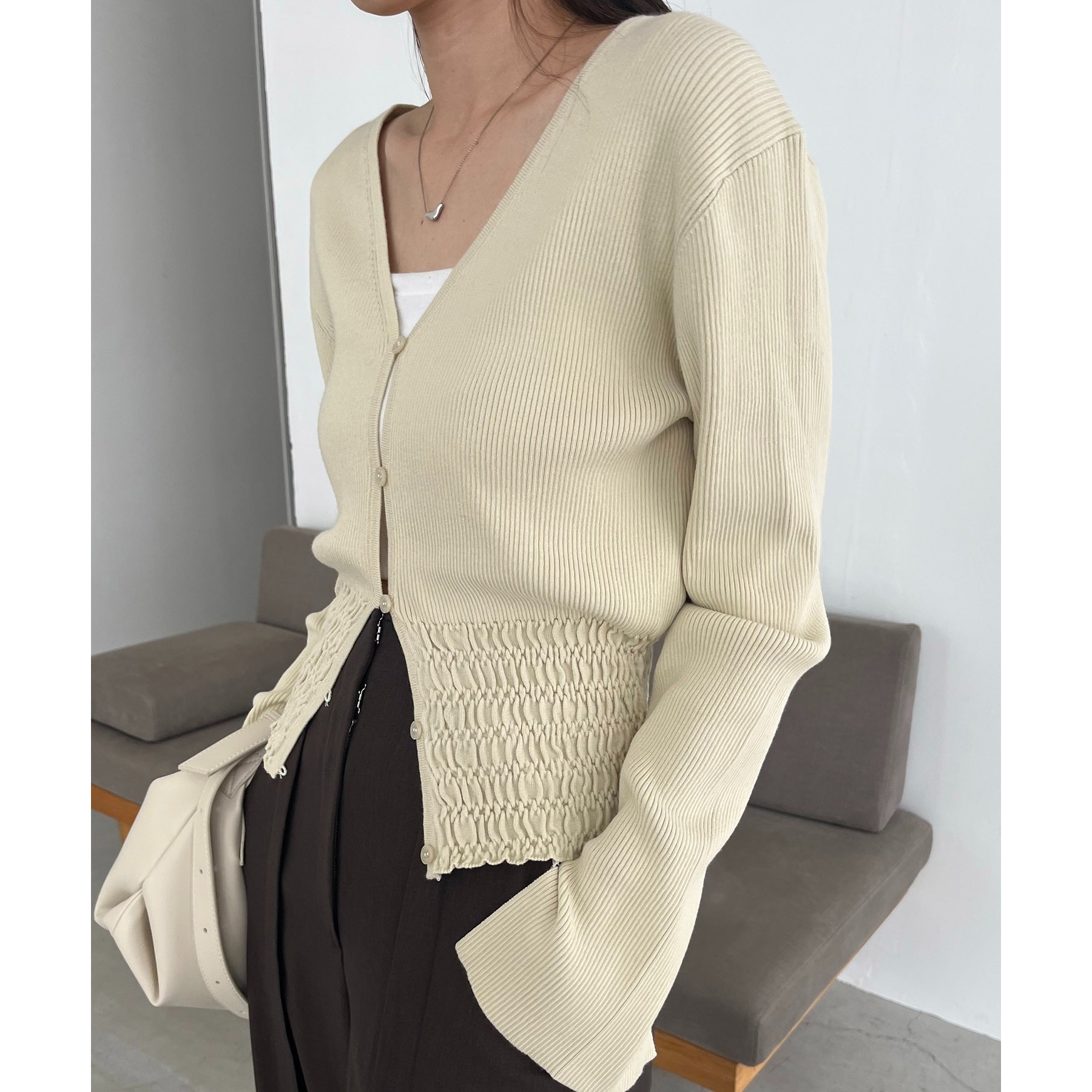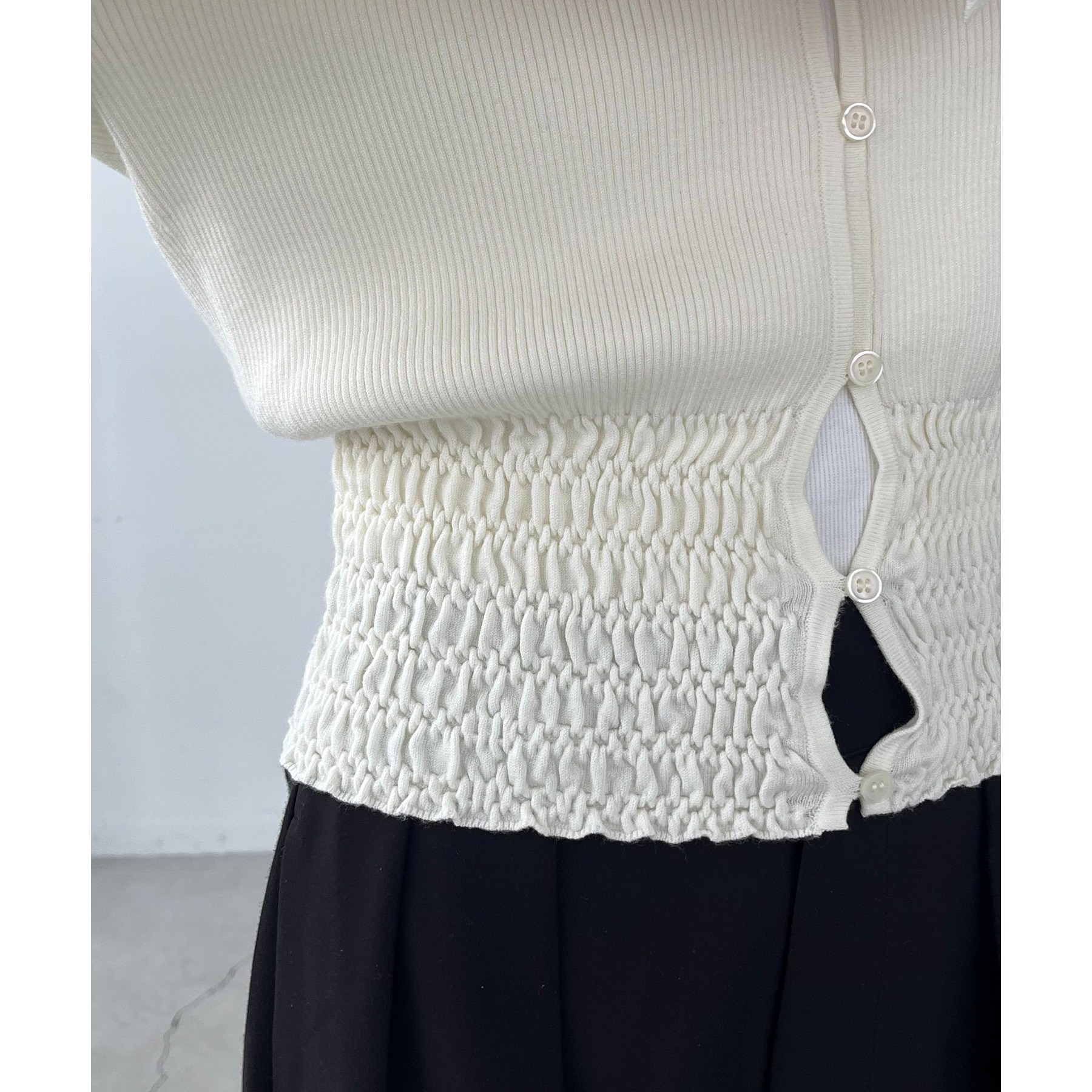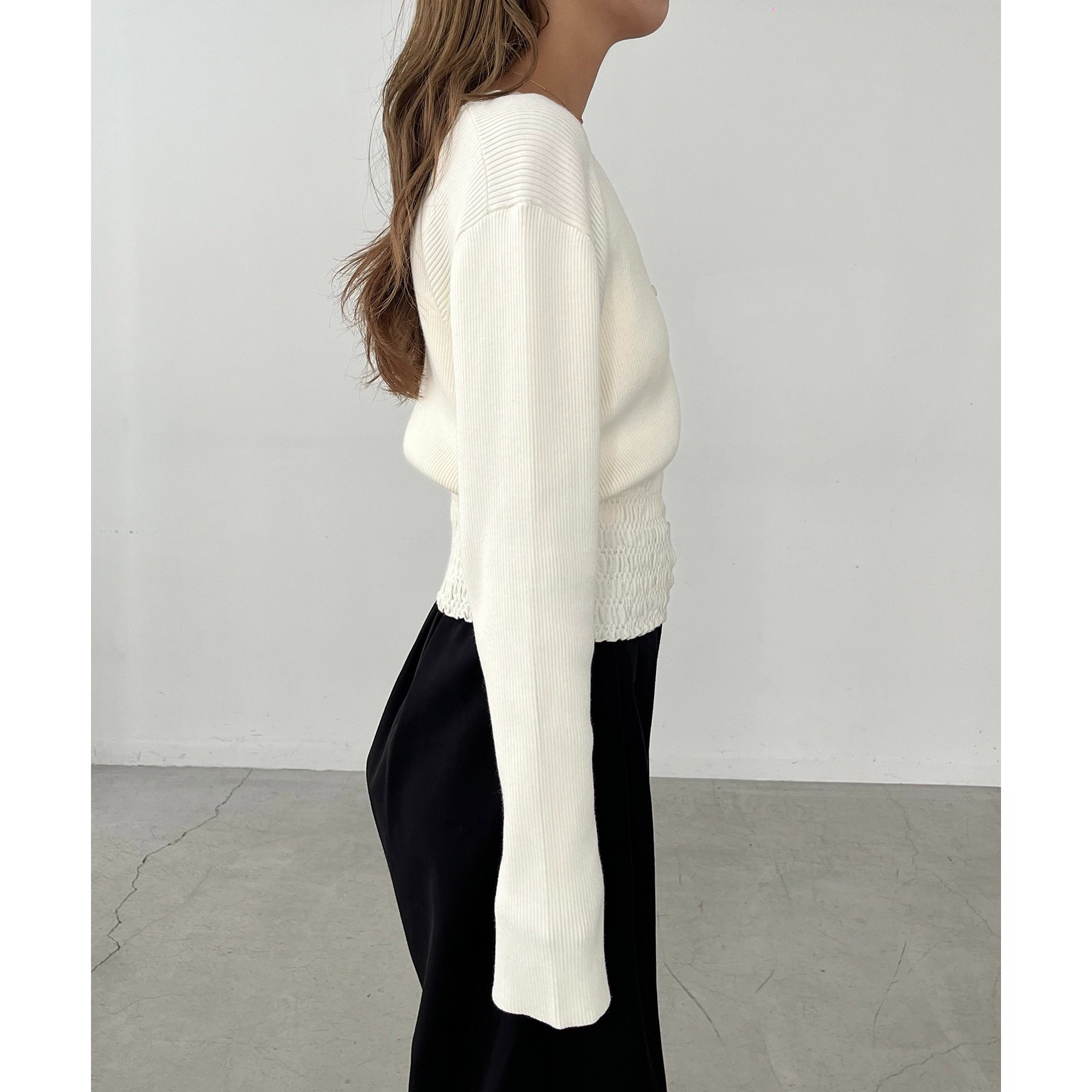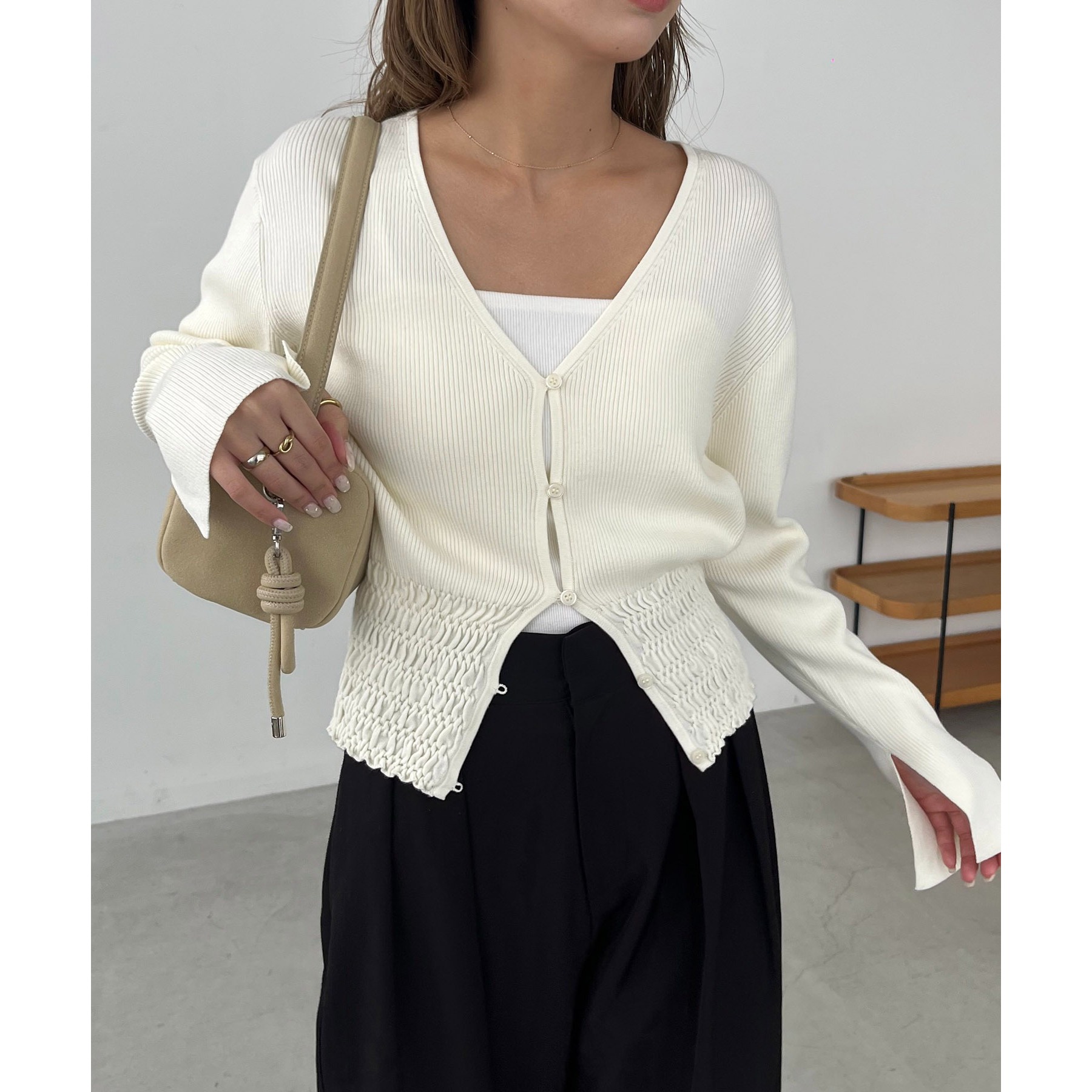 【スタイルアップ効果◎】裾シャーリングリブカーディガン