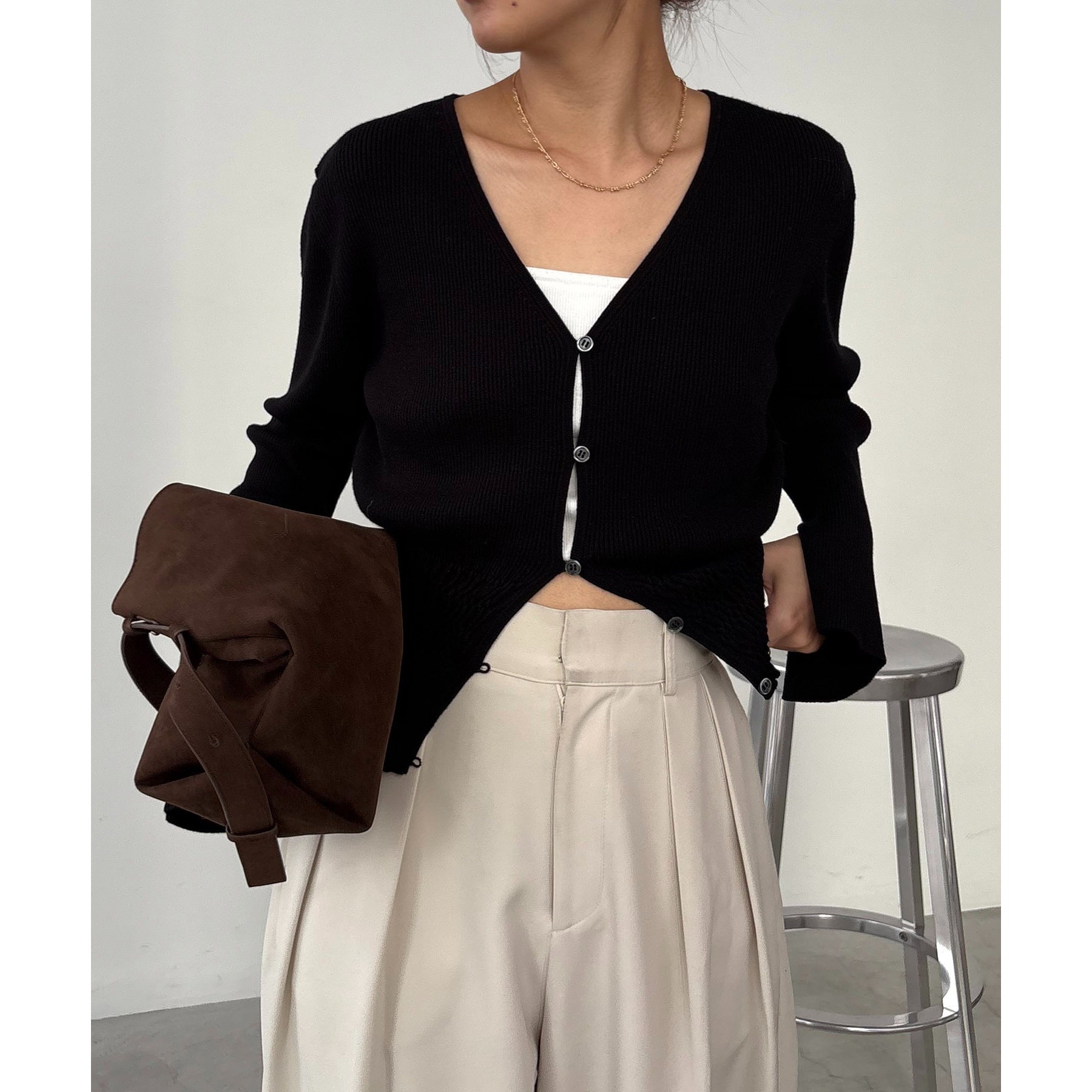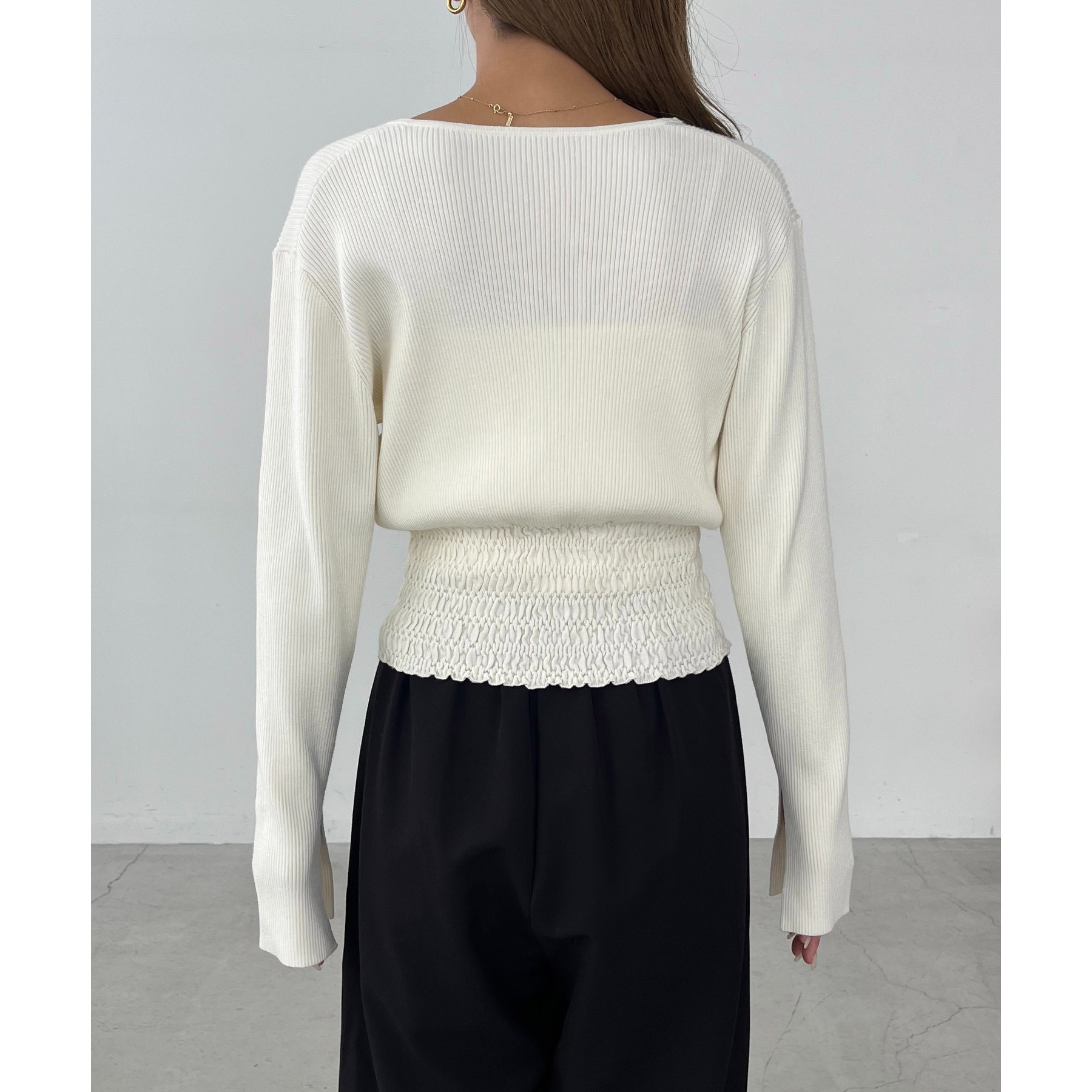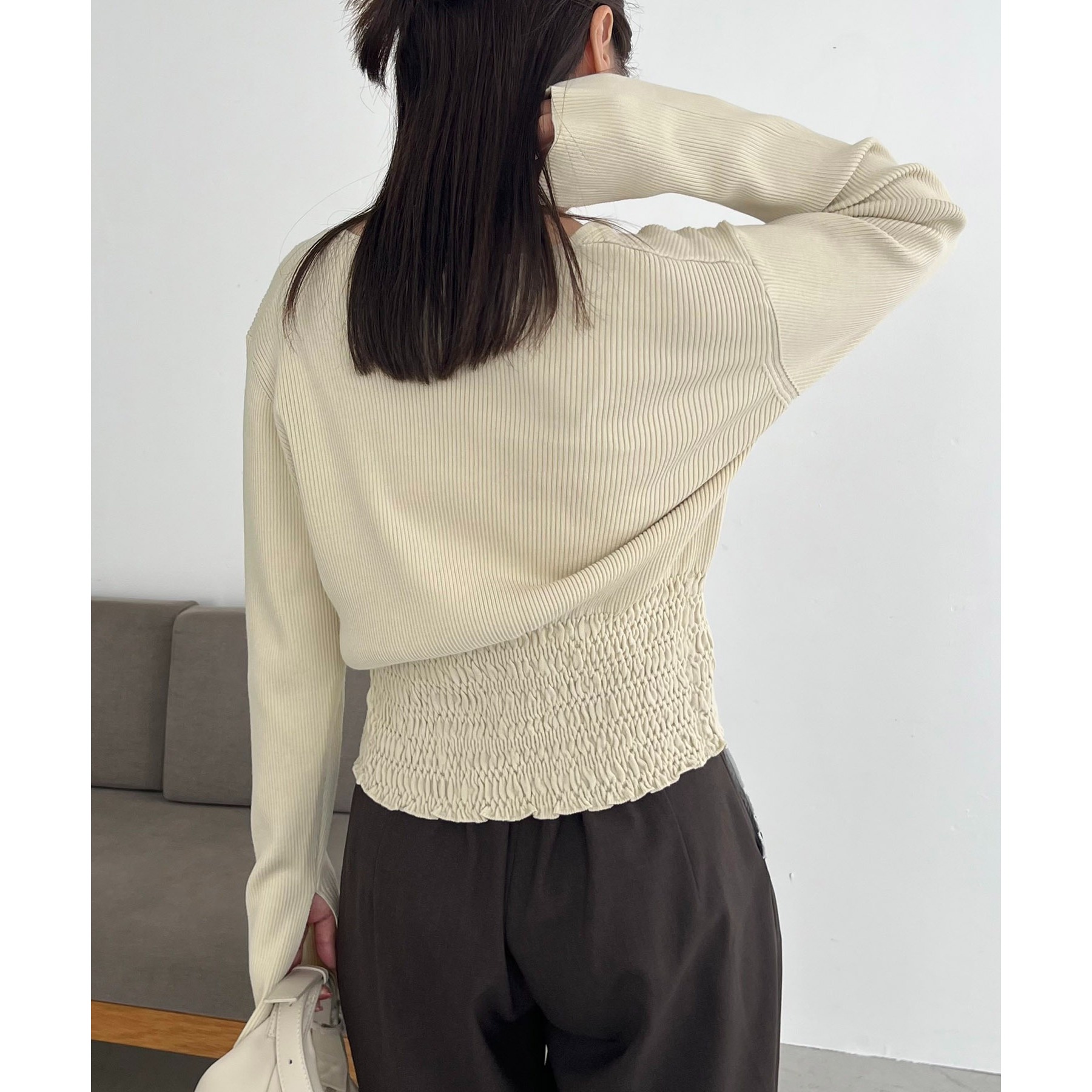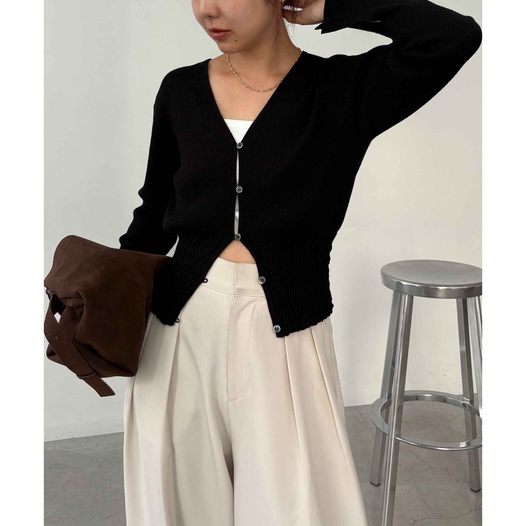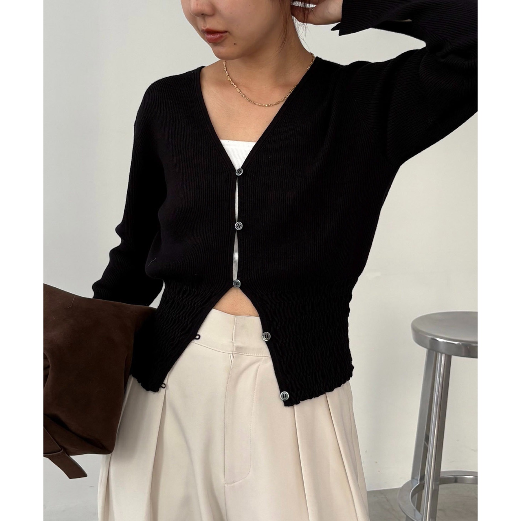 【スタイルアップ効果◎】裾シャーリングリブカーディガン