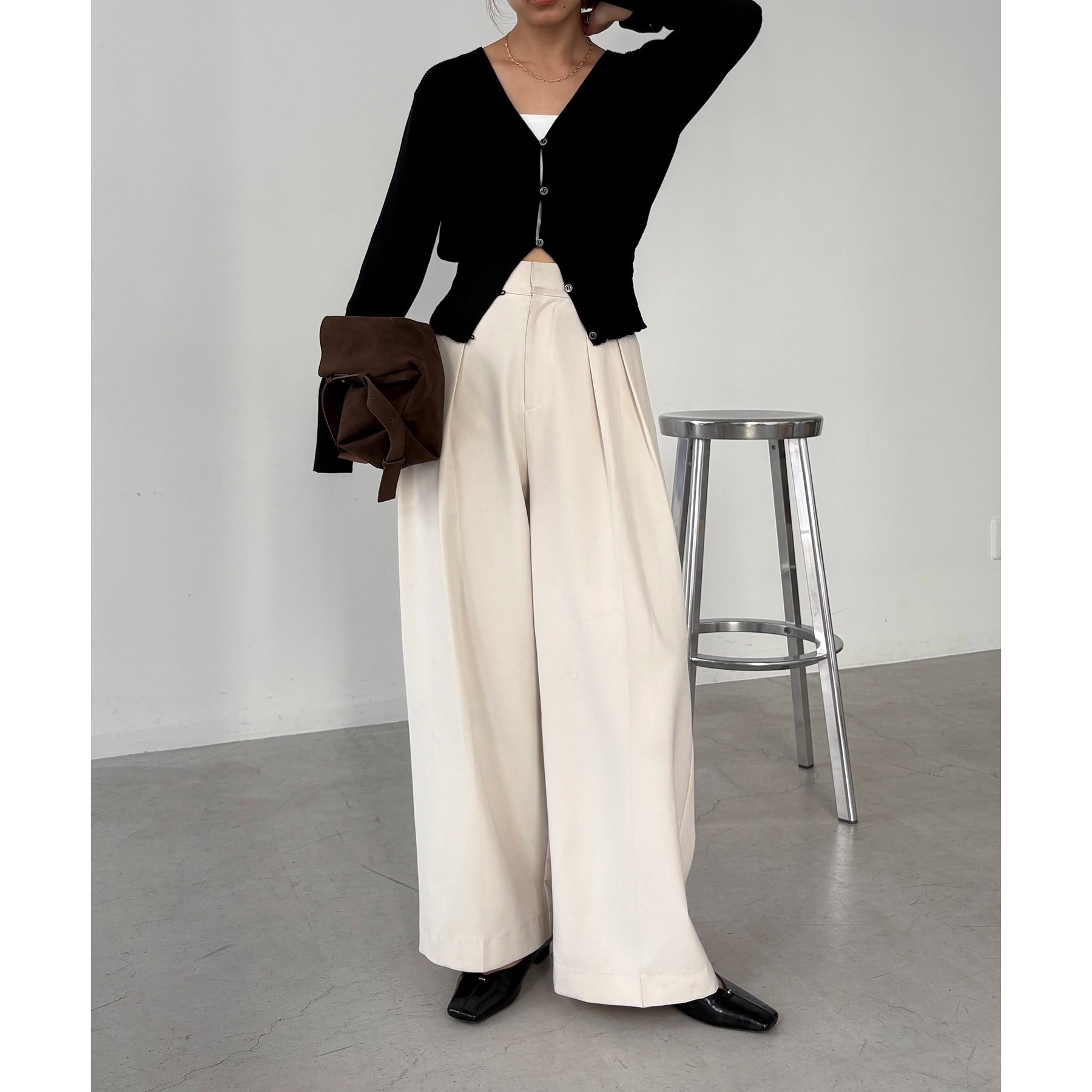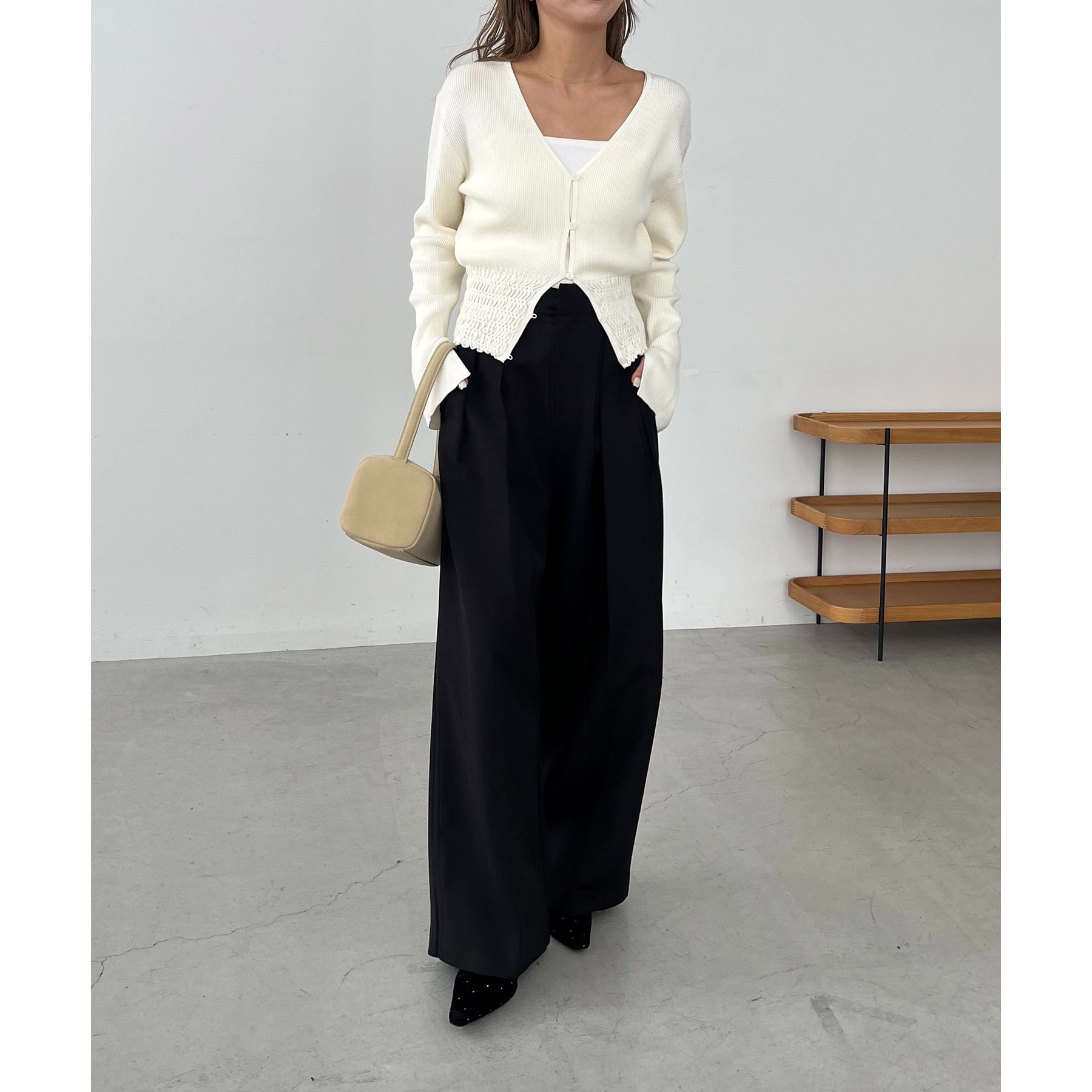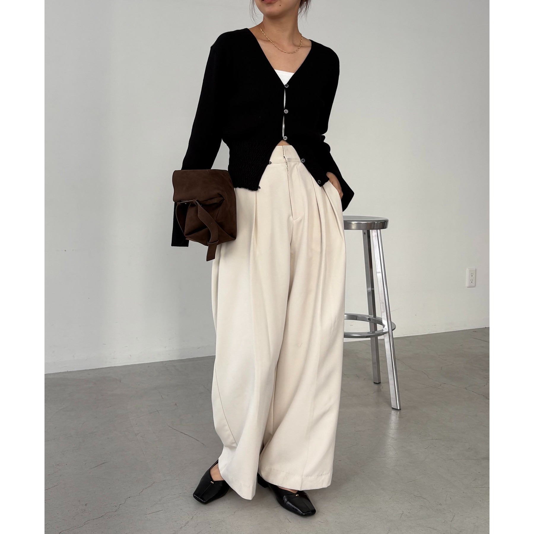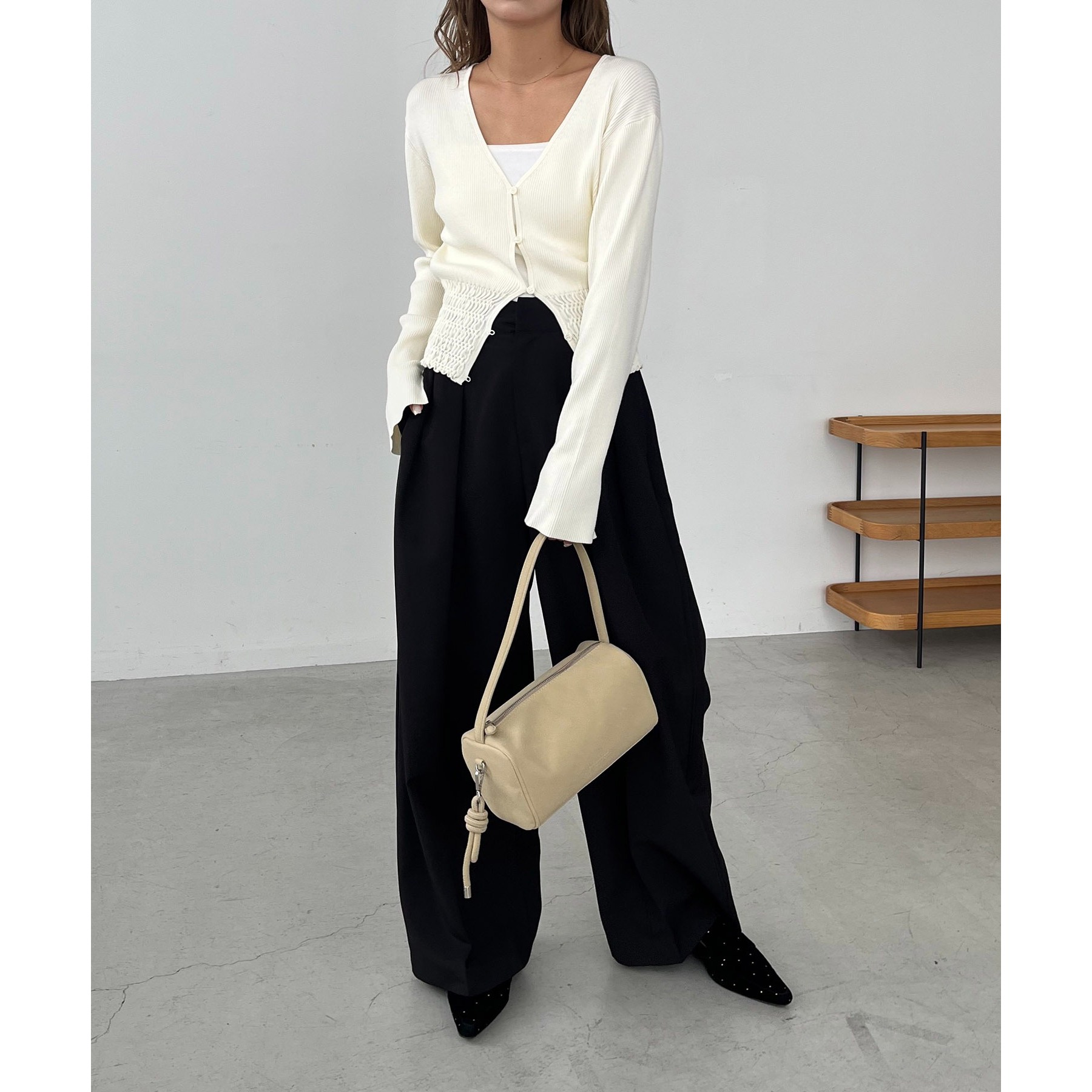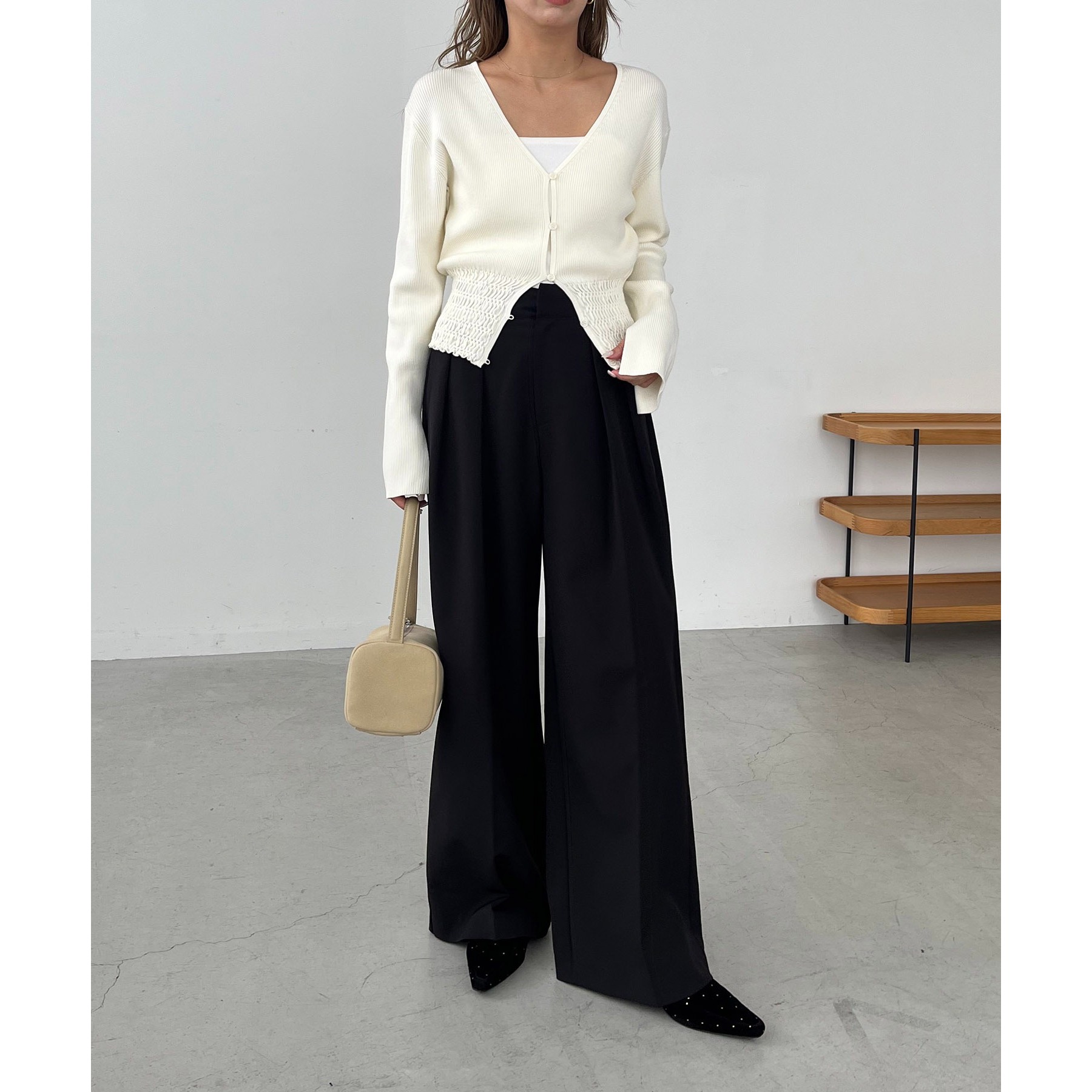 ・ワイドボトムと合わせてメリハリのあるスタイリングに