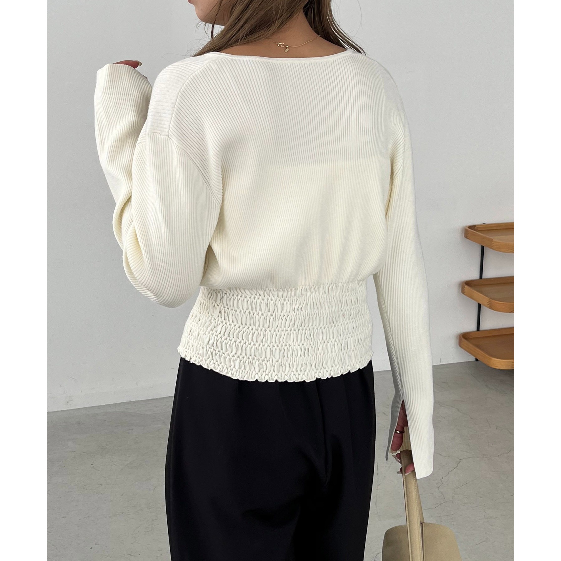 立体感のある裾のシャーリングがポイント