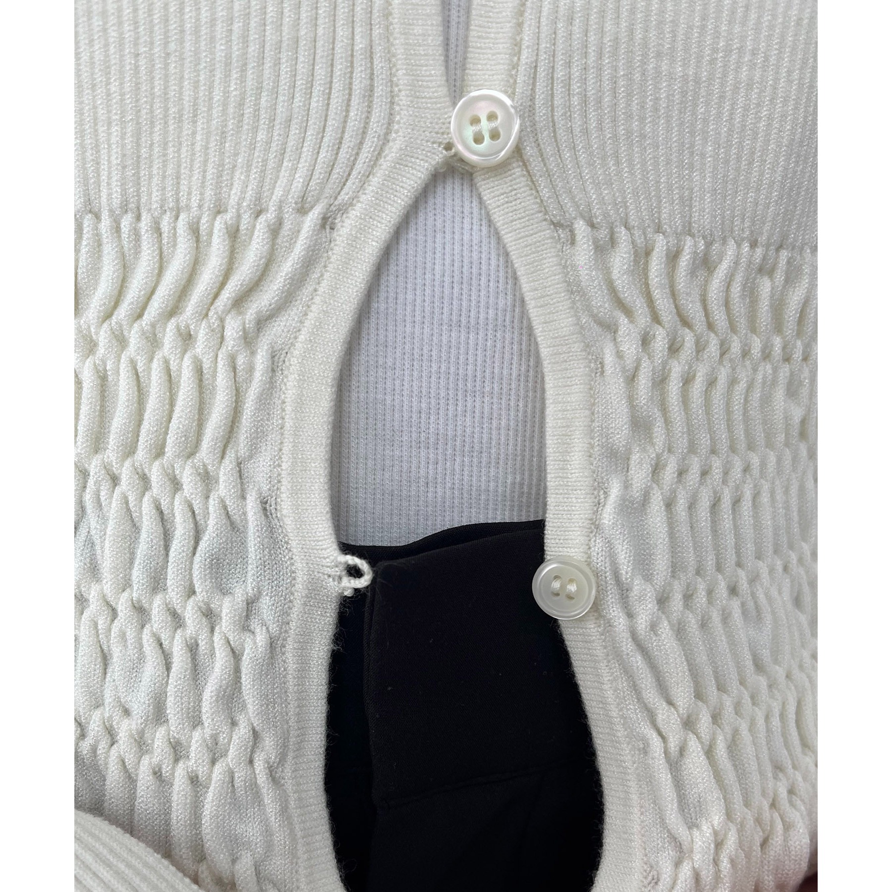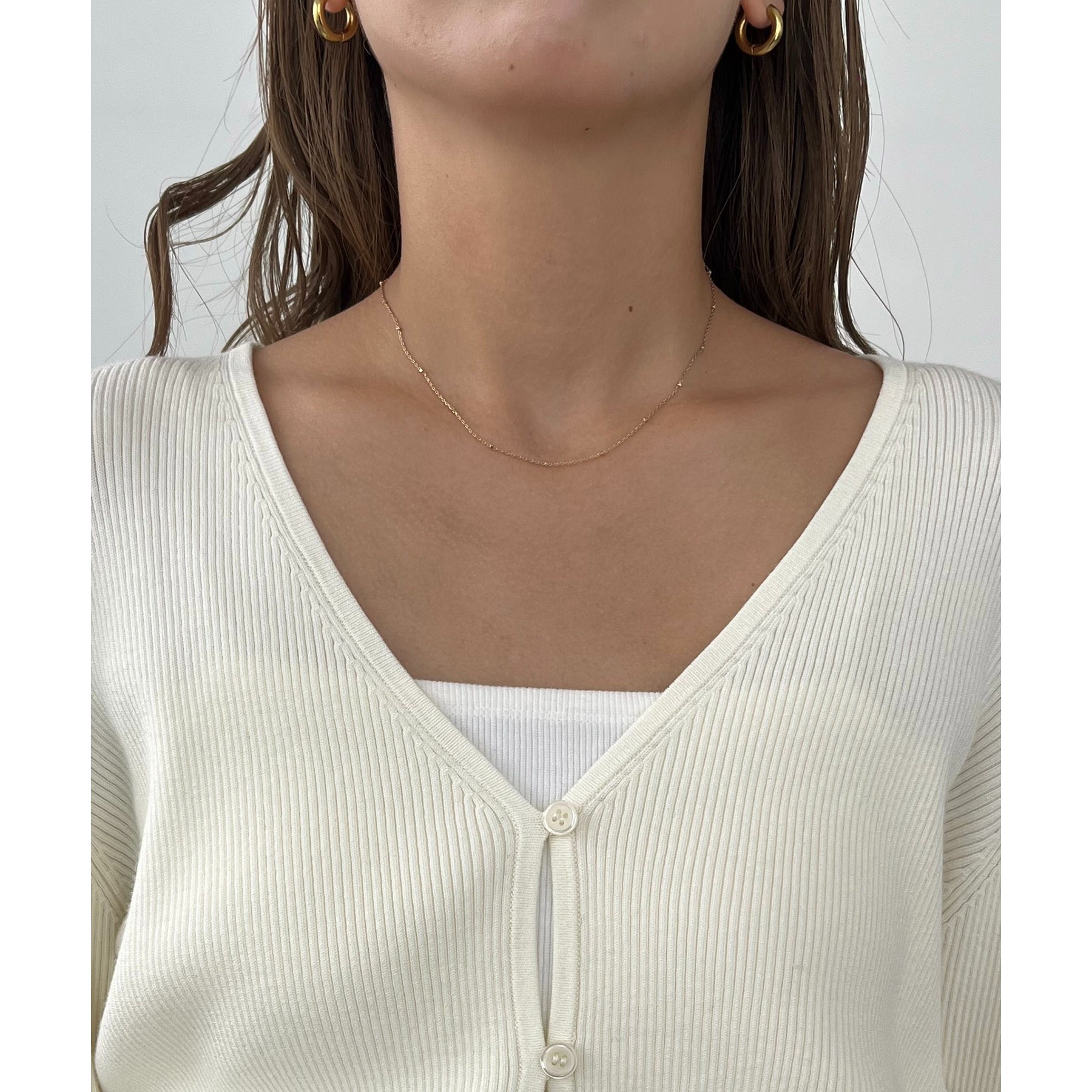 ・華奢なセッパボタンが大人でこなれた印象に