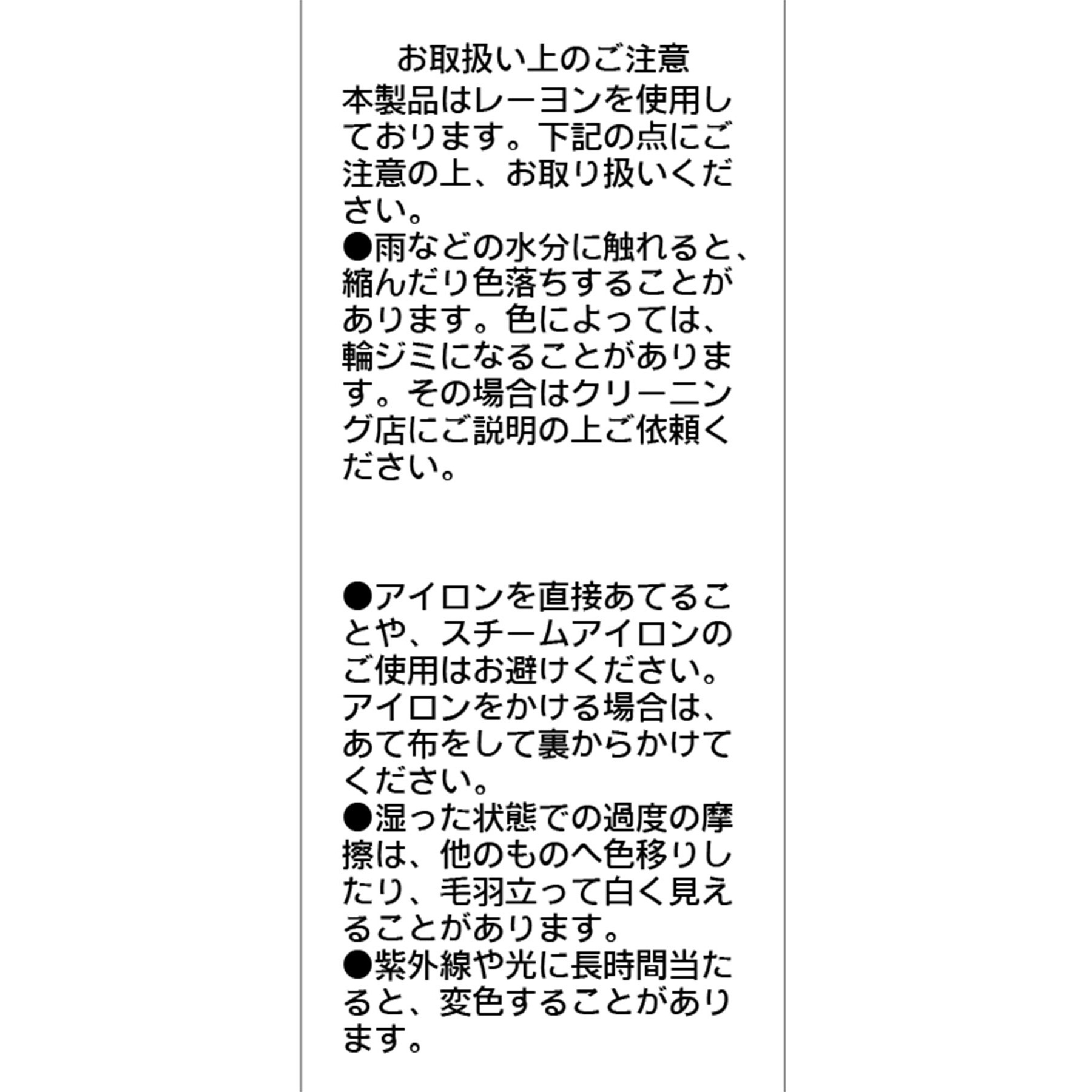 ※アイロンを直接あてることや、スチームアイロンのご使用はお避けください。